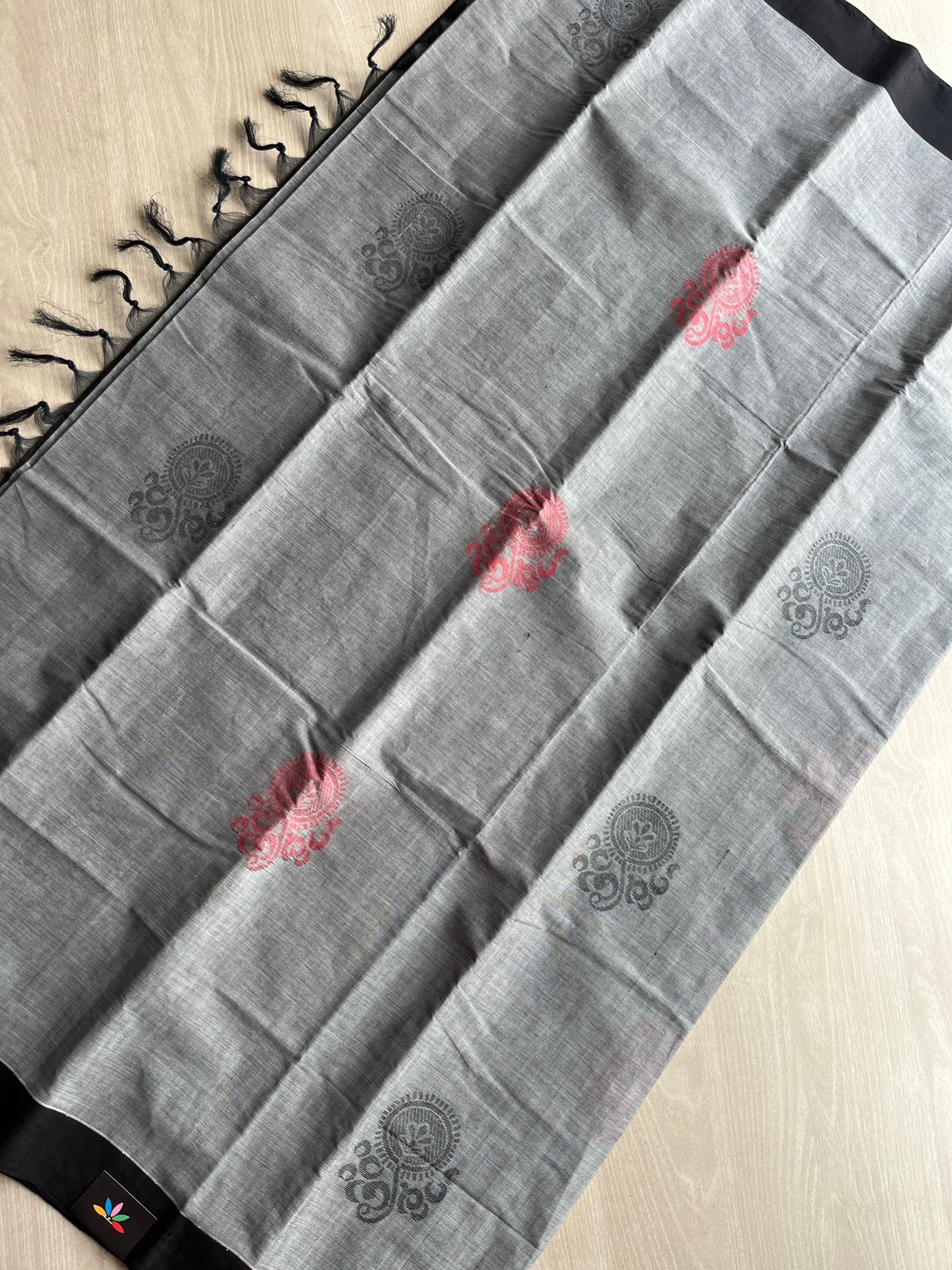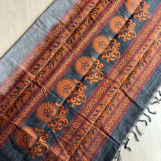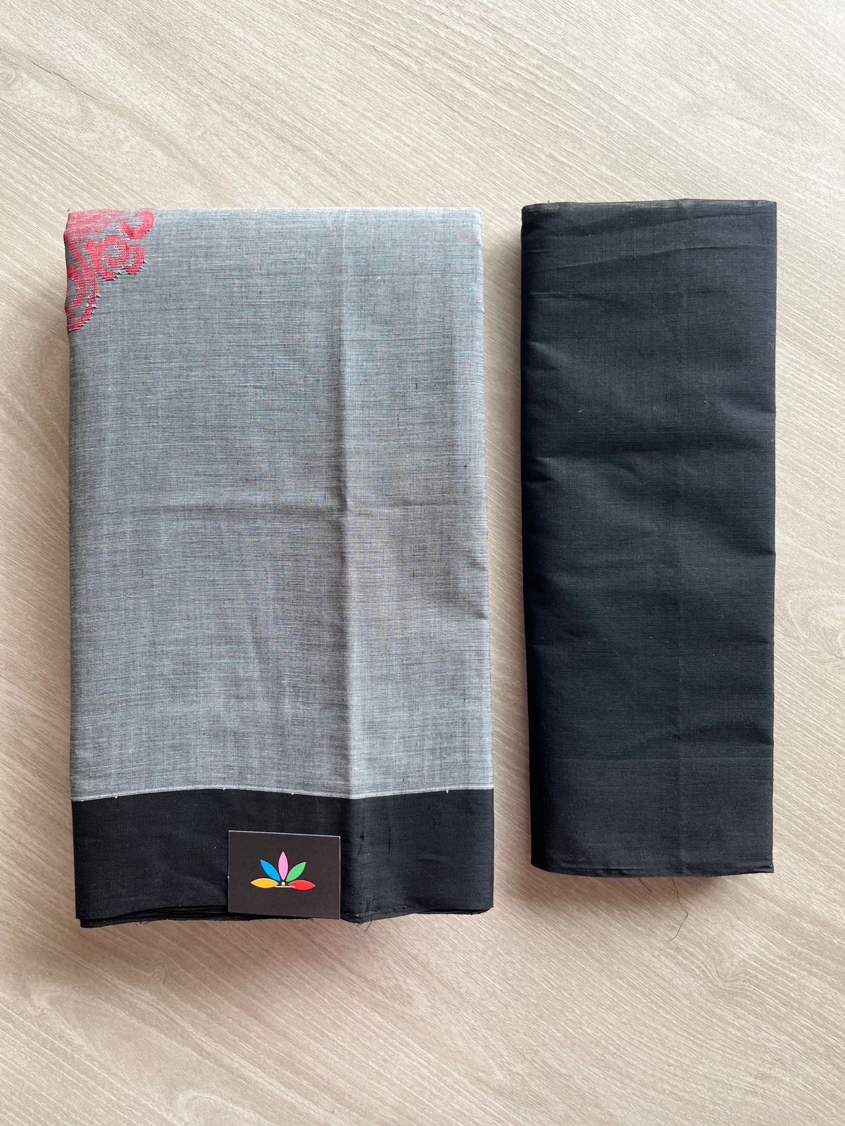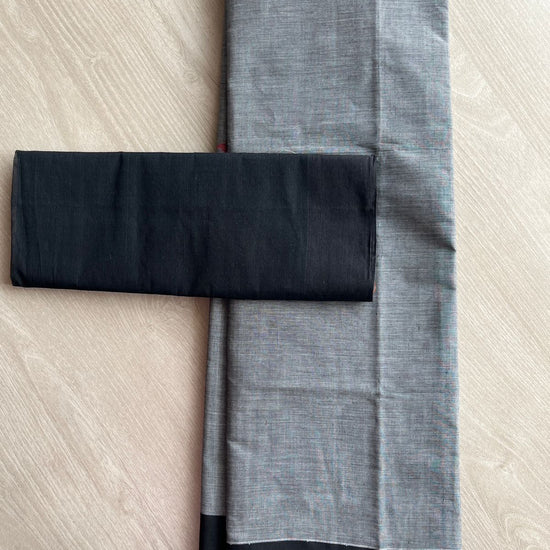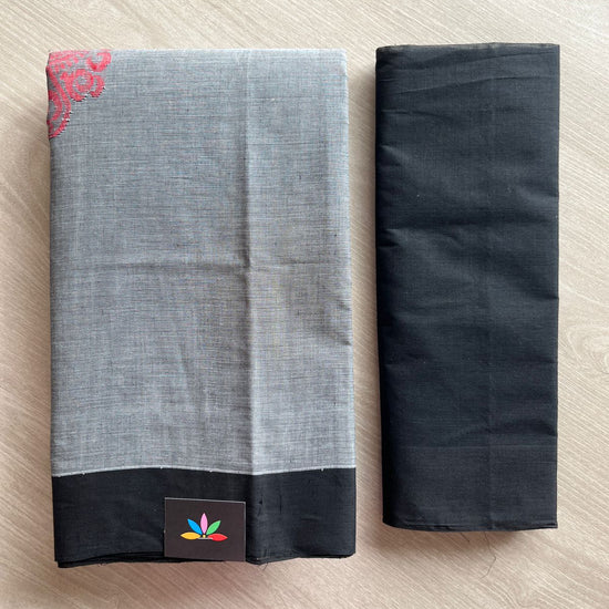 Handloom Fine Cotton Saree with Contrast Pallu and Blouse