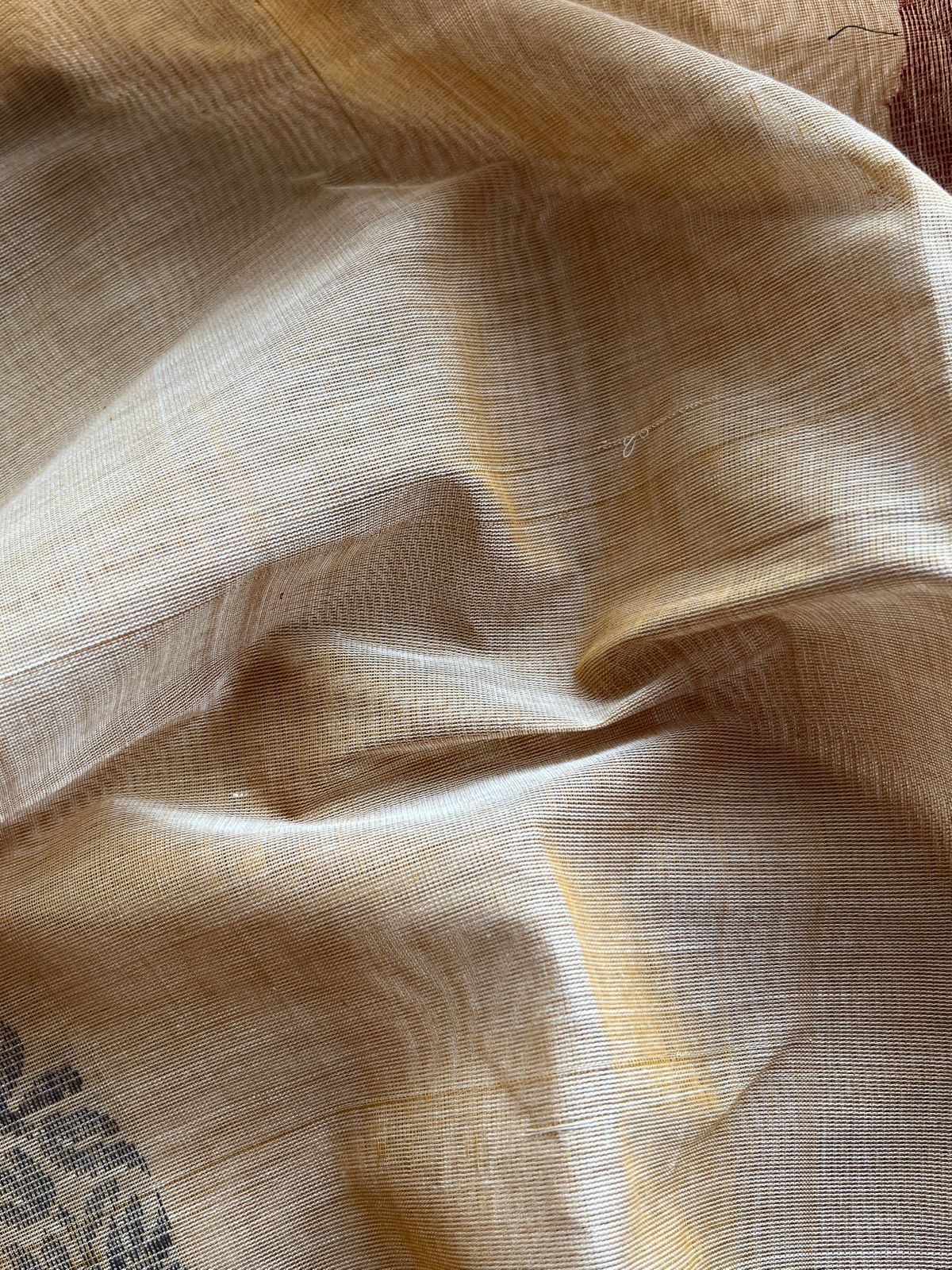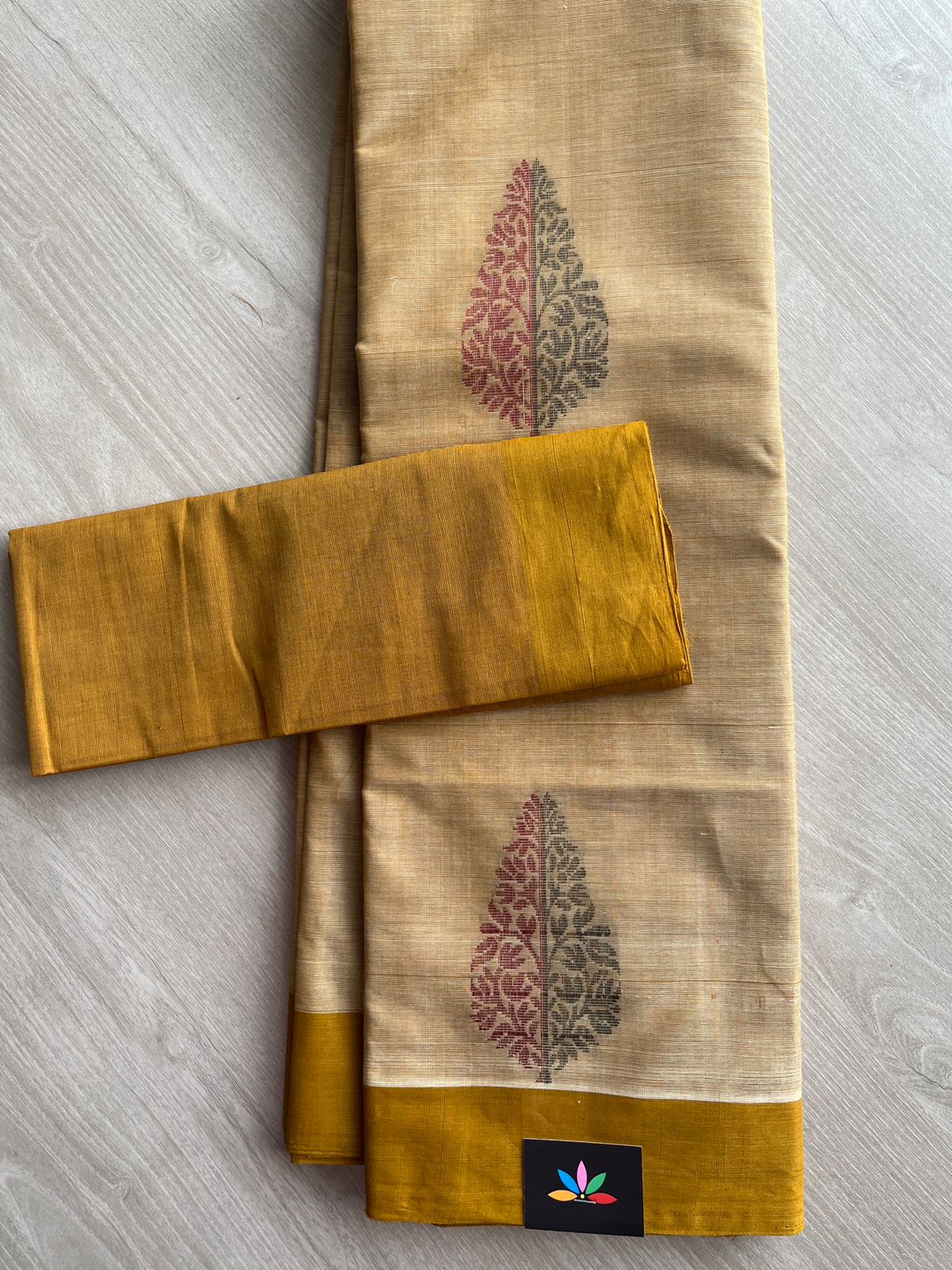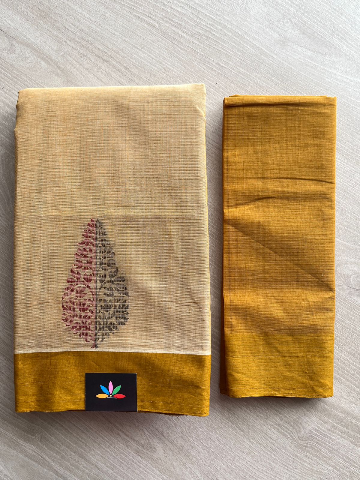 Handloom Fine Cotton Saree with Contrast Pallu and Blouse