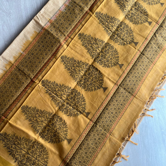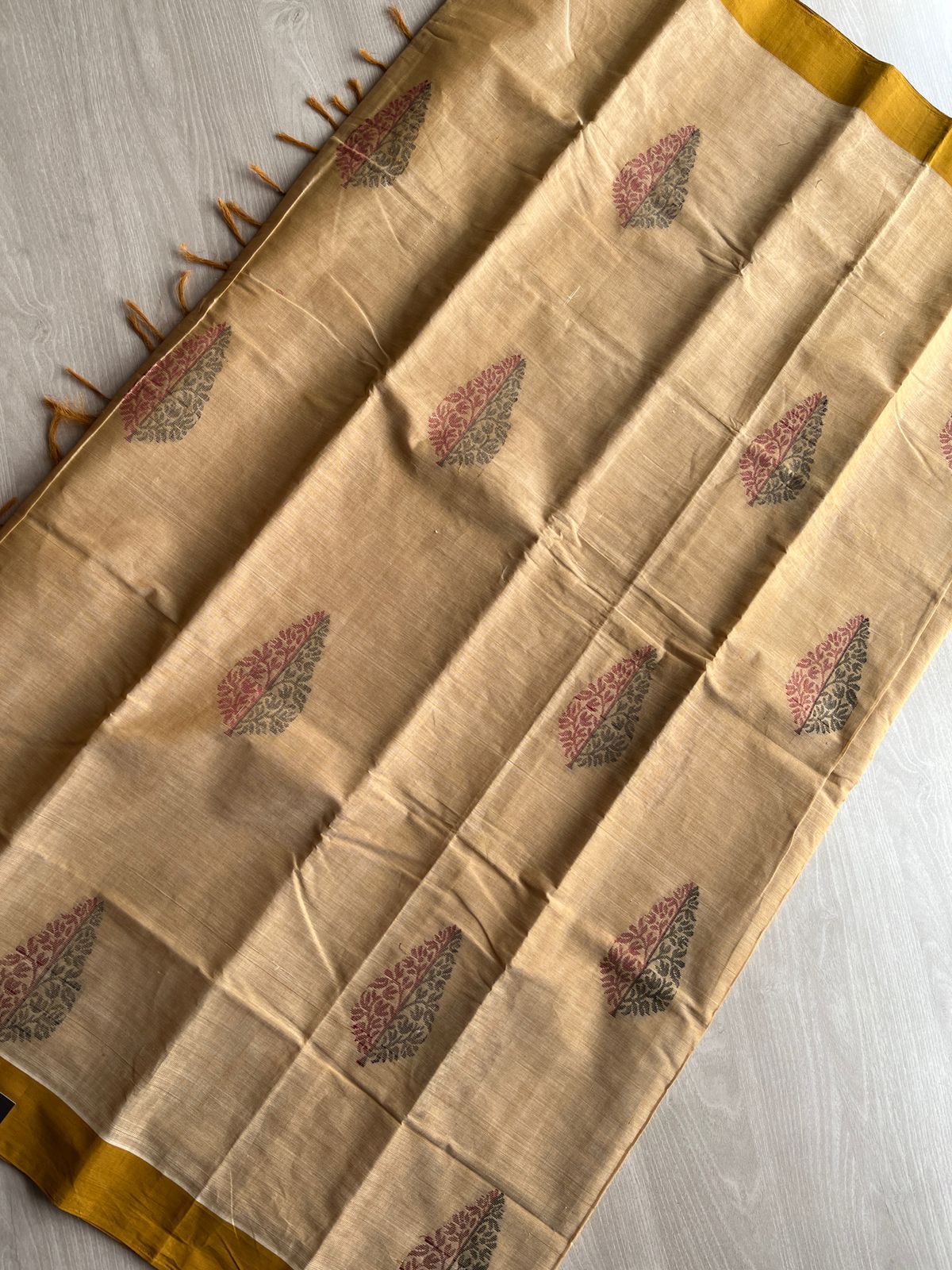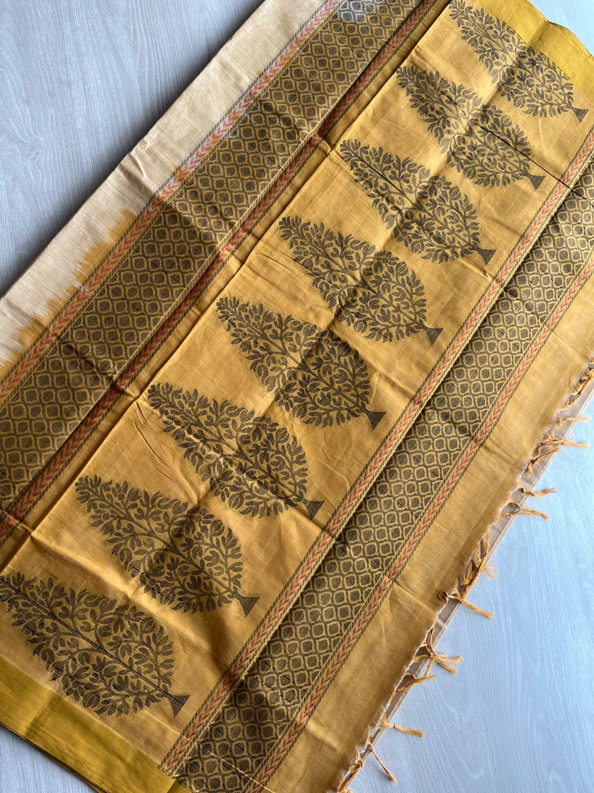 Handloom Fine Cotton Saree with Contrast Pallu and Blouse