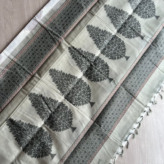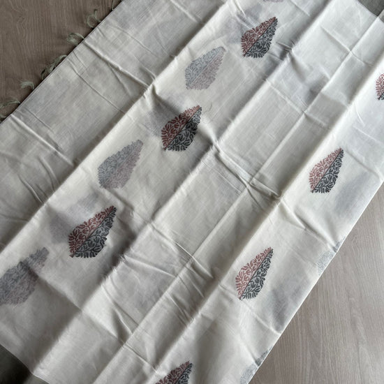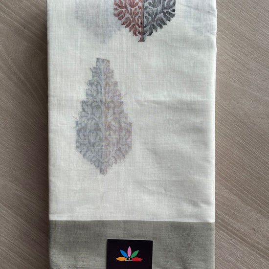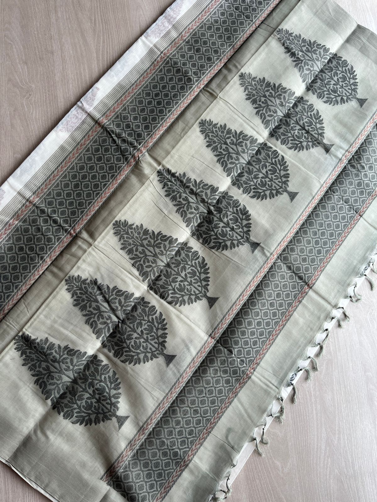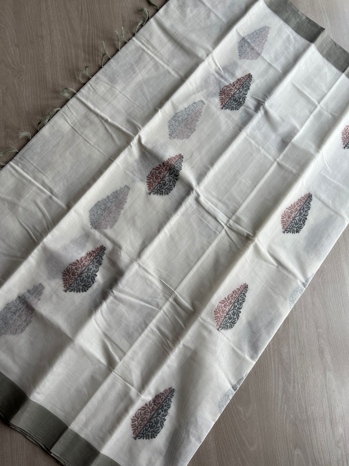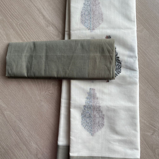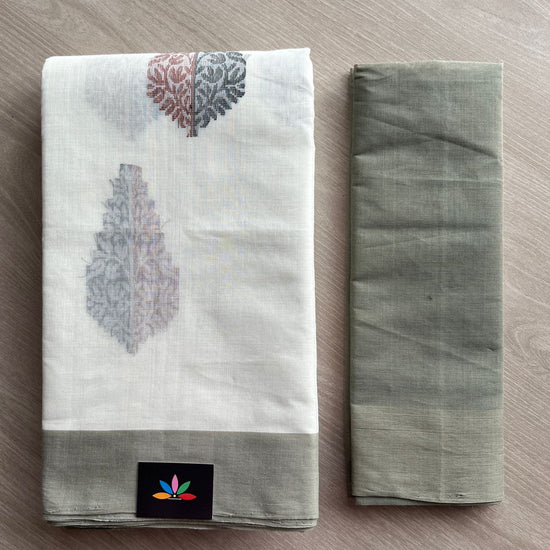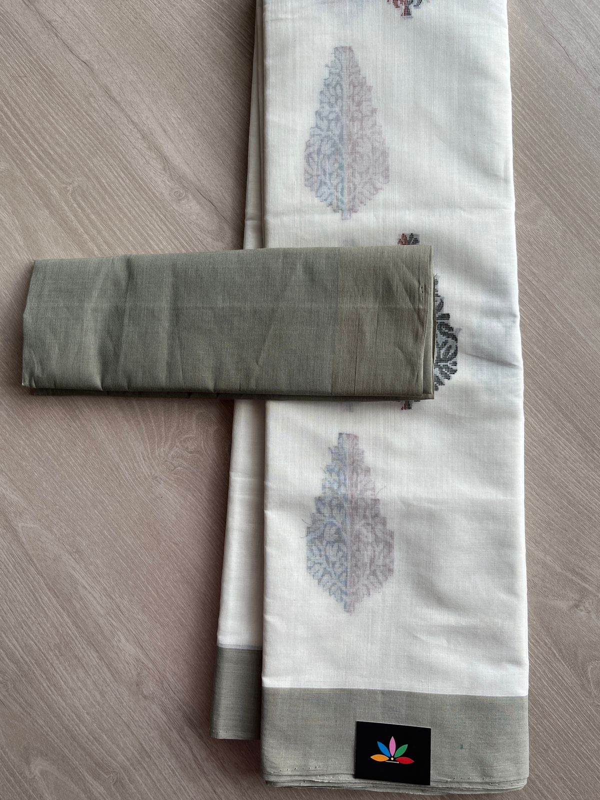 Handloom Fine Cotton Saree with Contrast Pallu and Blouse