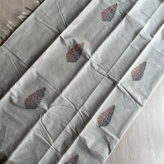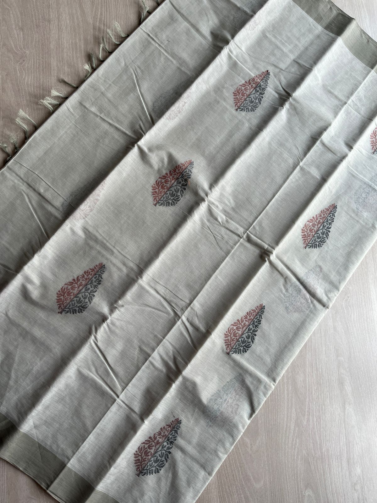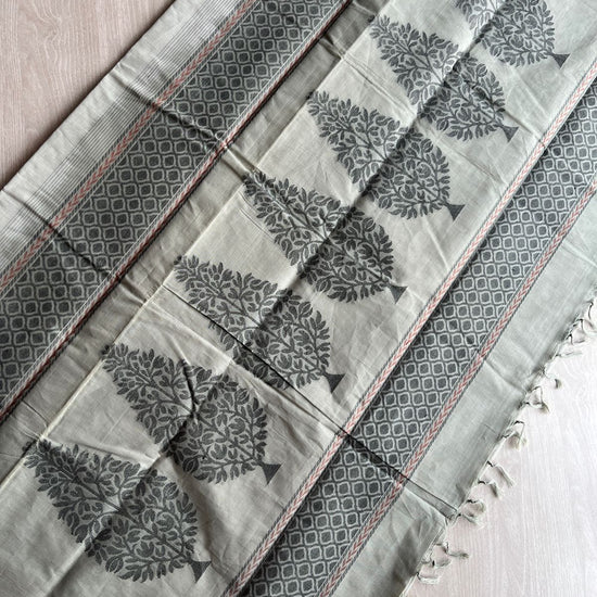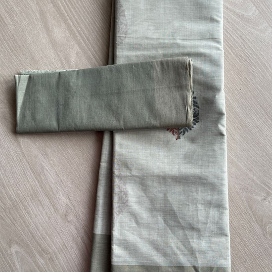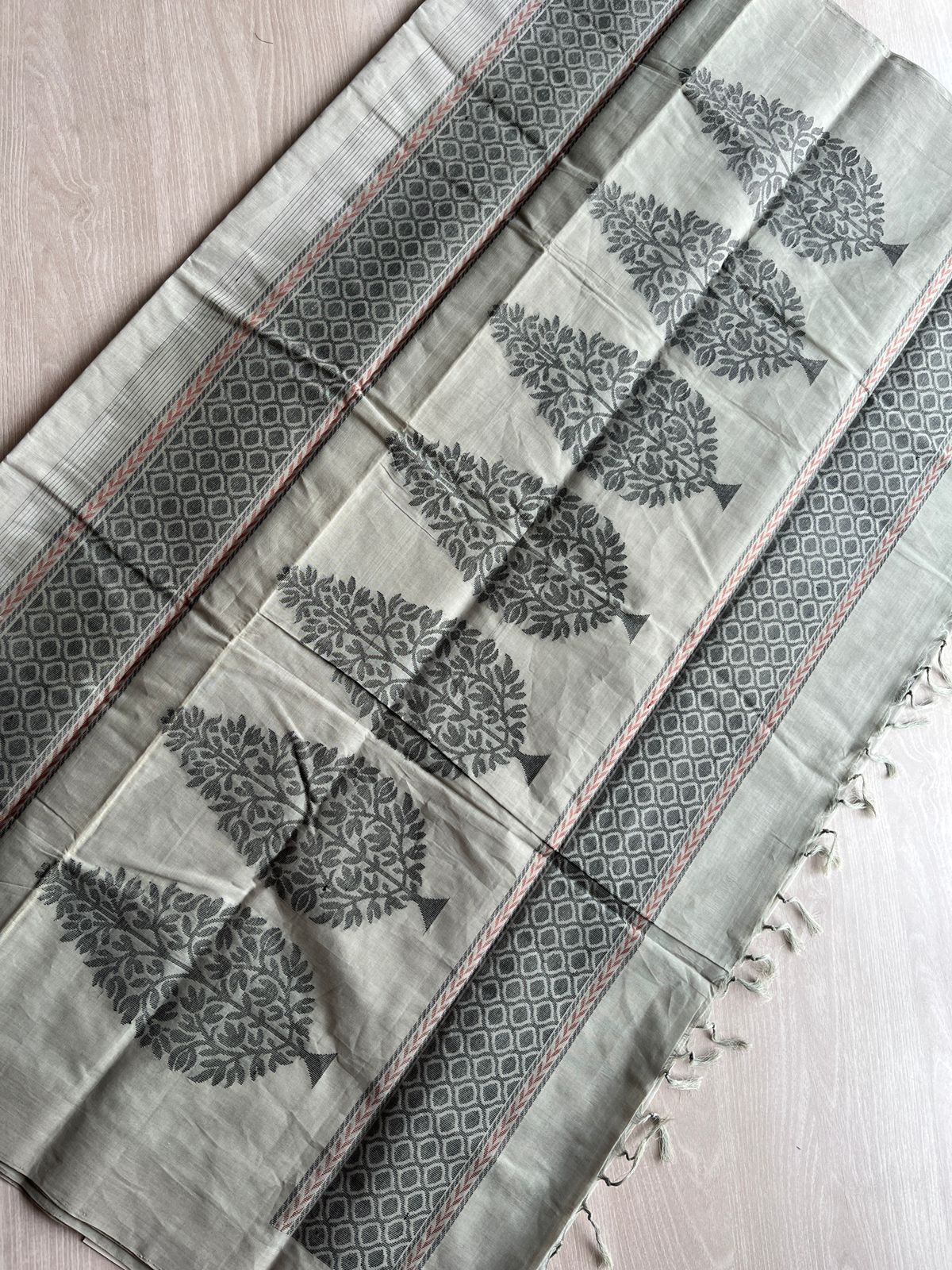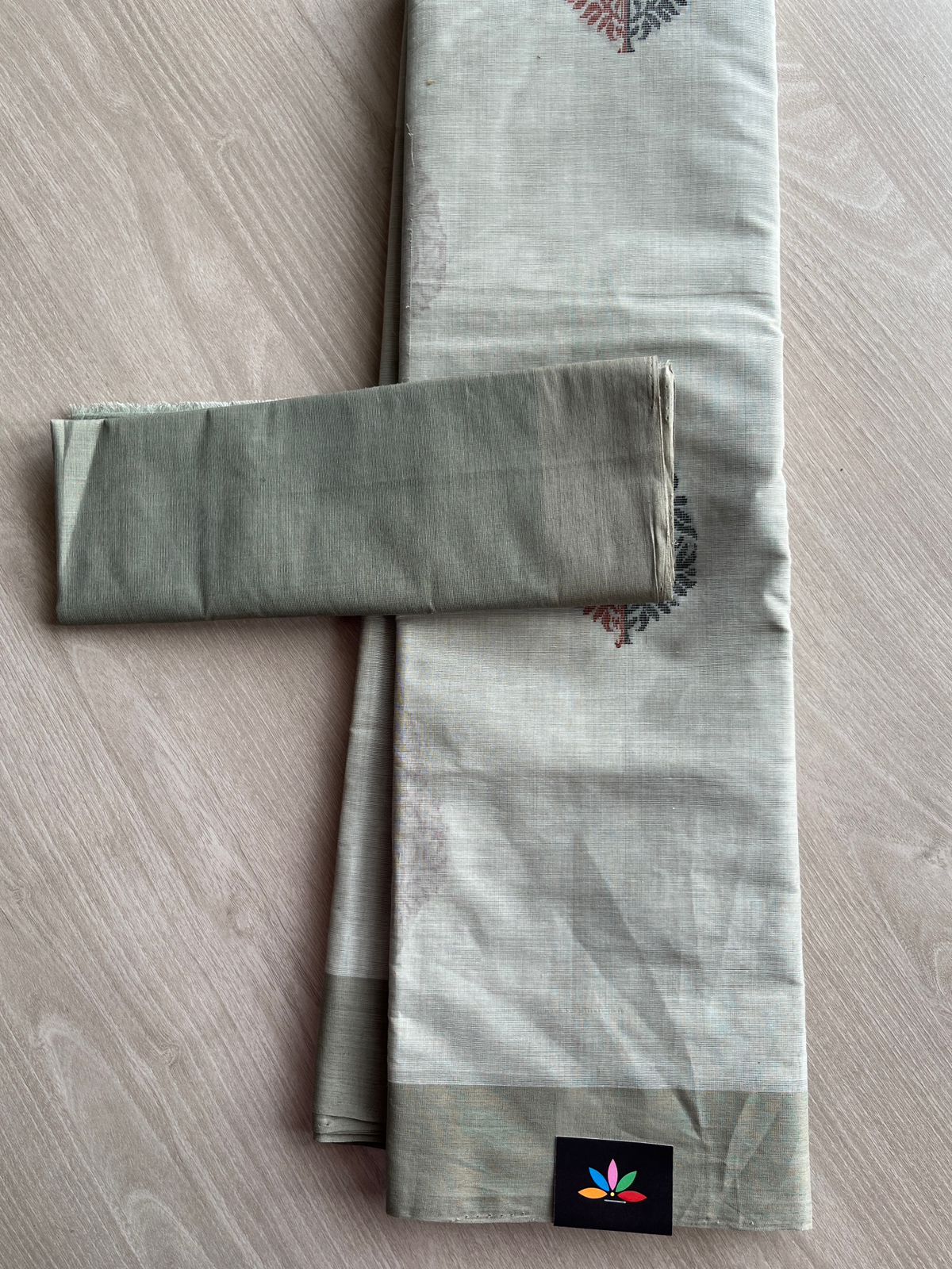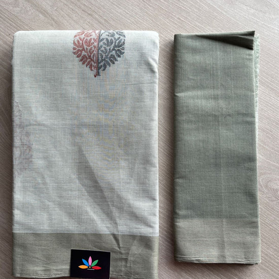 Handloom Fine Cotton Saree with Contrast Pallu and Blouse