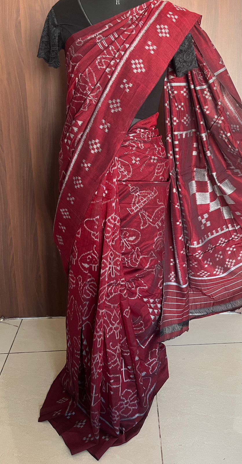 Traditional Motif Handloom Orissa Ikkat Handloom Cotton Saree.