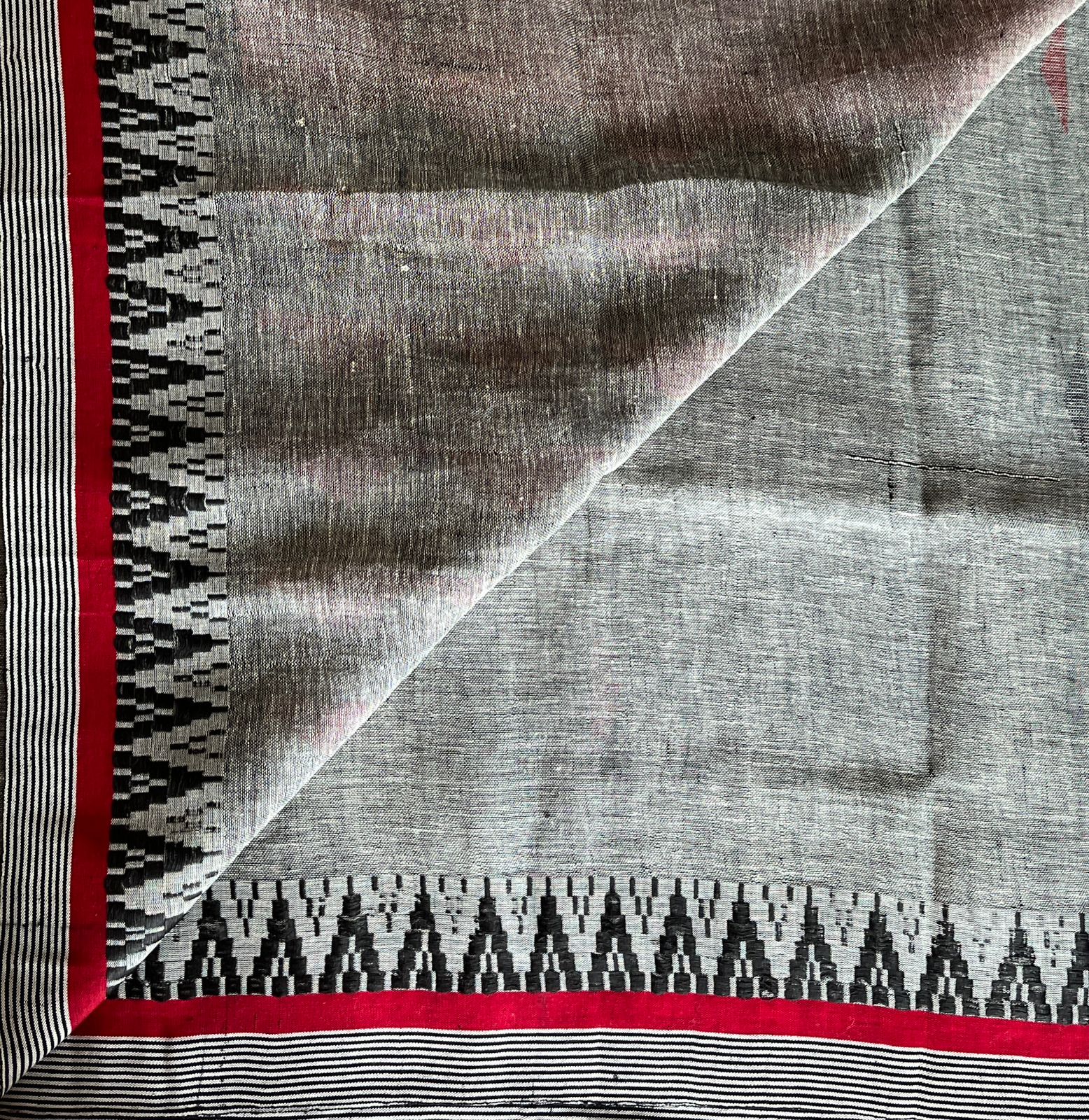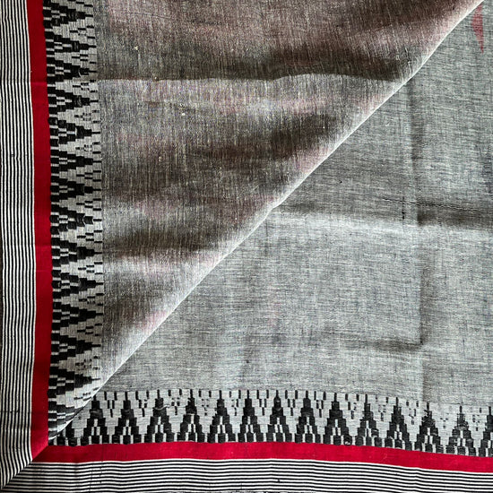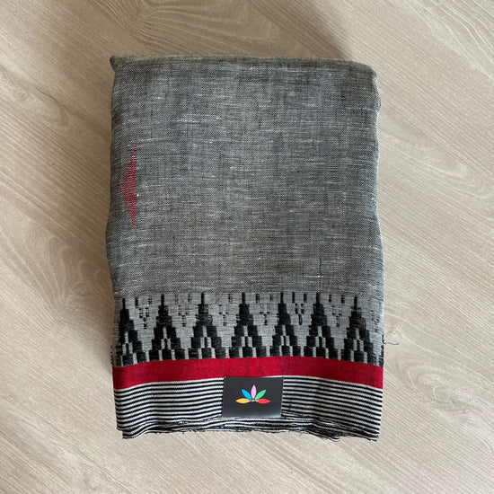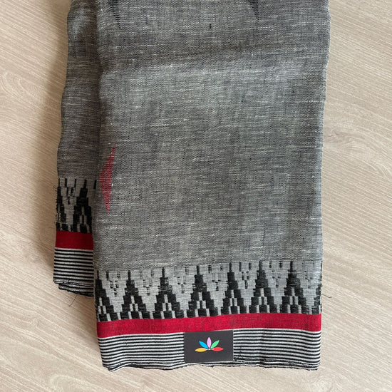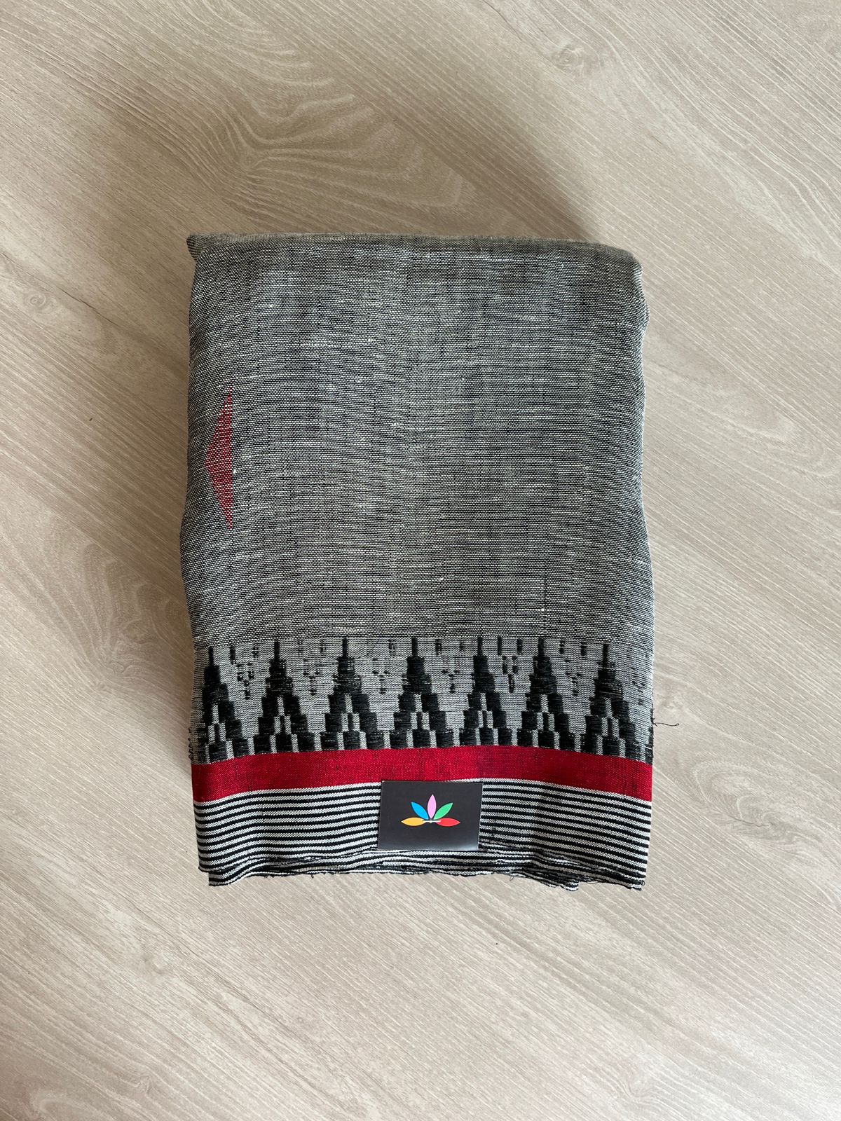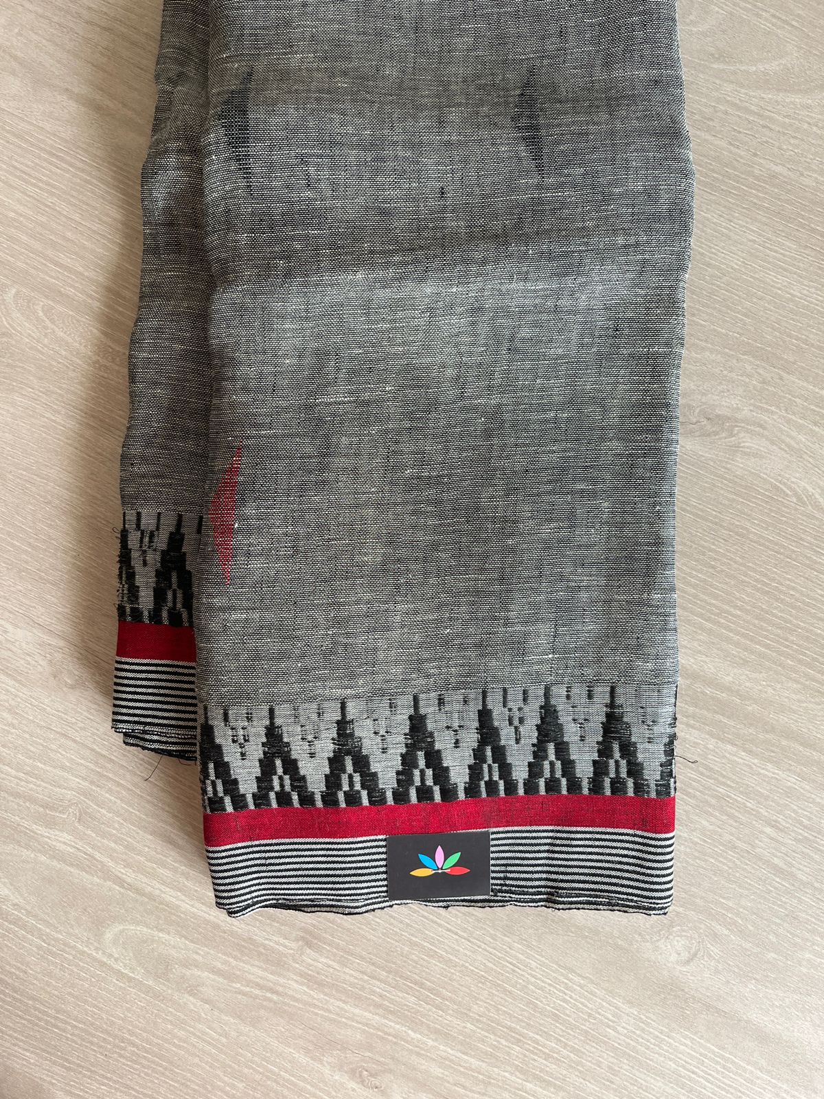 Handloom Temple Border Linen Jamdani Saree -23662,23669