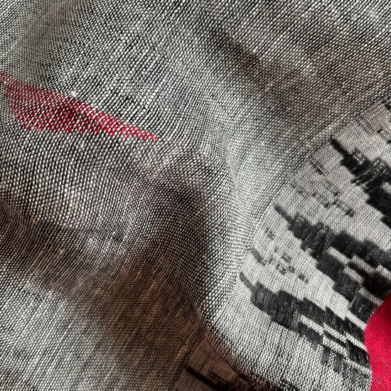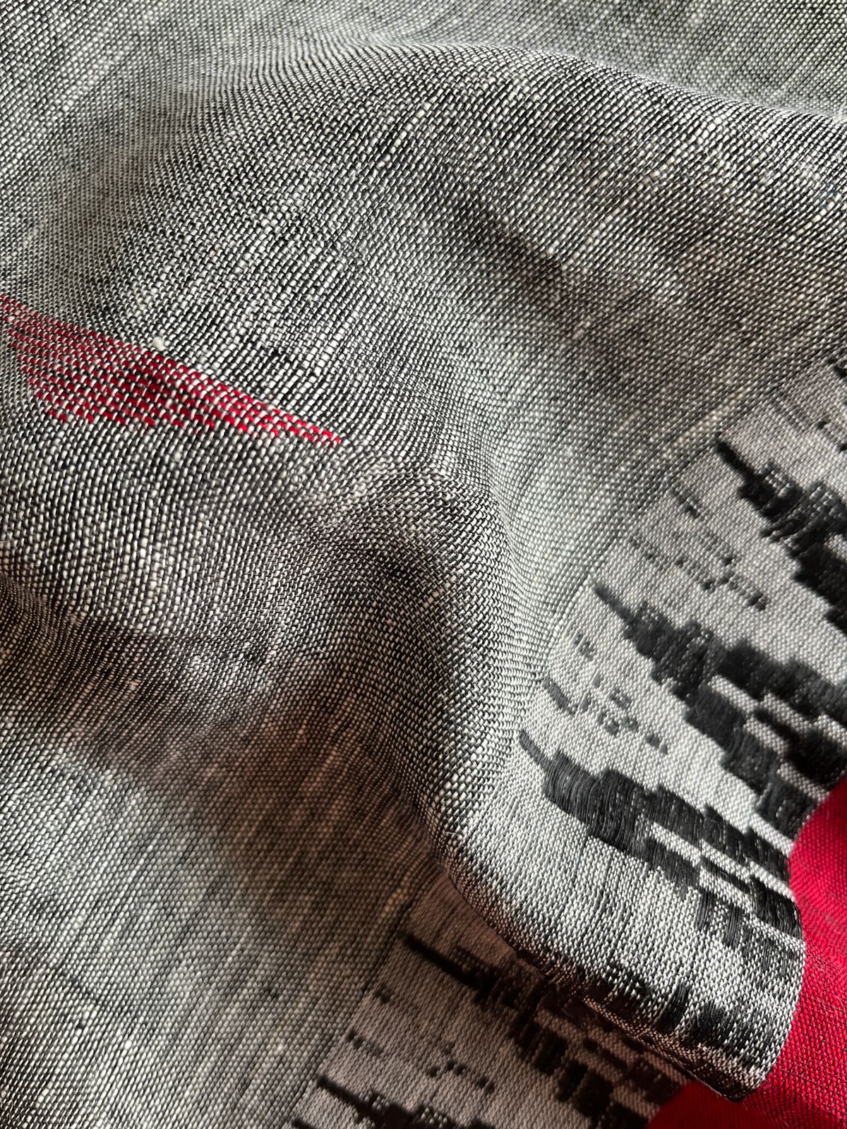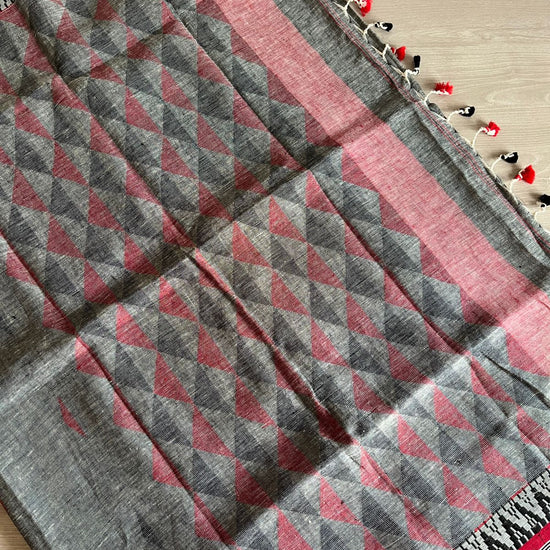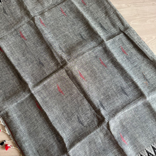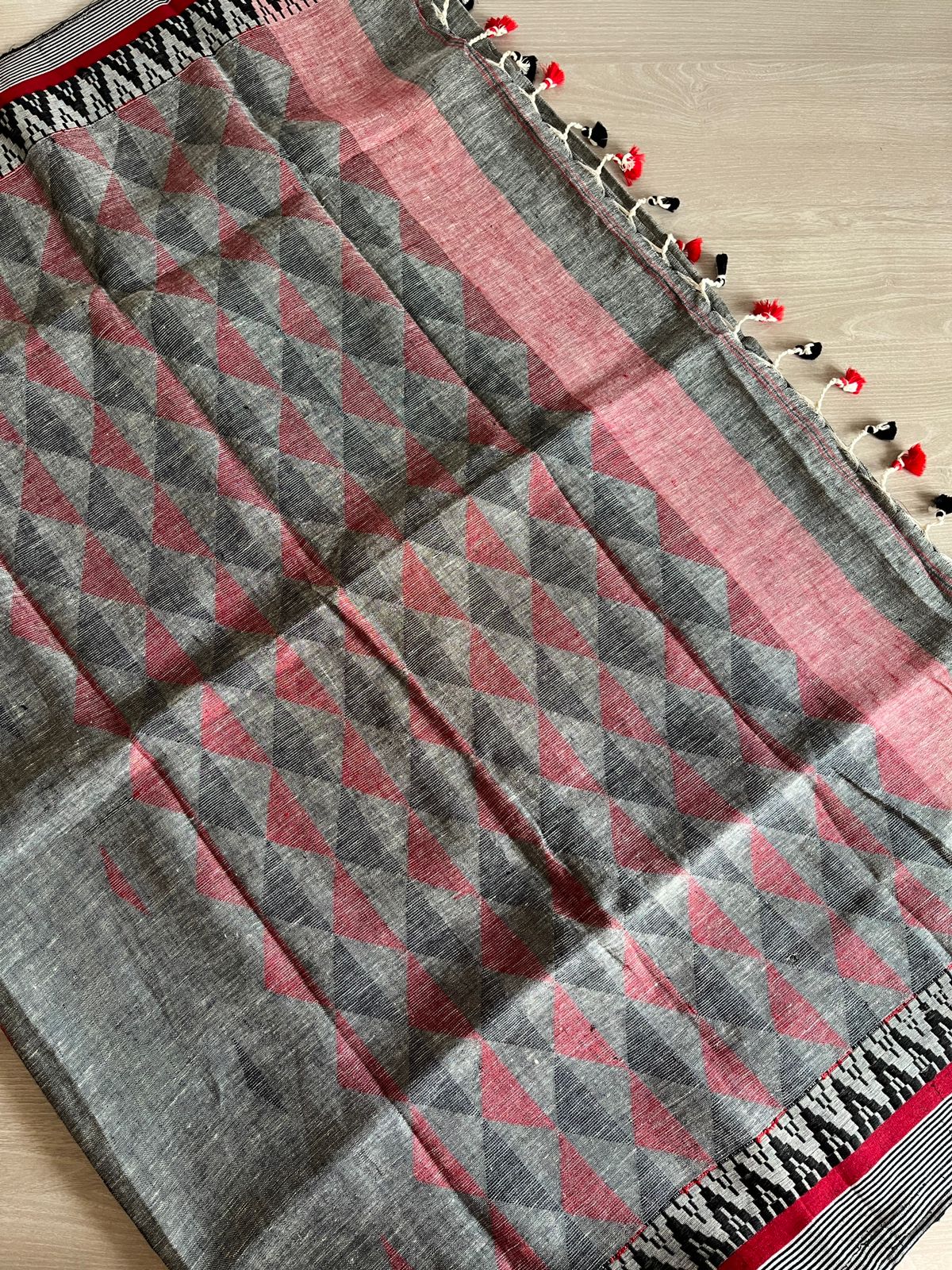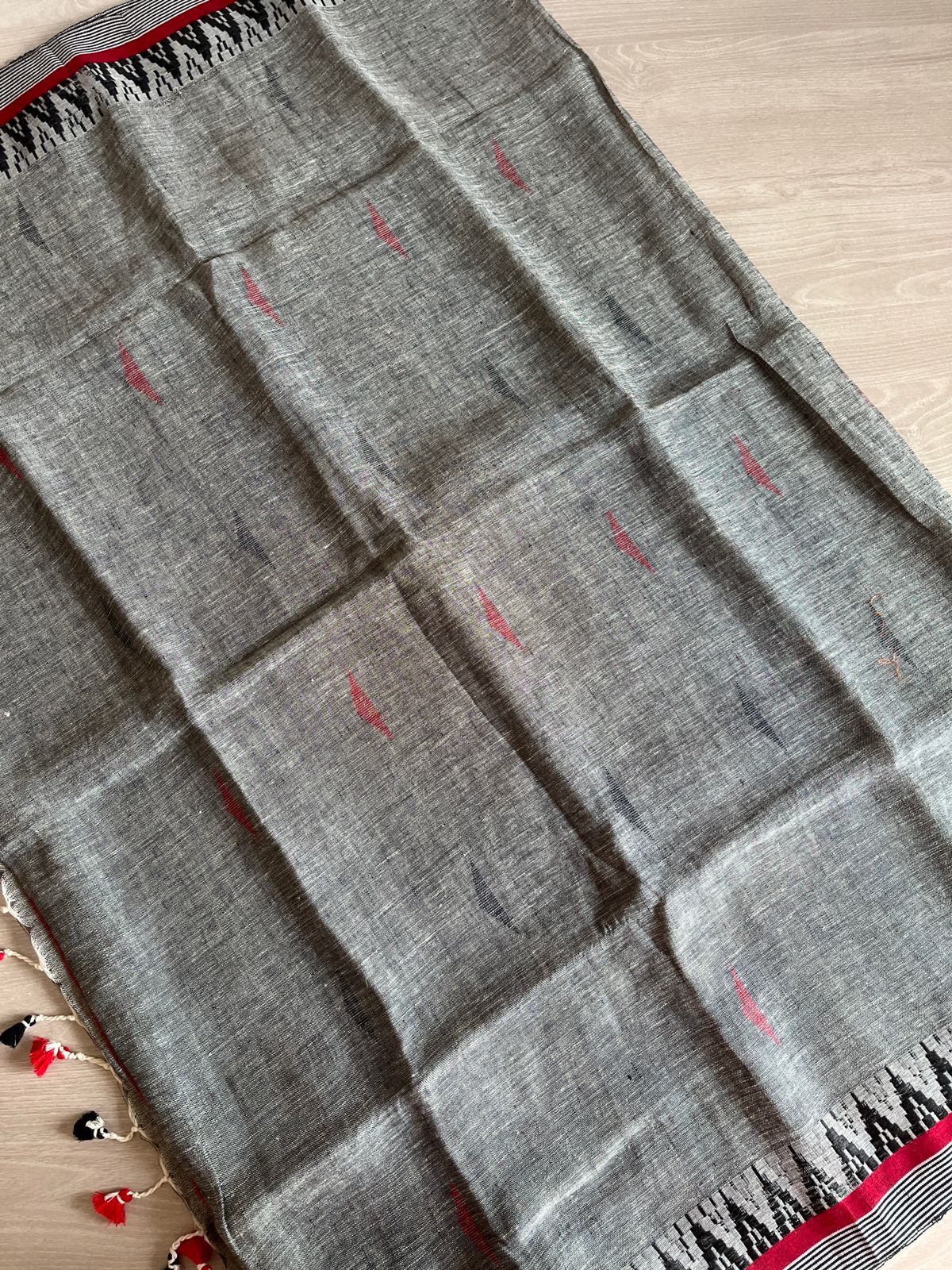 Handloom Temple Border Linen Jamdani Saree -23662,23669