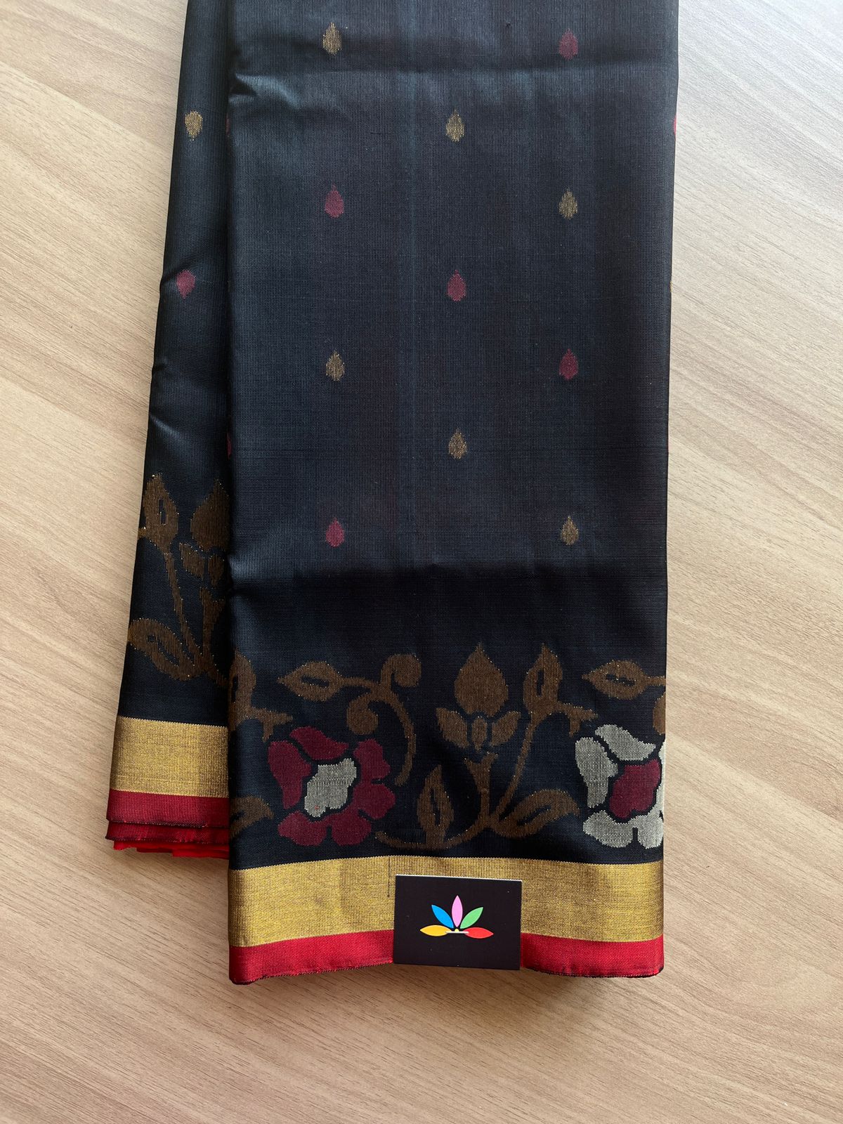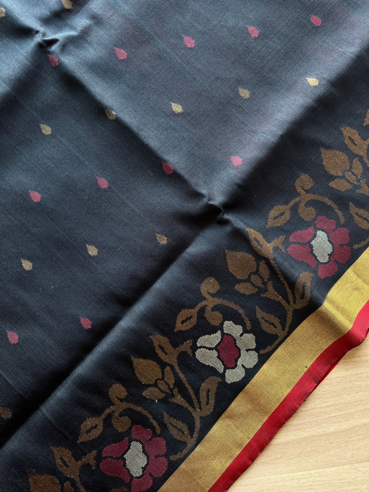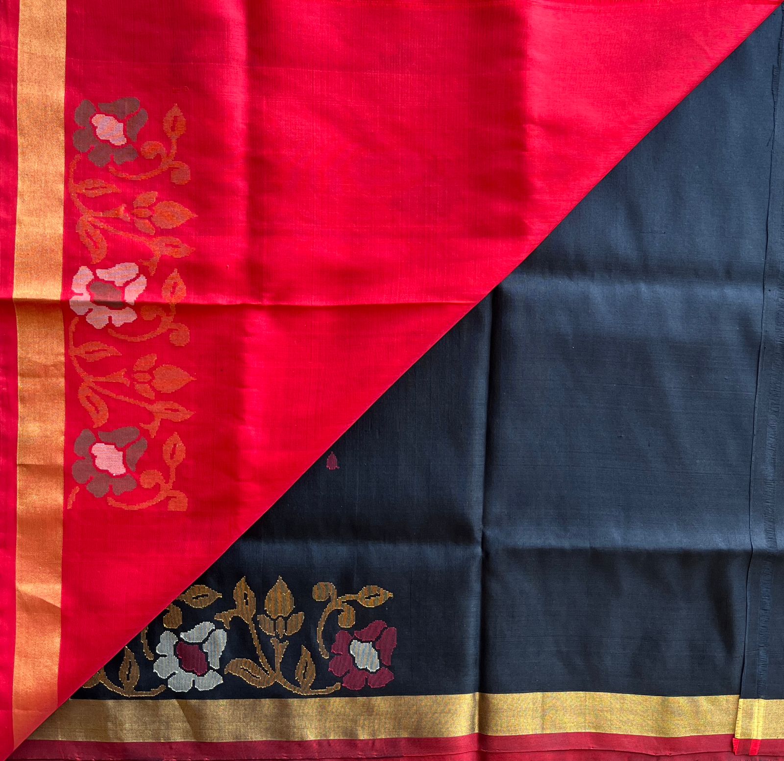 Handwoven Black Uppada Silk Jamdani Saree-18020