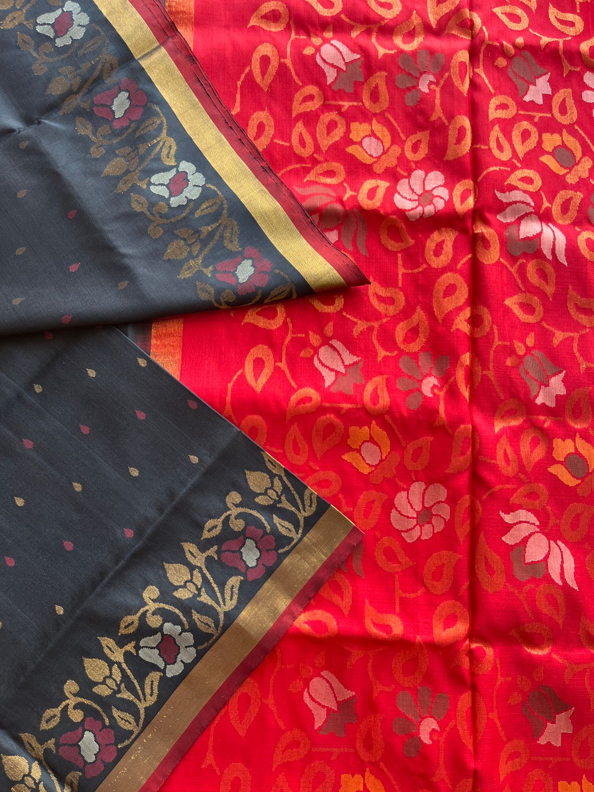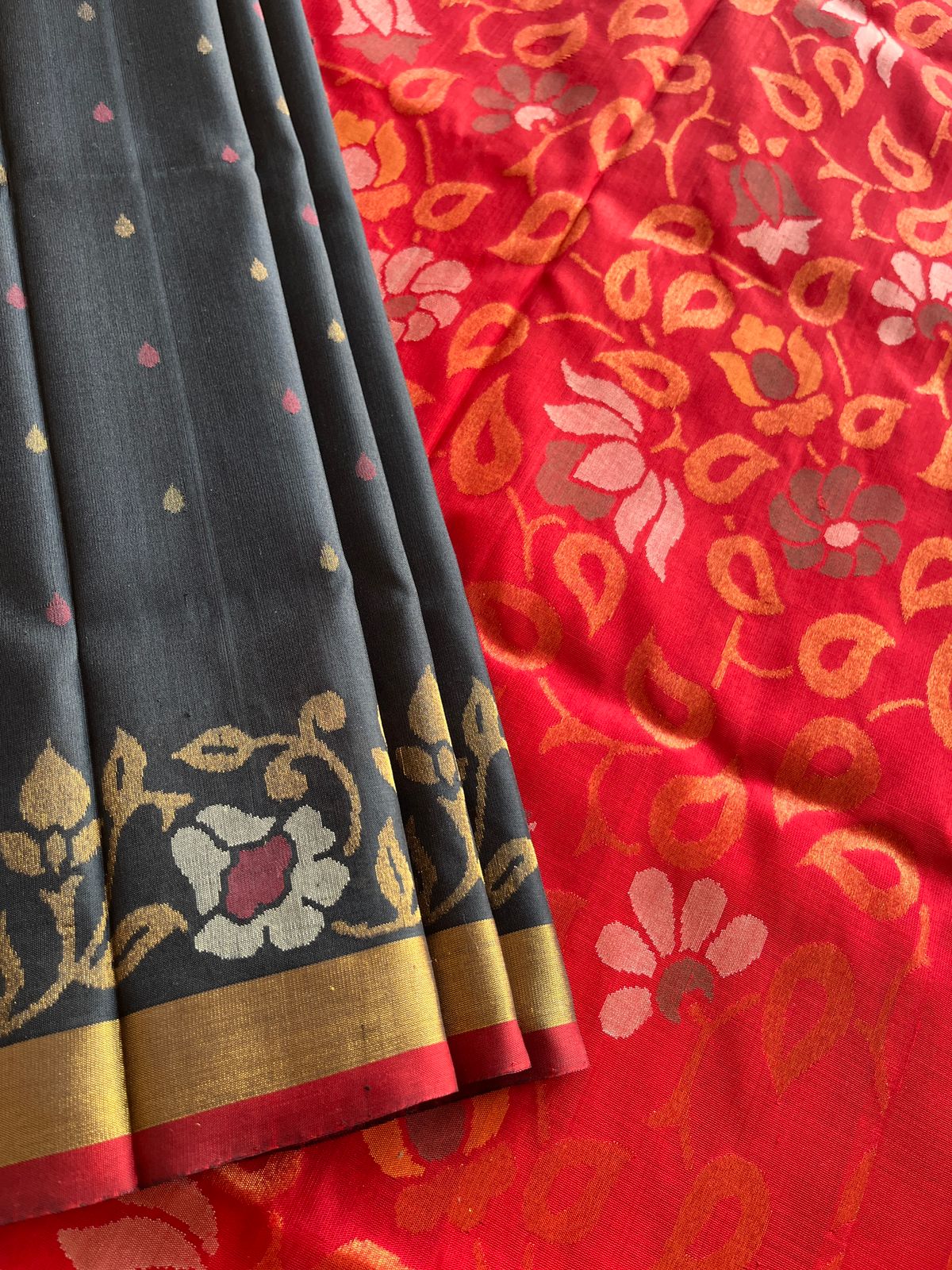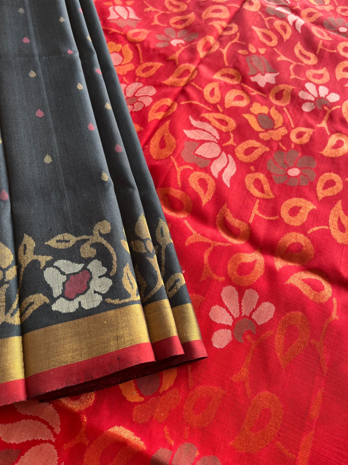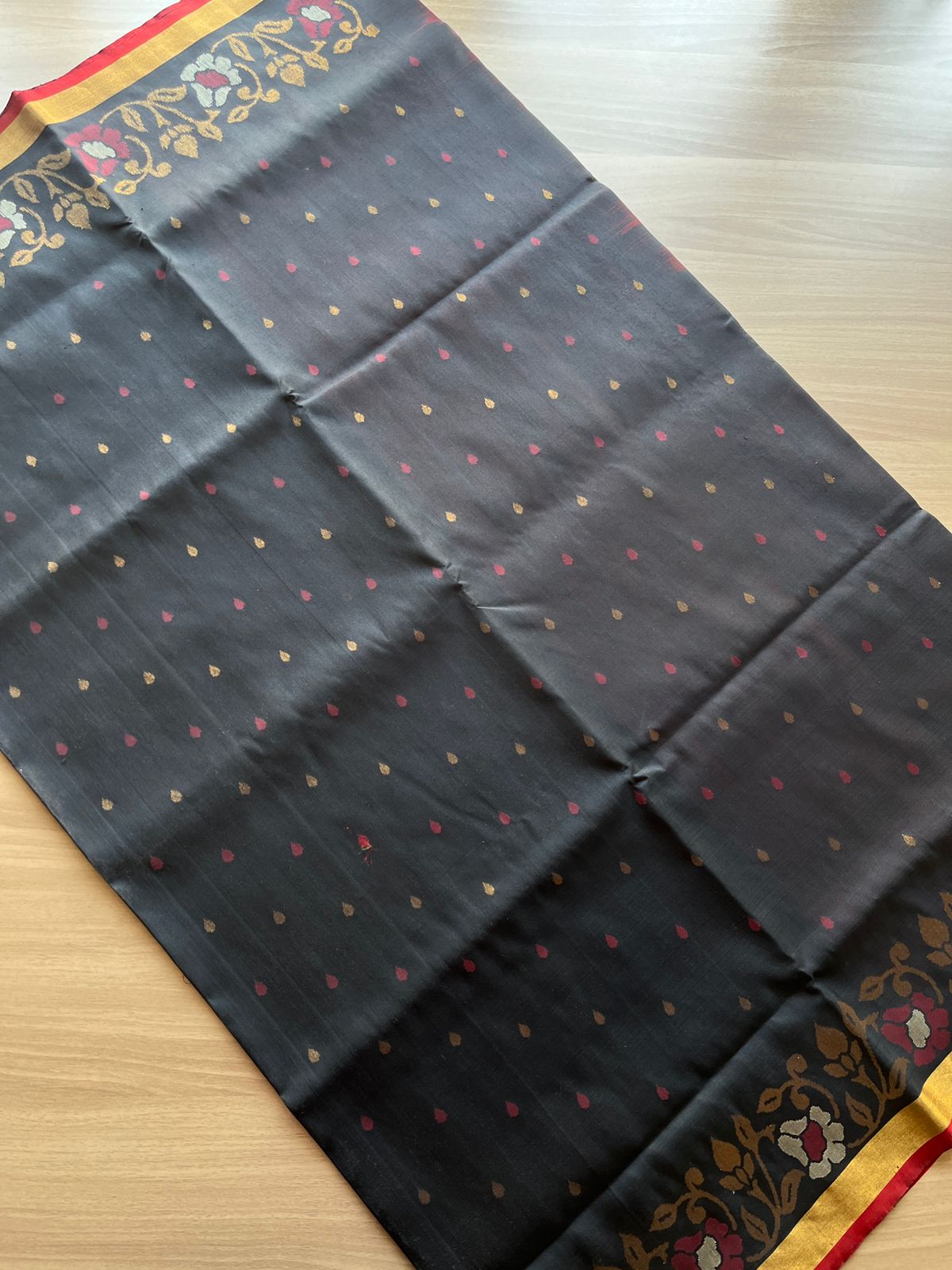 Handwoven Black Uppada Silk Jamdani Saree-18020
