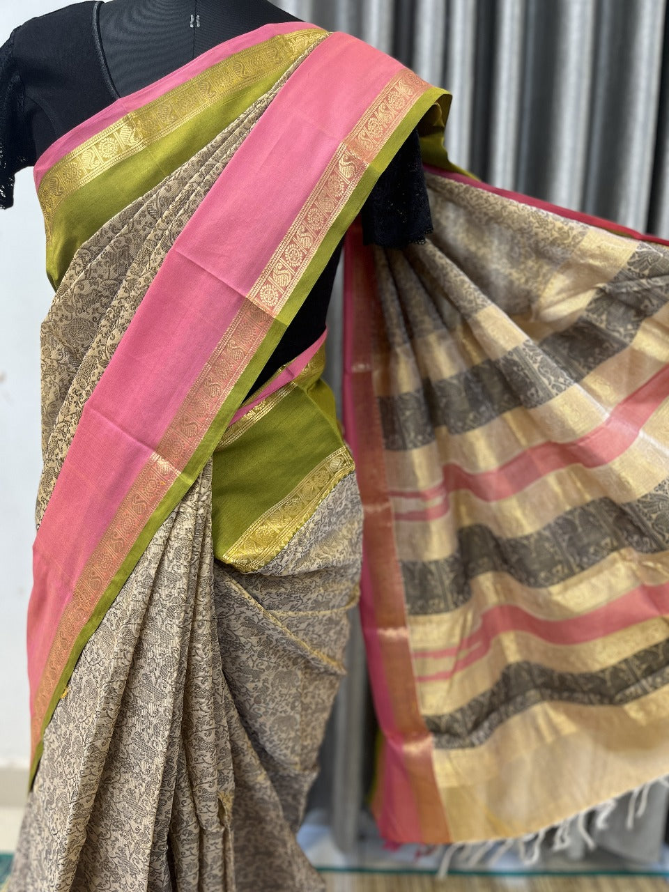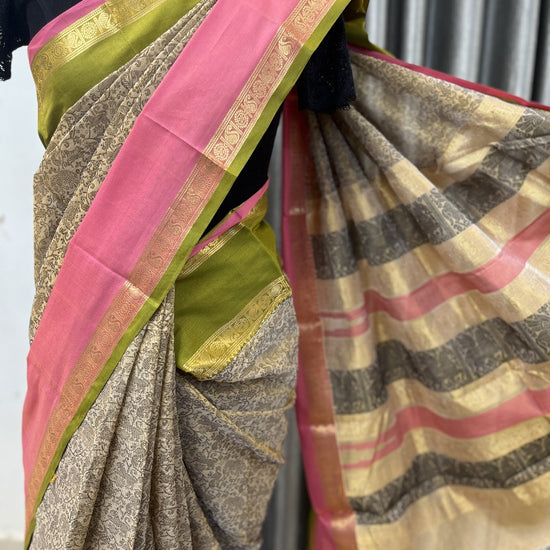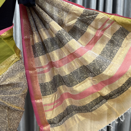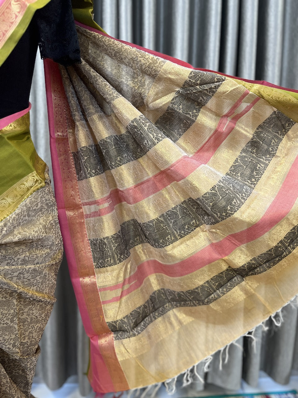 Handwoven Ganga Jamuna Border Vansingaram Kanchi Silk Cotton Saree -8938