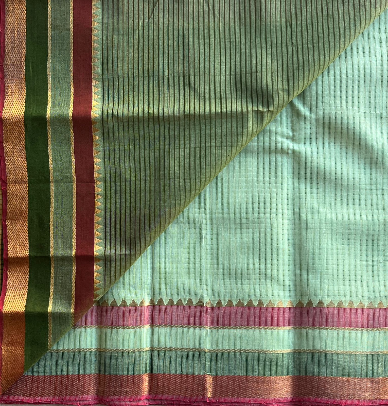 Handwoven Godavari Border Missing Checks Mangalagiri Cotton Saree