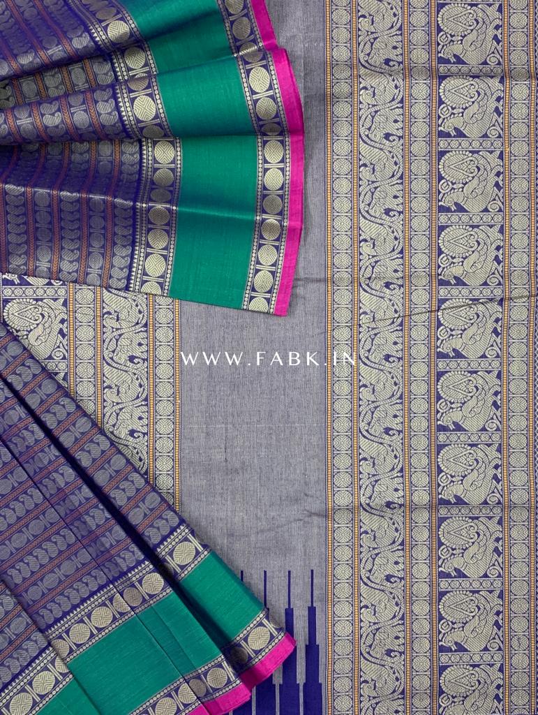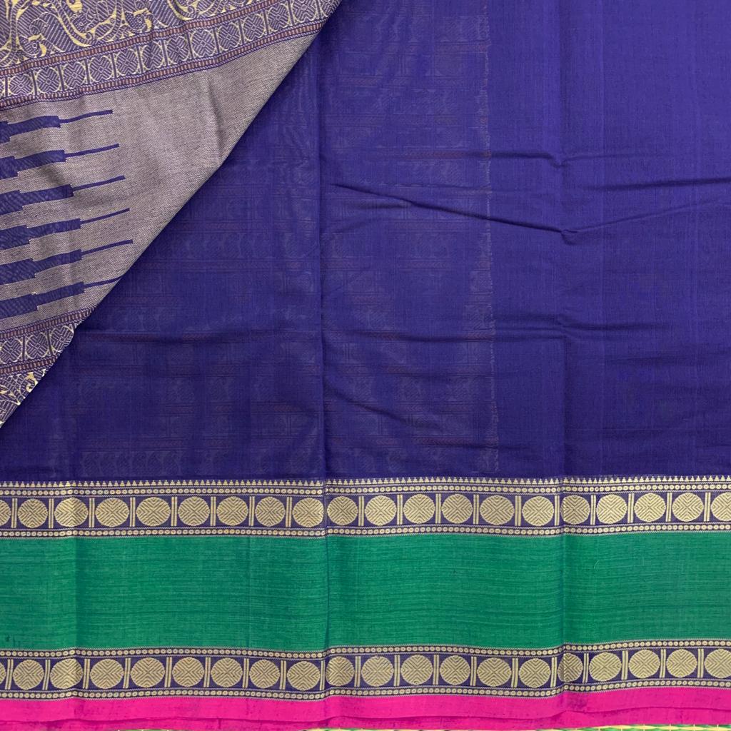 Handwoven Jacquard Weave Kanchi Cotton Saree(Ink Blue) -141