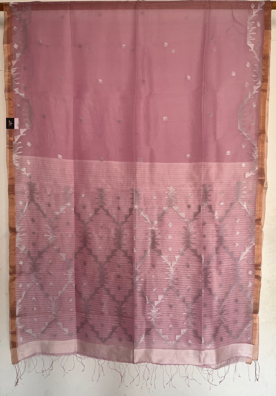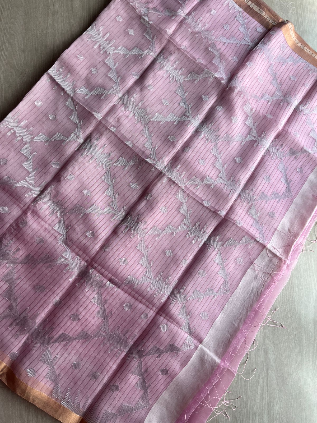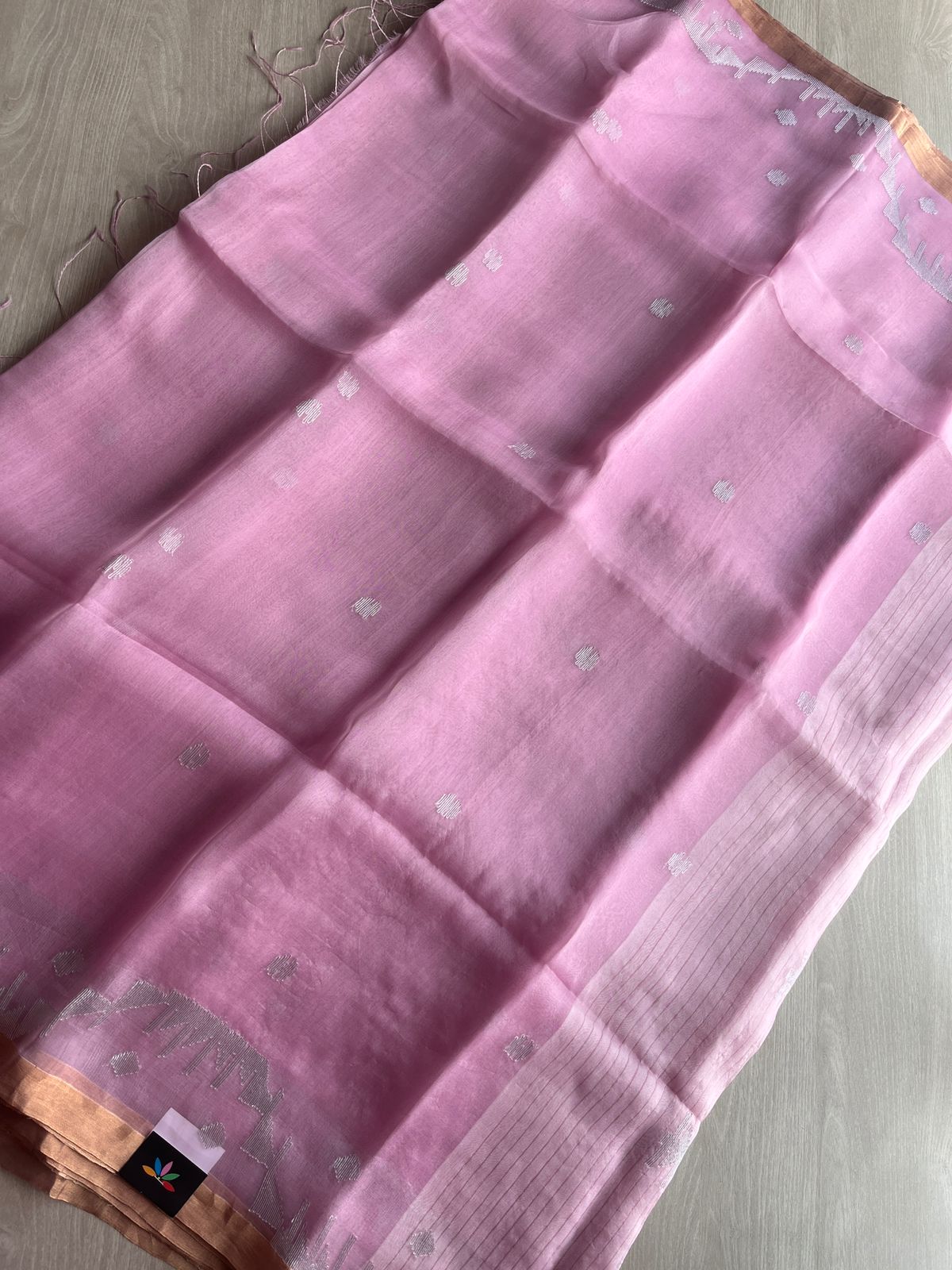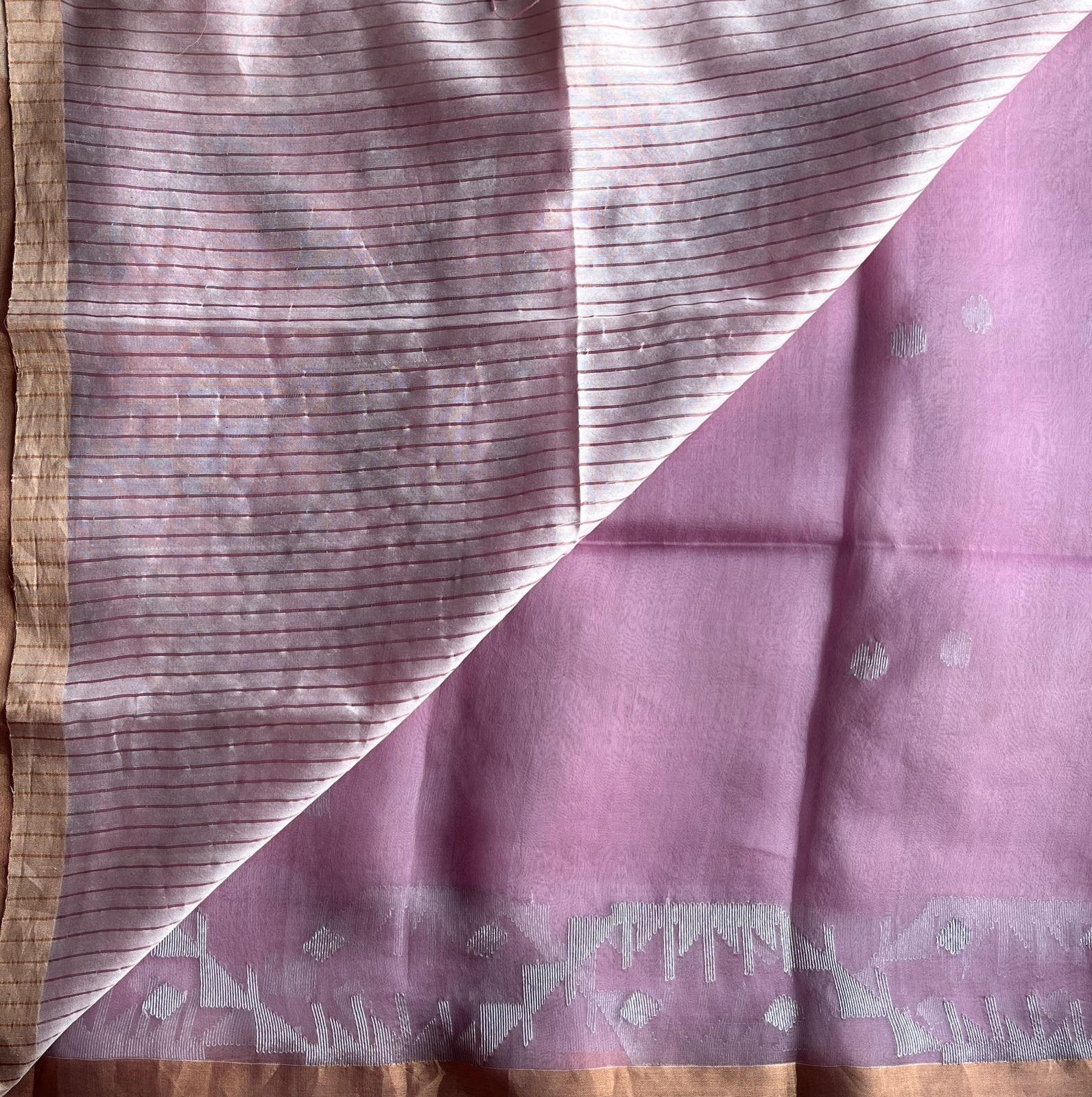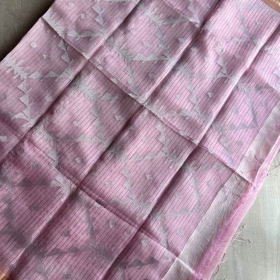 Handwoven Musiln Silk Dhakai Jamdani Saree - 26652