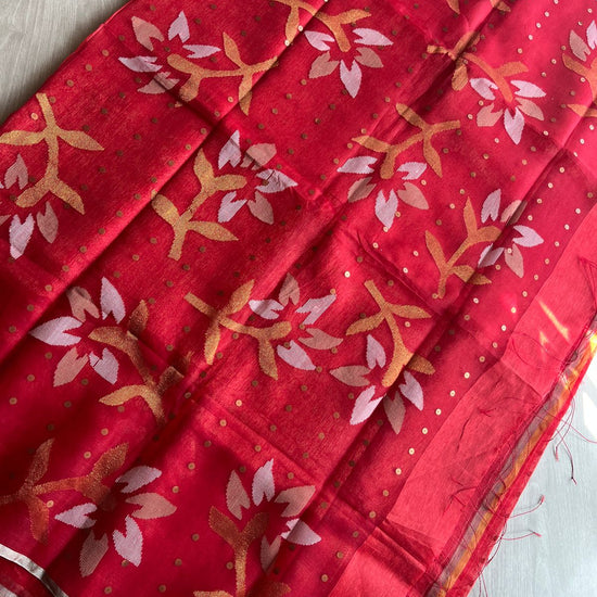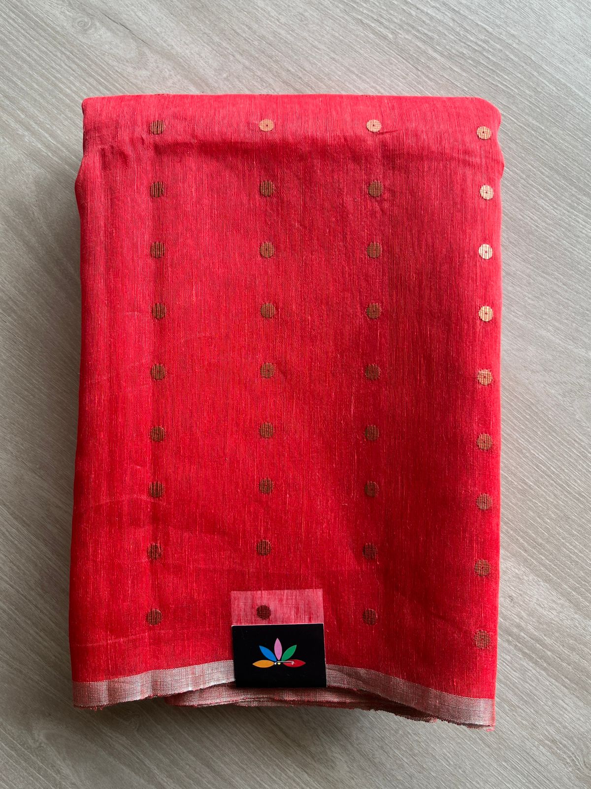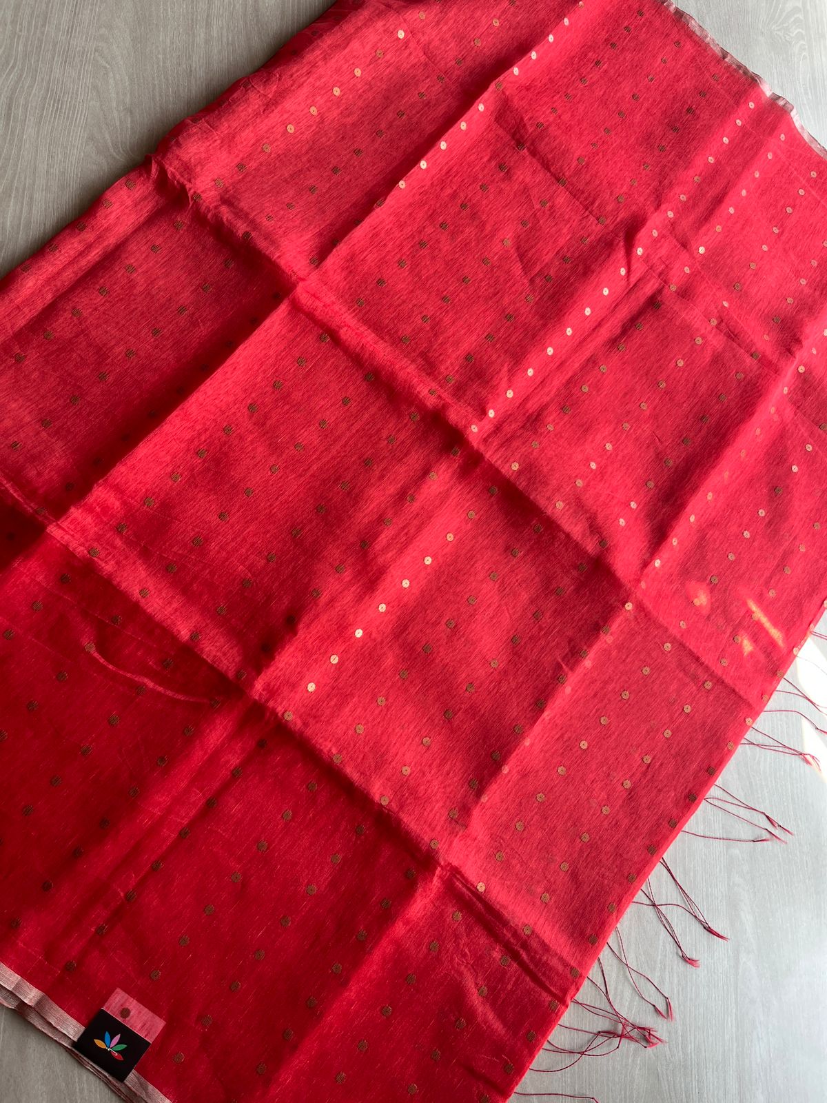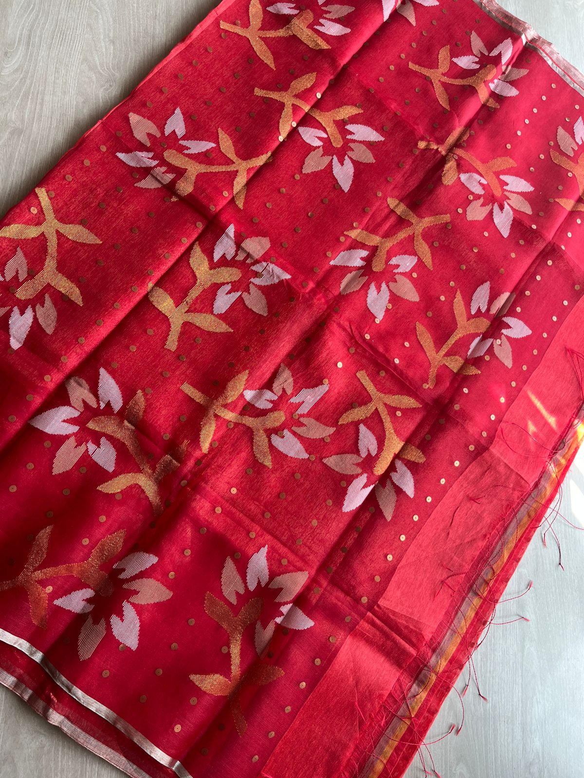 Handwoven Silk Linen Sequin Work Jamdani Saree