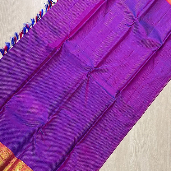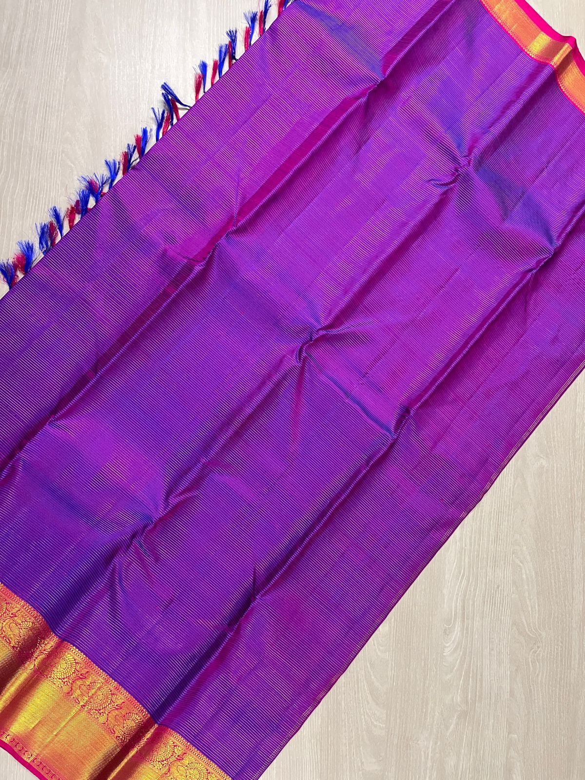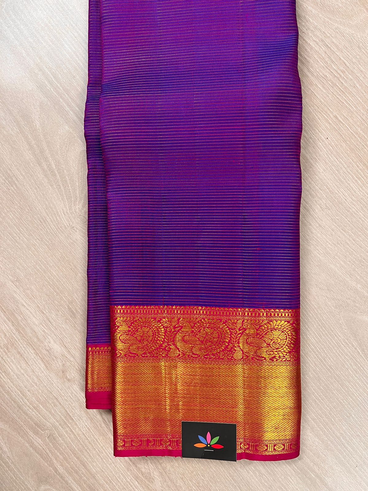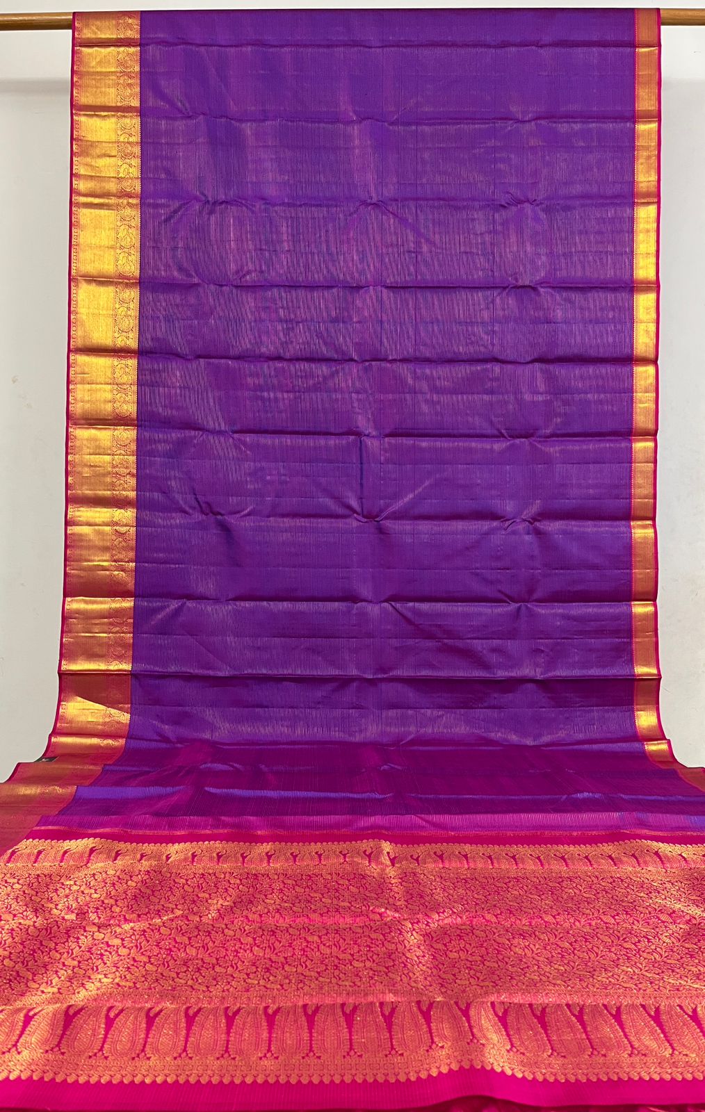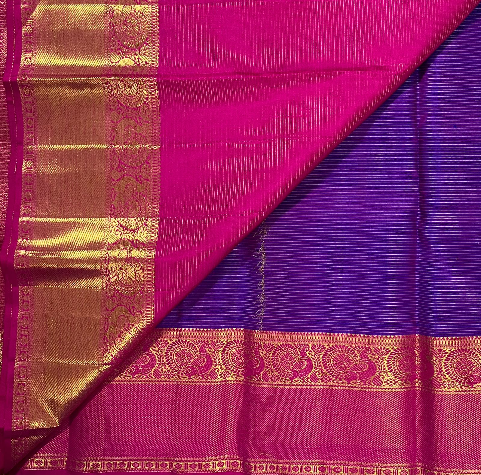 Handwoven Zari Stripes Kancheevaram Silk Saree with Traditional Annam Border -102A