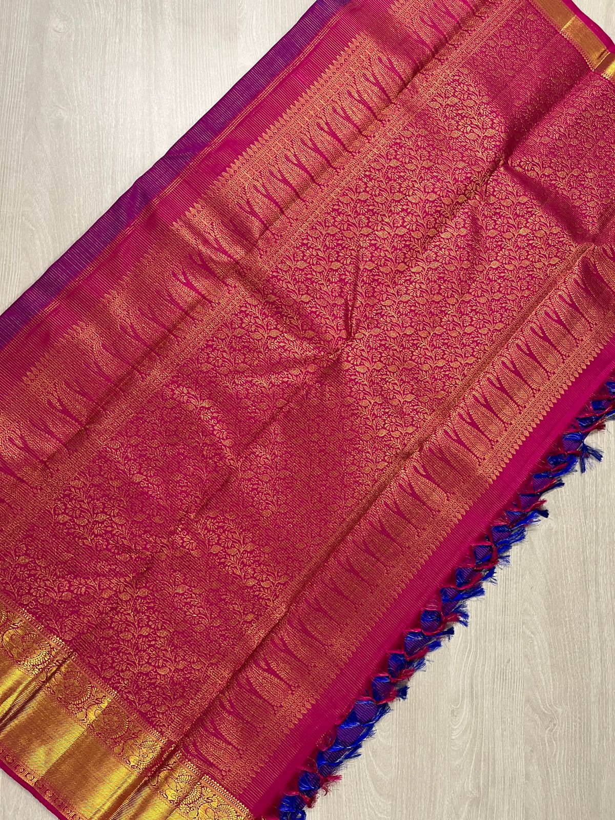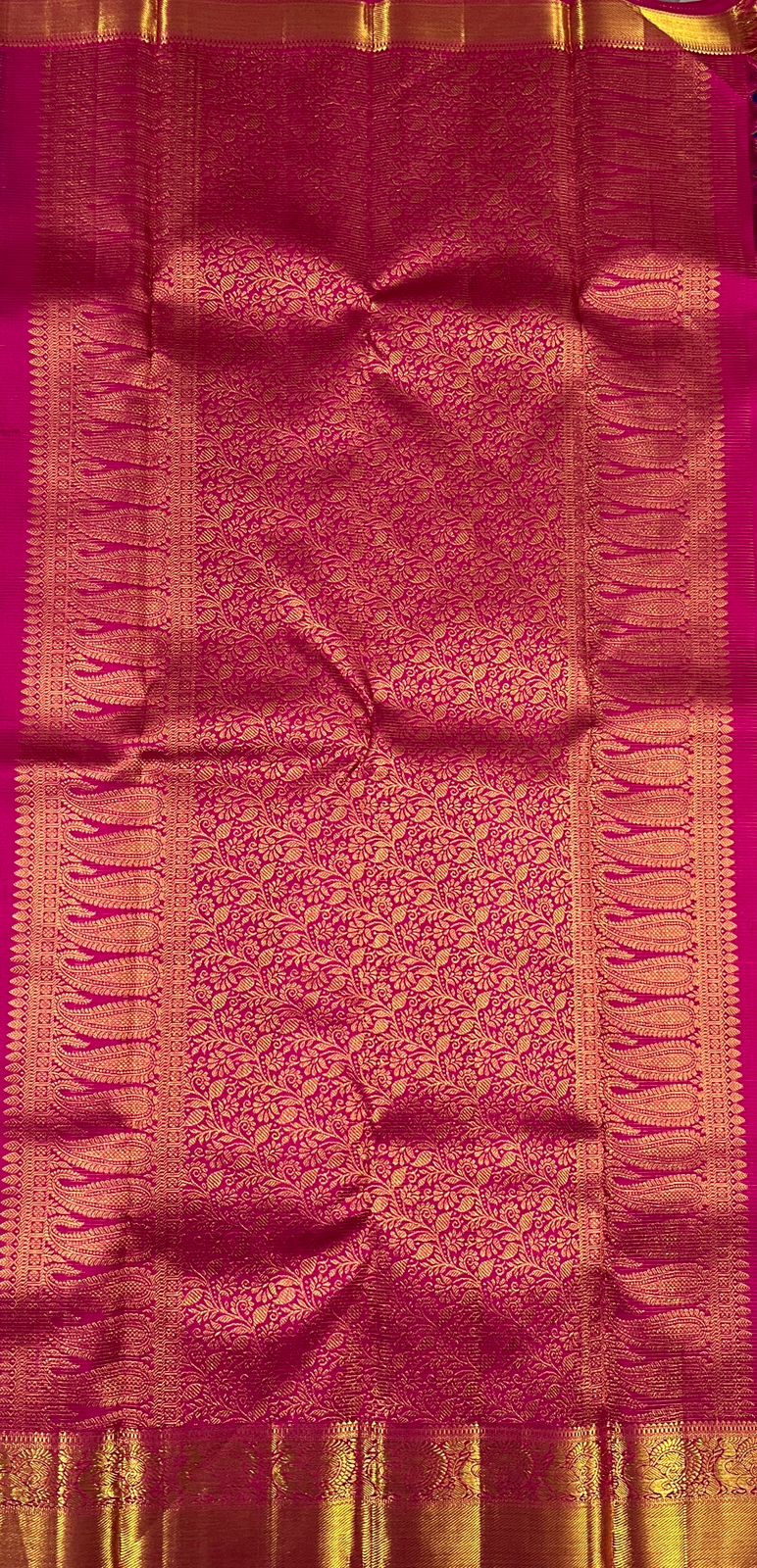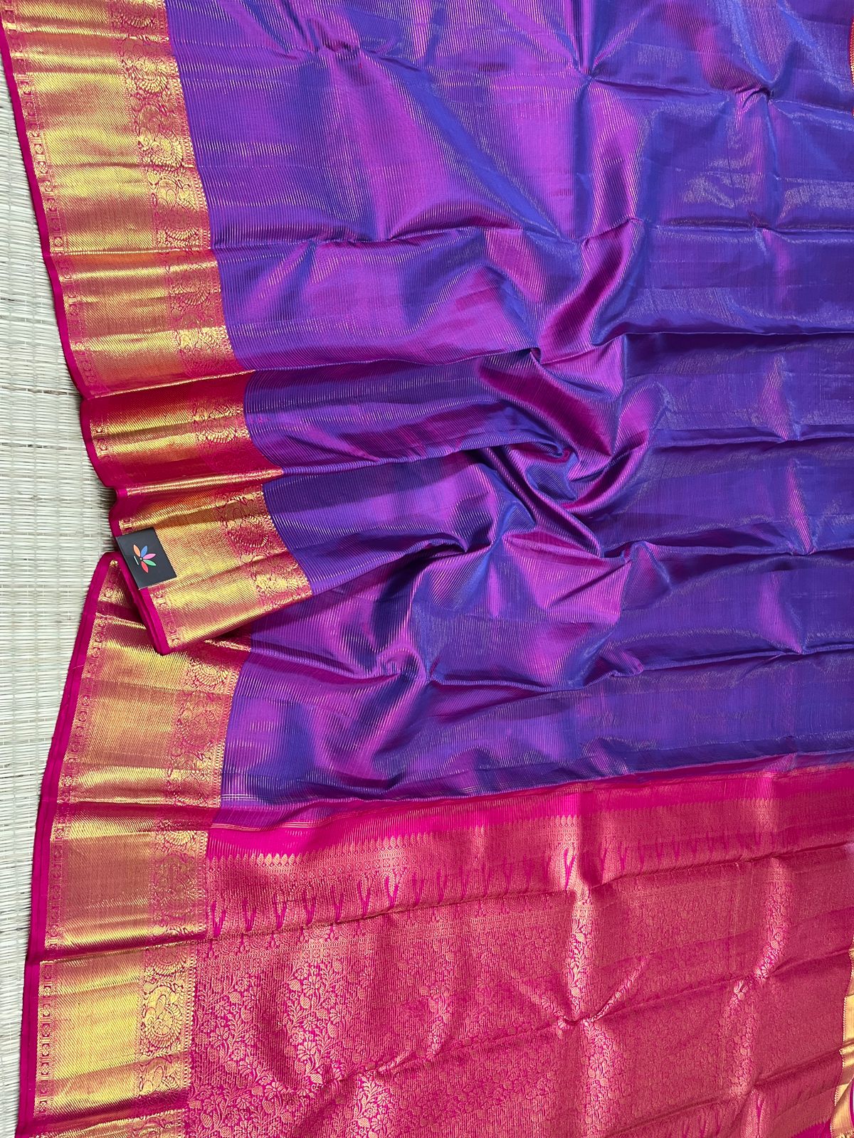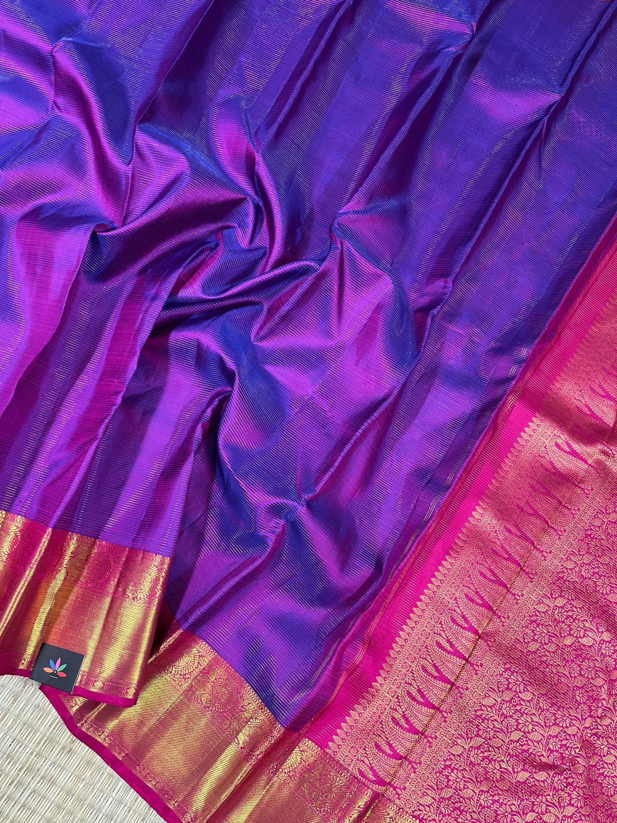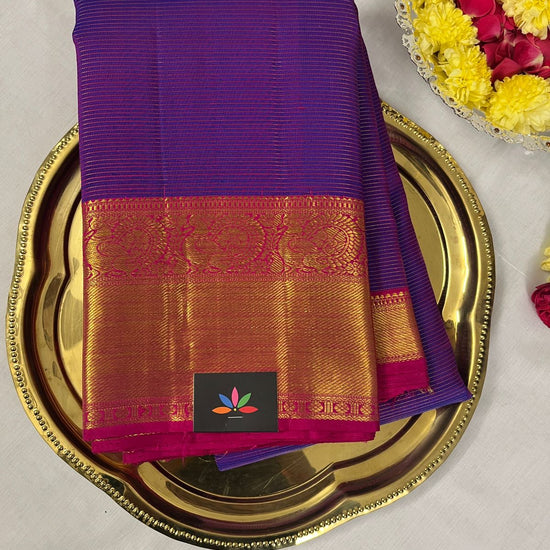 Handwoven Zari Stripes Kancheevaram Silk Saree with Traditional Annam Border -102A