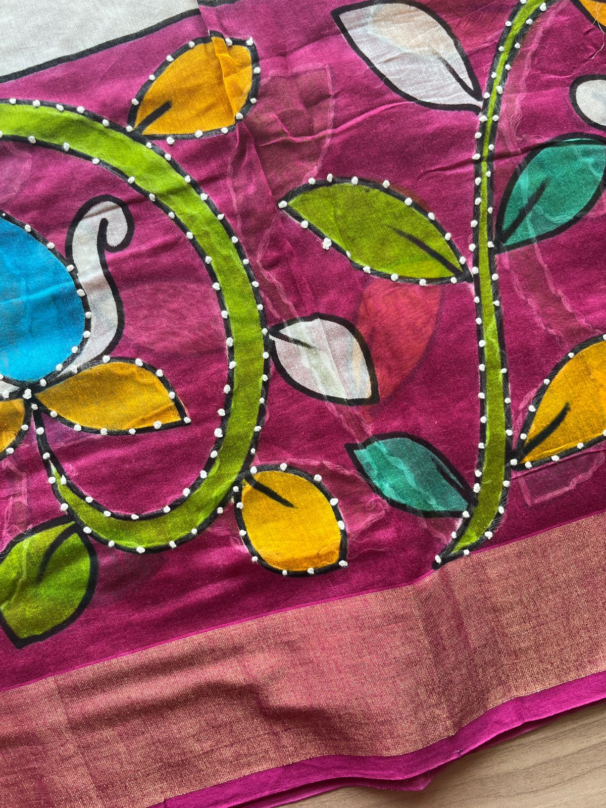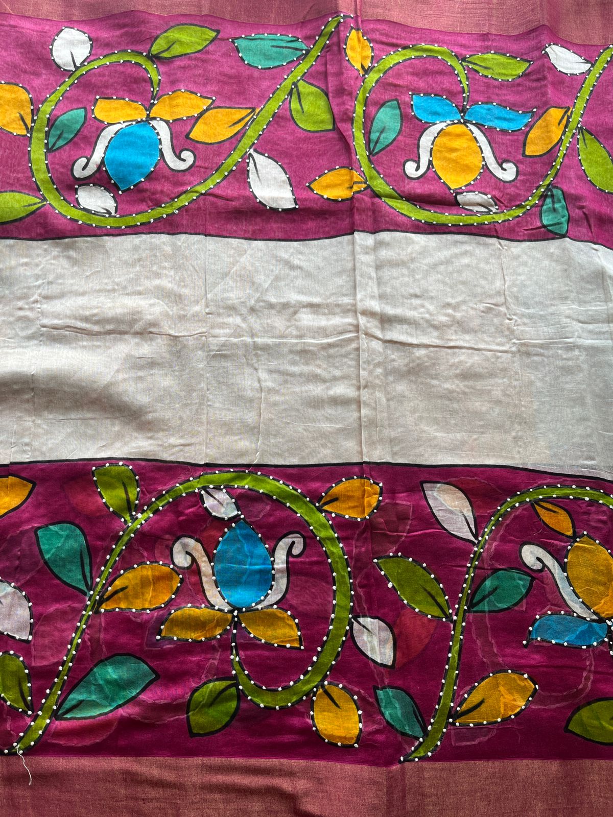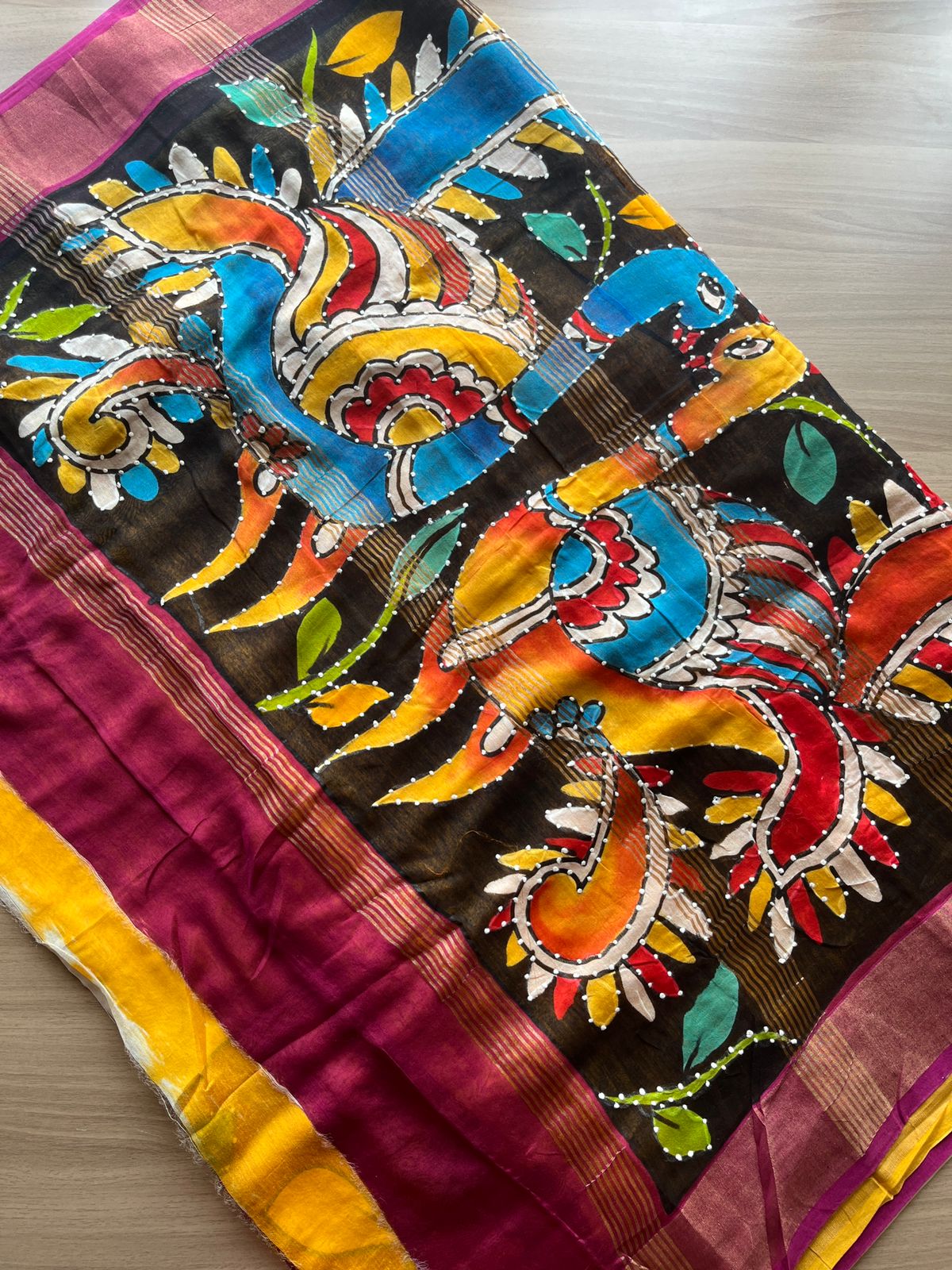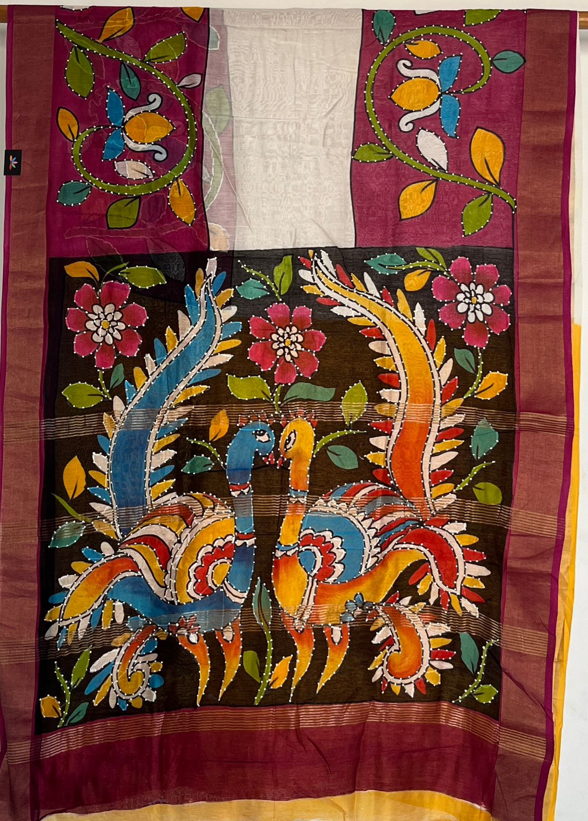 Kalamkari Painted Kantha Bapta Tussar Saree