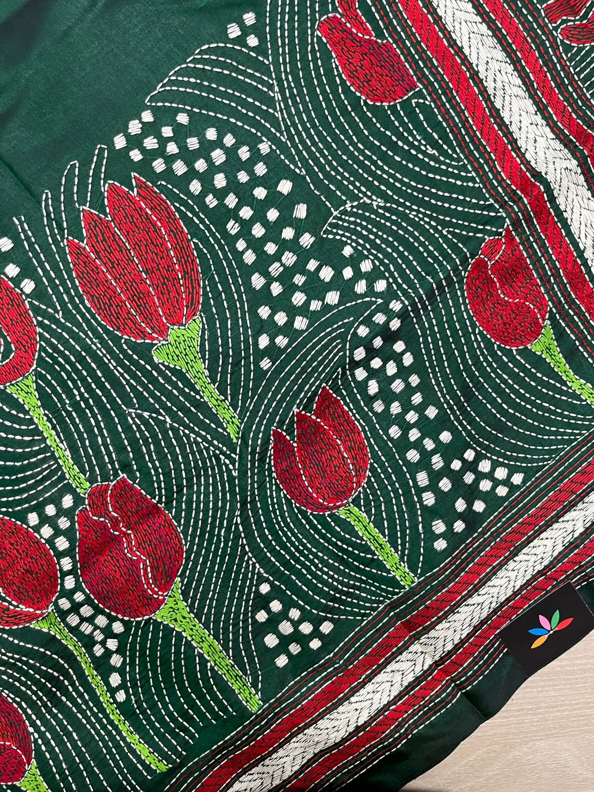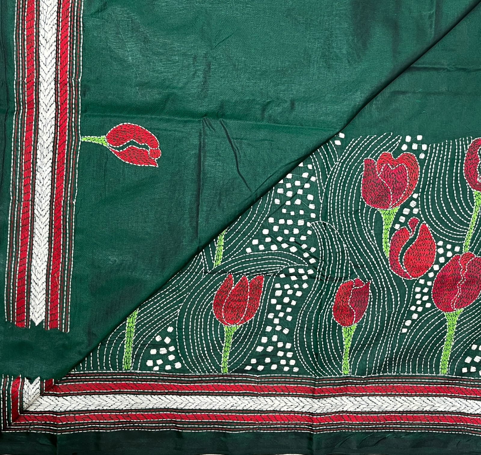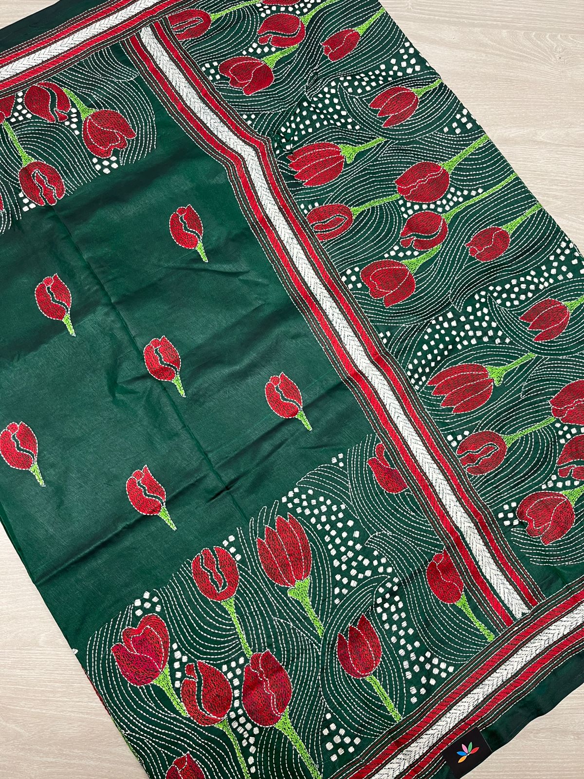 Kantha Stitch Semi Bangalore Silk Saree -23598