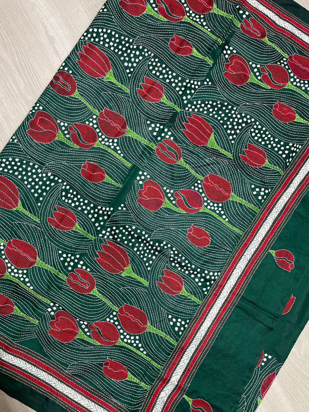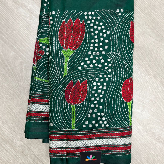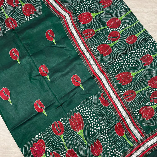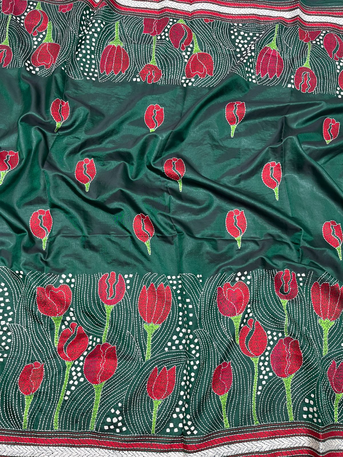Kantha Stitch Semi Bangalore Silk Saree -23598