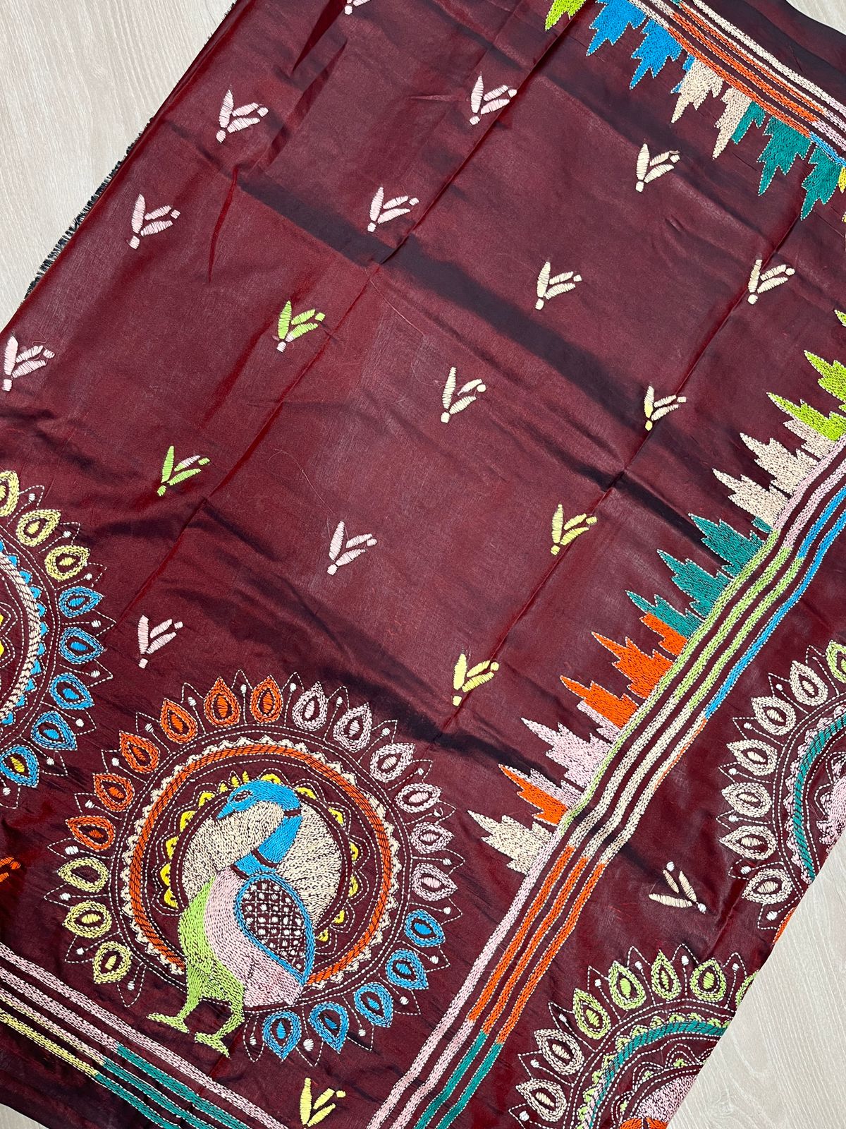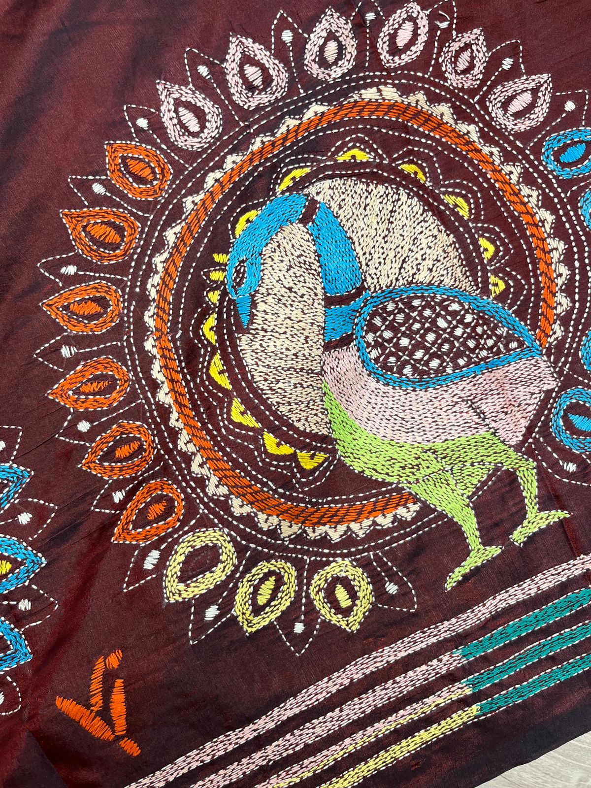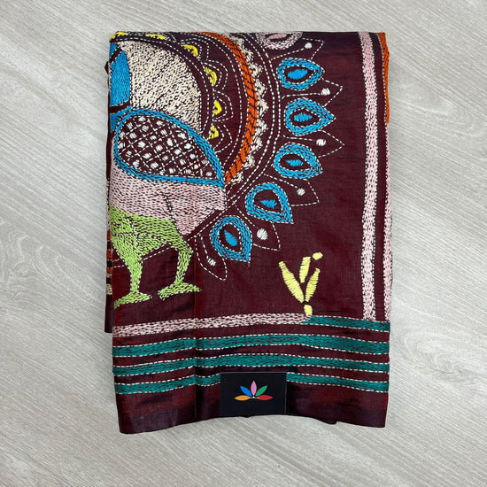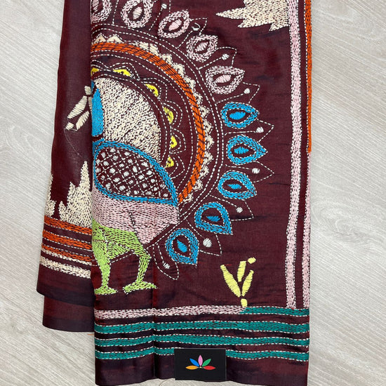 Kantha Stitch Semi Bangalore Silk Saree -23600