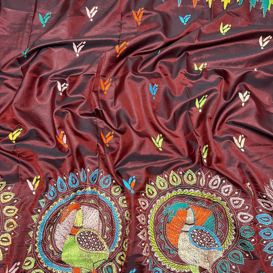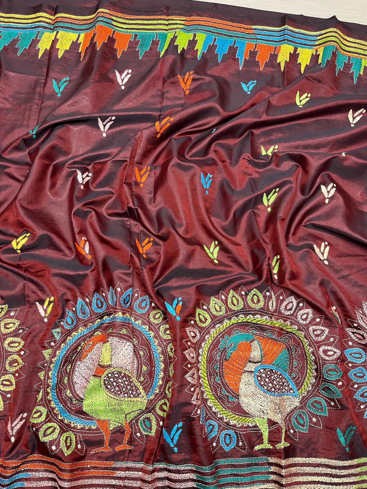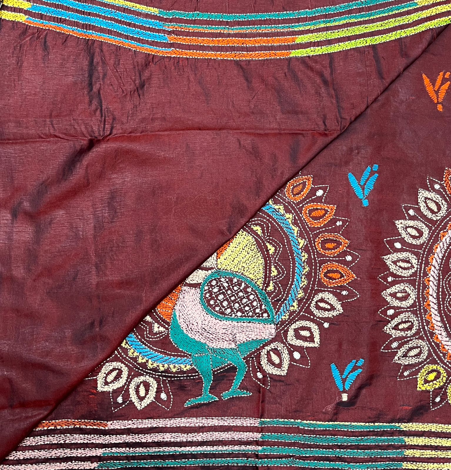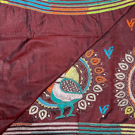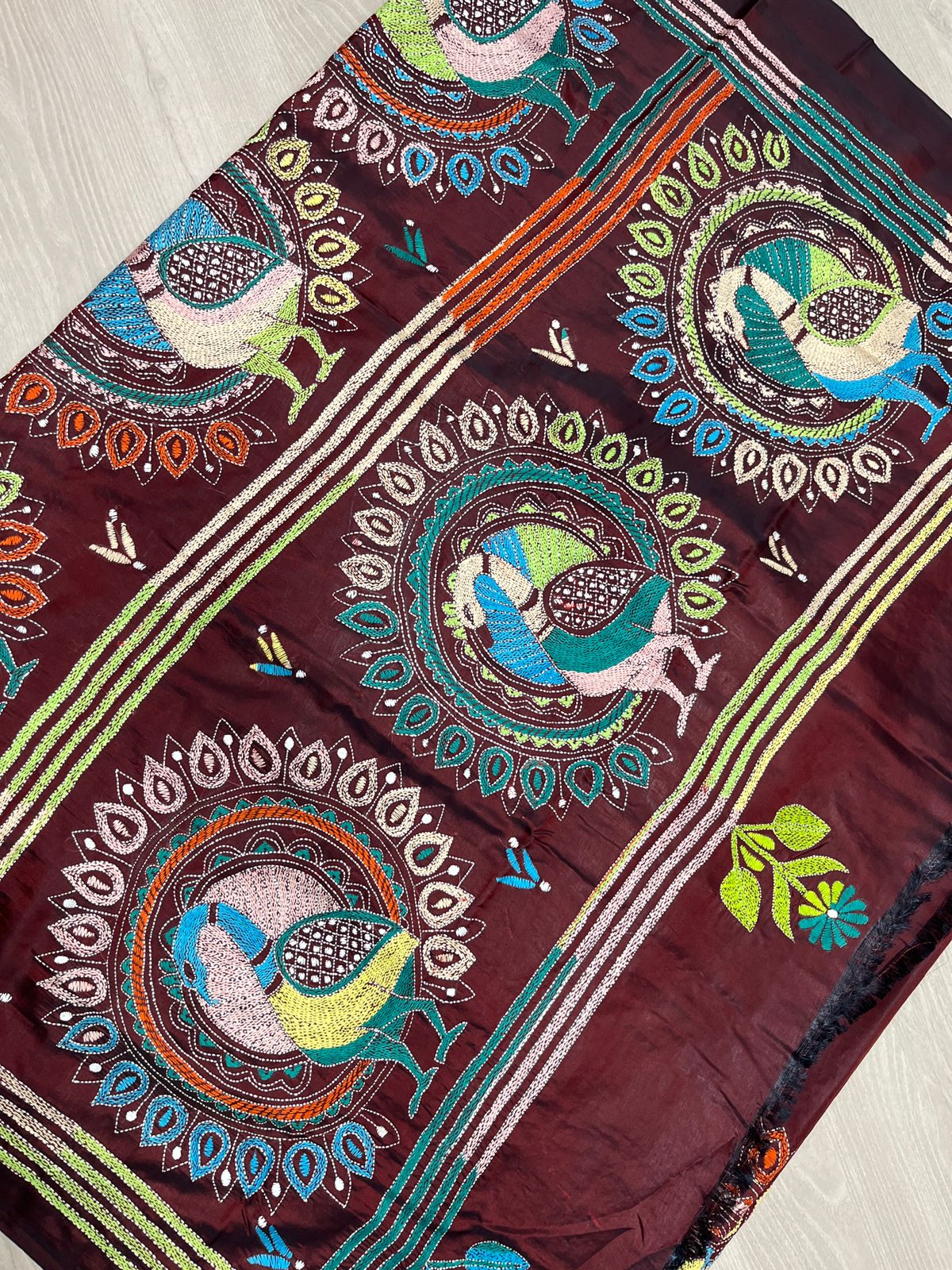 Kantha Stitch Semi Bangalore Silk Saree -23600
