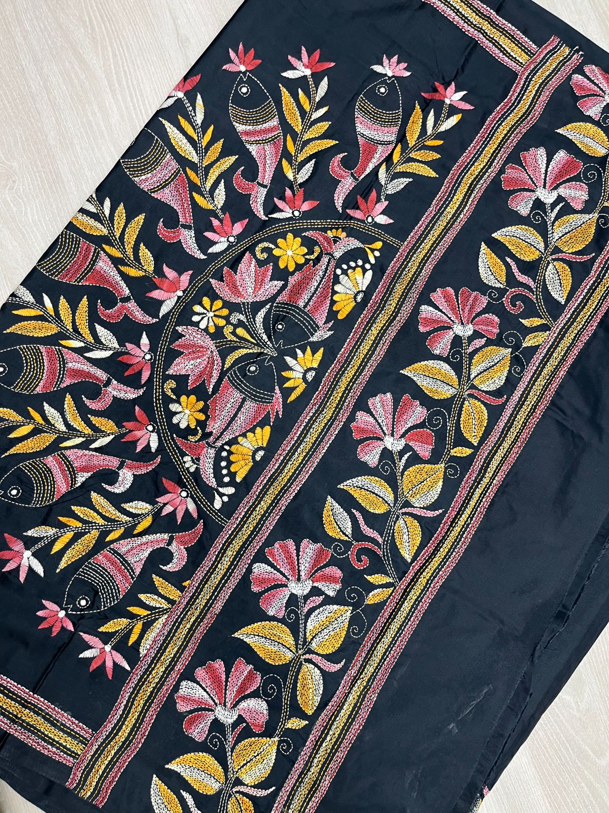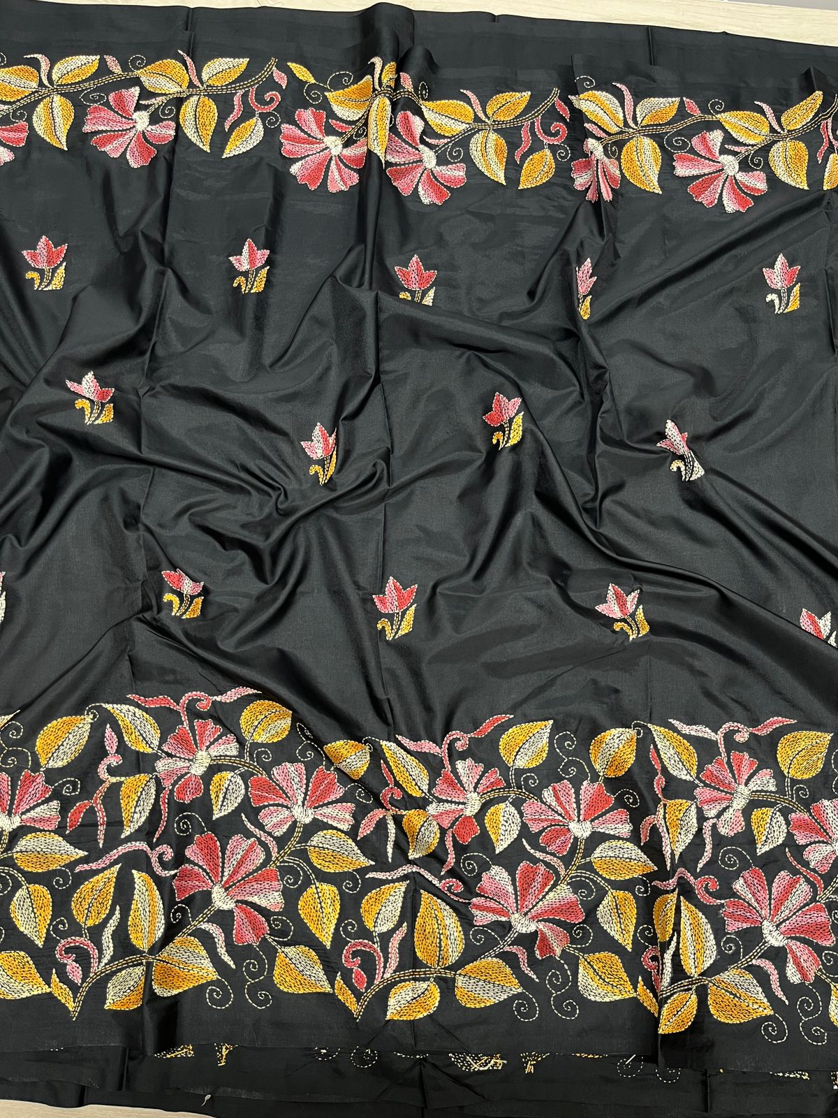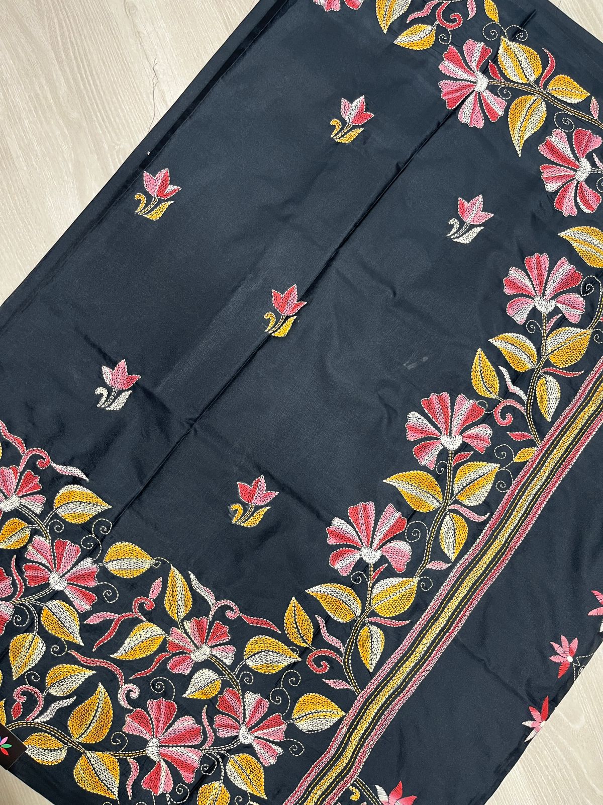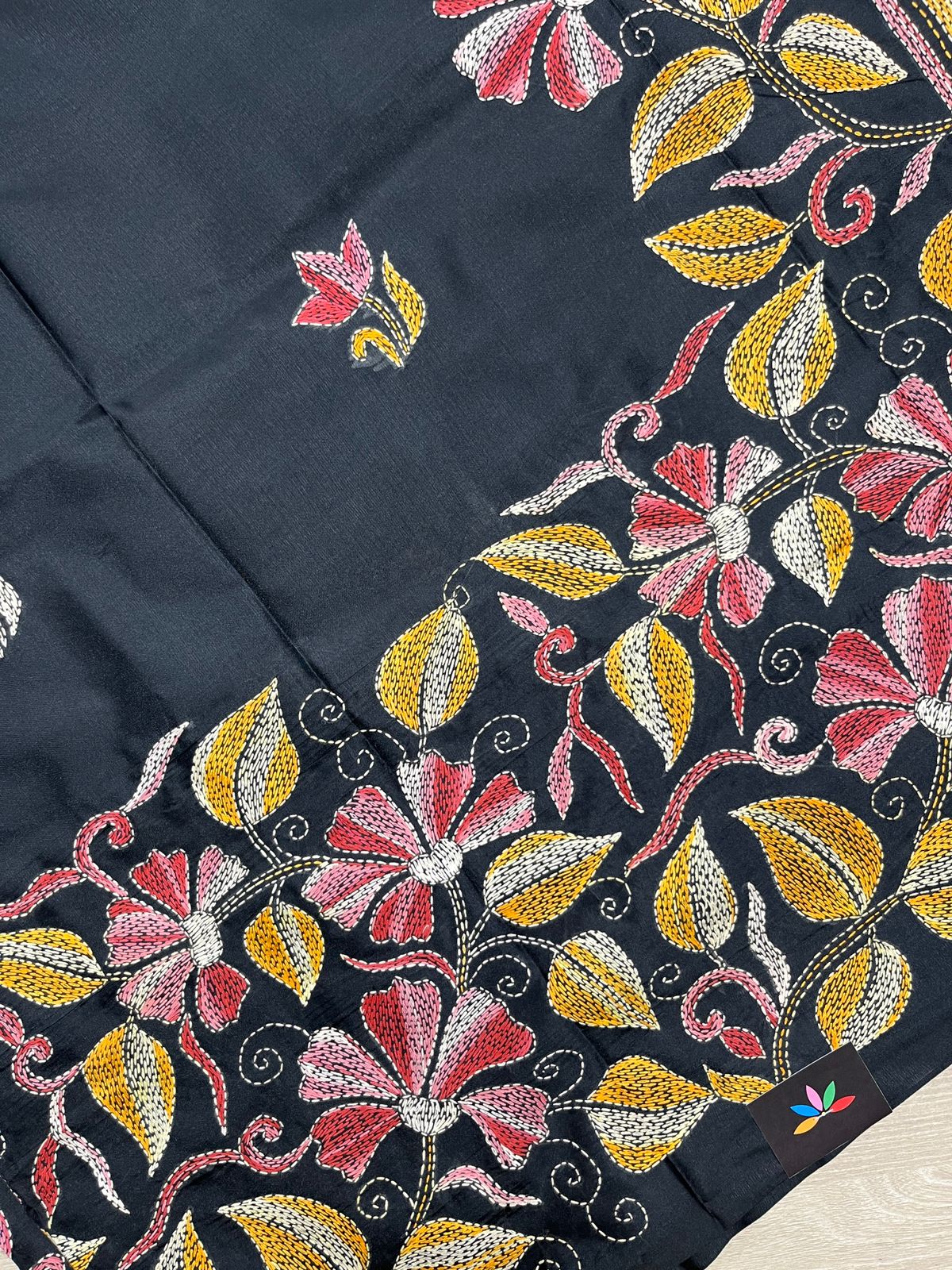 Kantha Stitch Semi Bangalore Silk Saree -23601