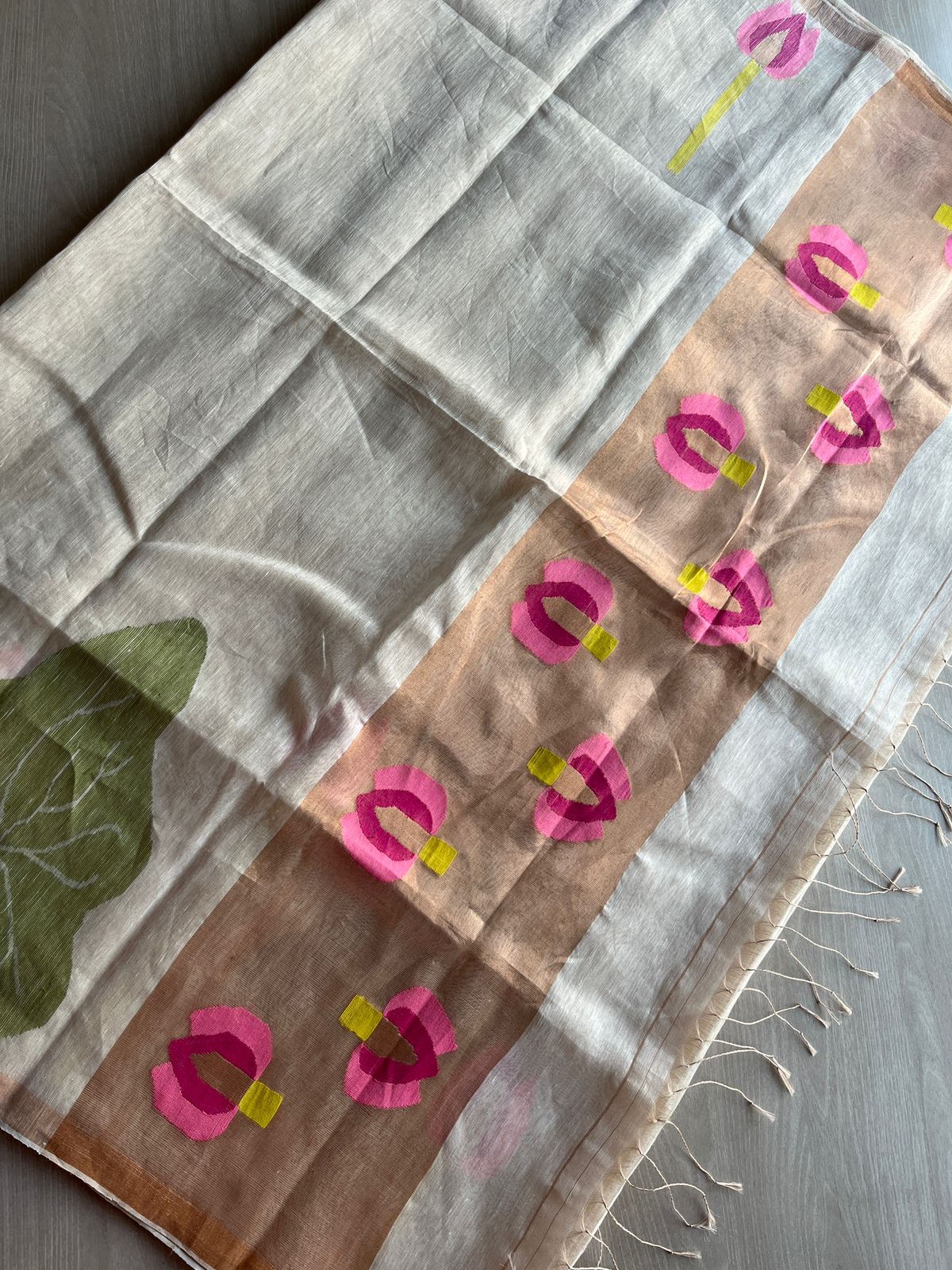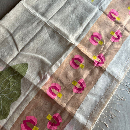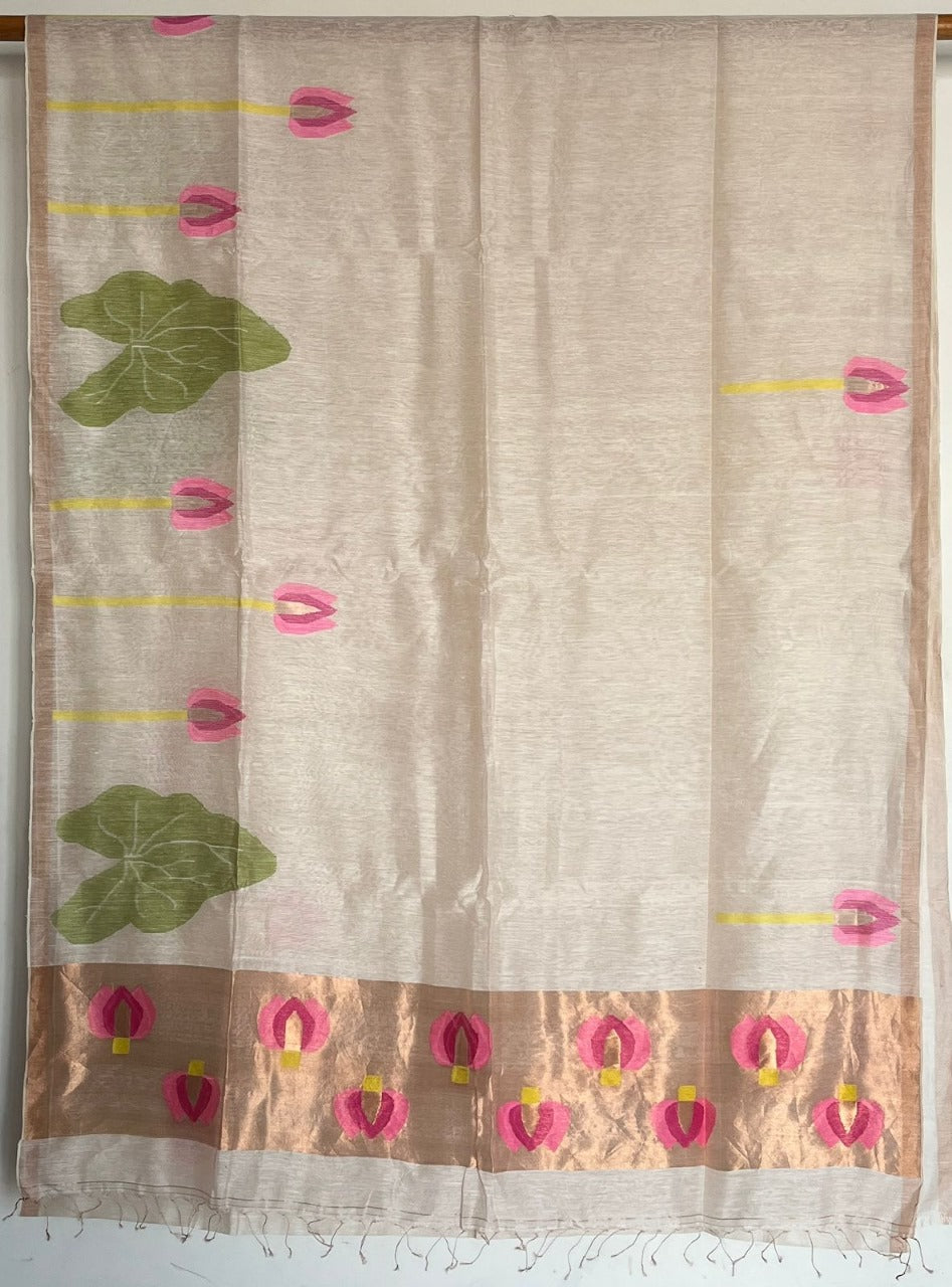 Lotus Tissue Linen Jamdani Saree-26695