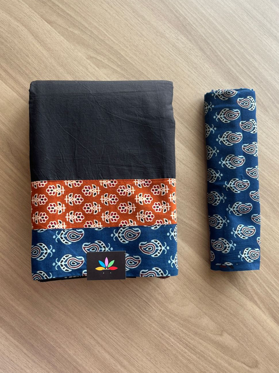 Natural Dyed Ajrakh Patch Work Cotton Saree -12527