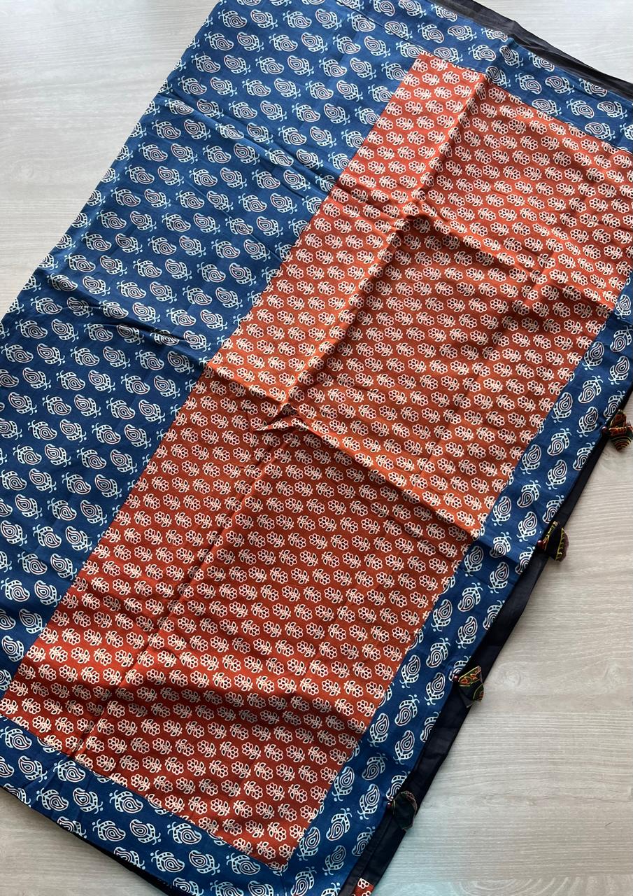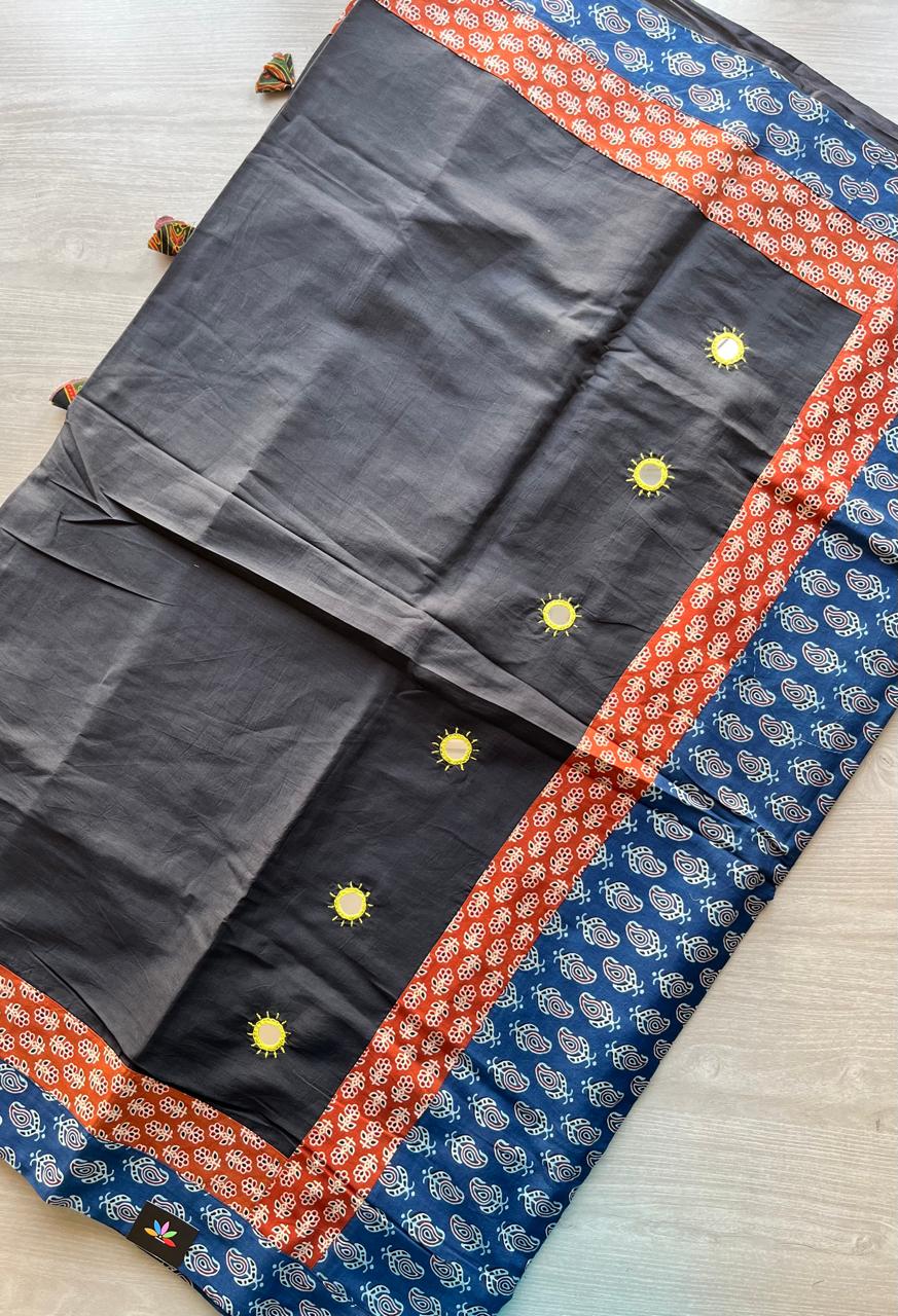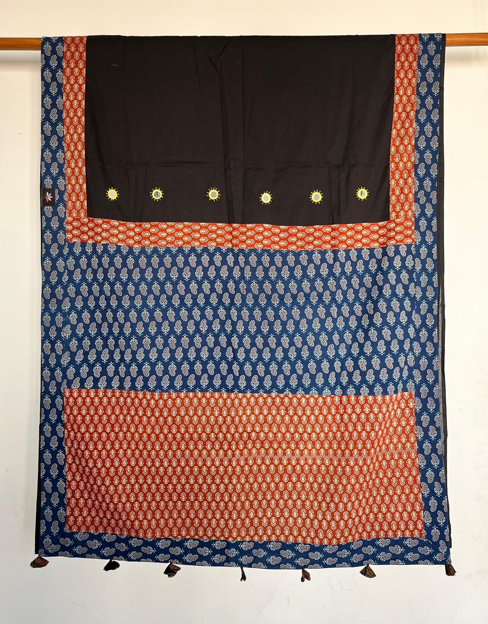 Natural Dyed Ajrakh Patch Work Cotton Saree