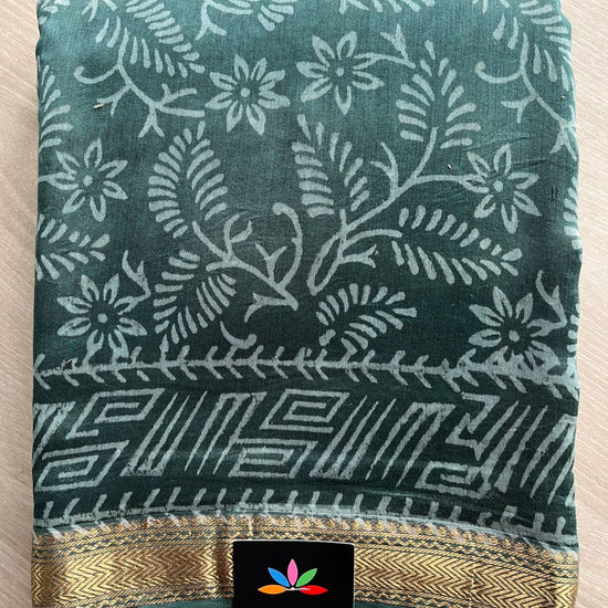 Natural Dyed Handblock Printed Maheshwari Silk Cotton Saree