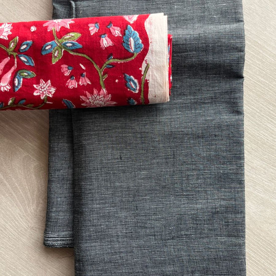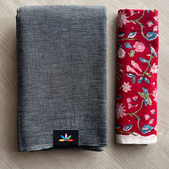 Plain Cotton Saree with Contrast Blouse-25034