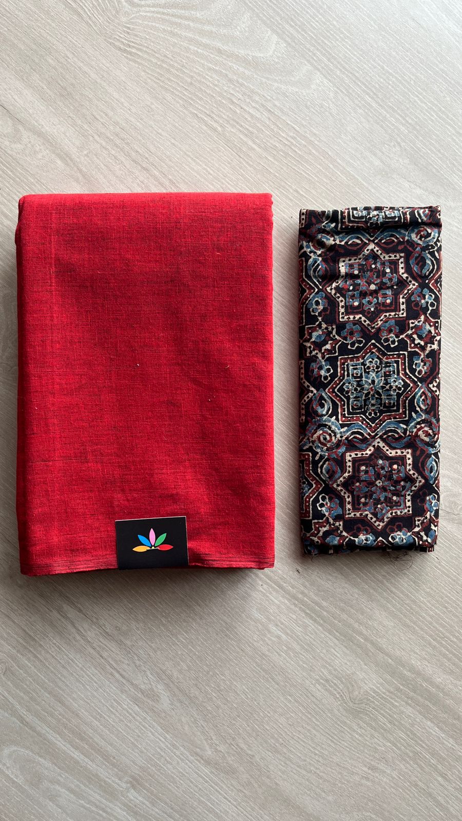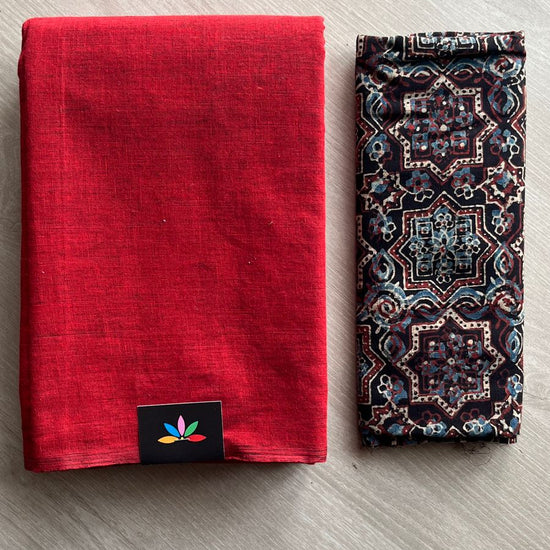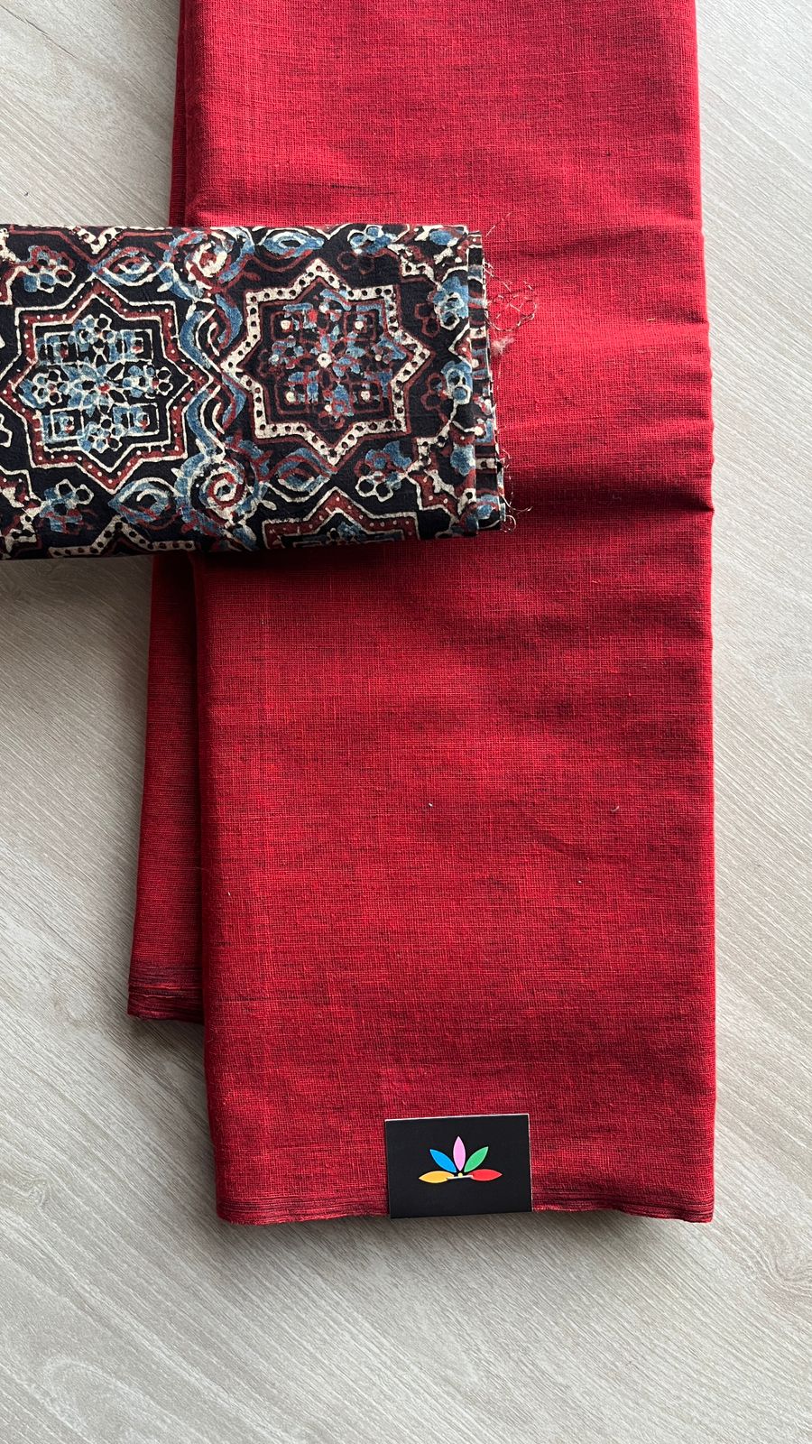 Plain Cotton Saree with Contrast Blouse-25054-25055