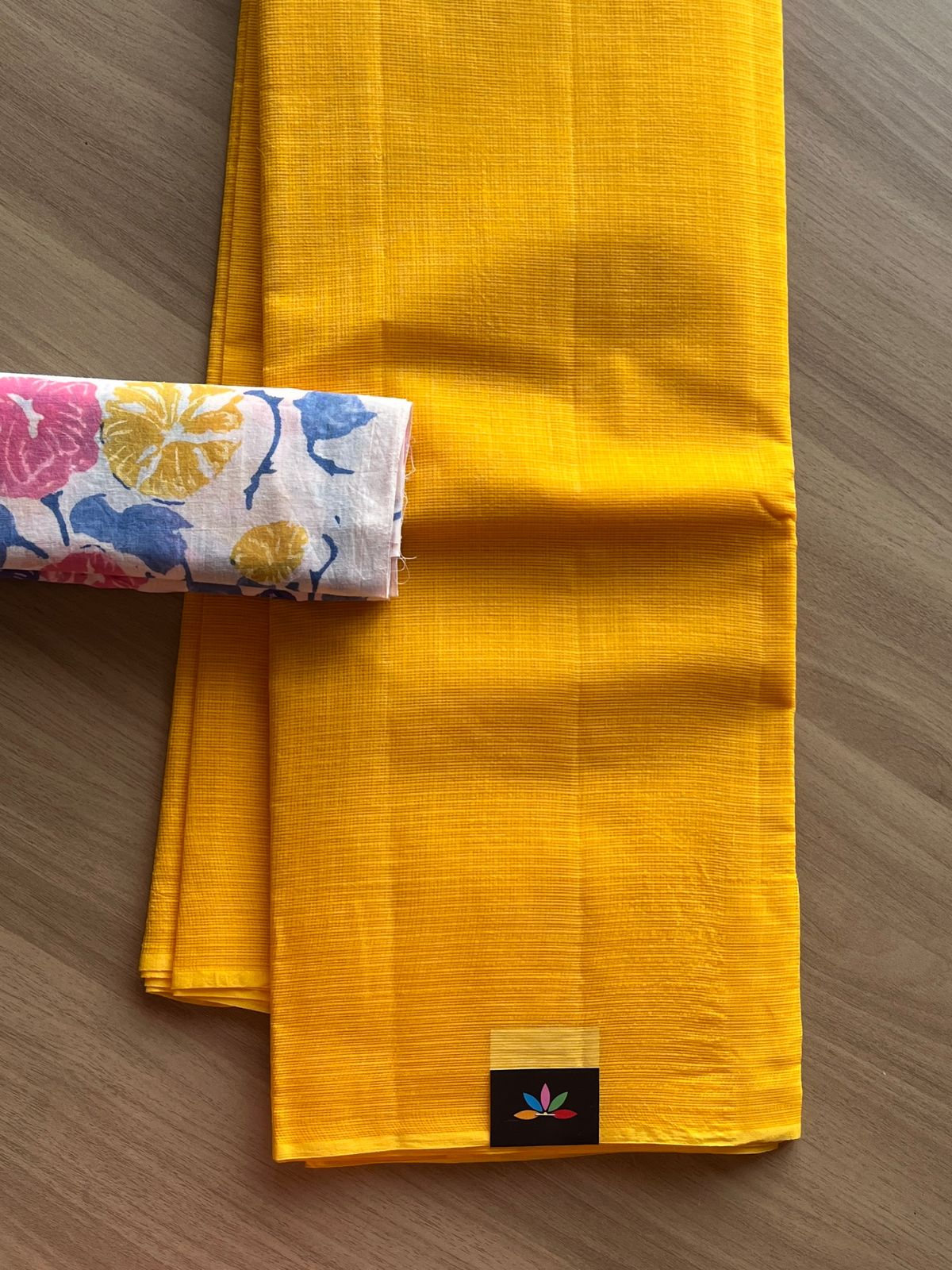 Plain Kota Cotton Saree Paired with Contrast Blouse
