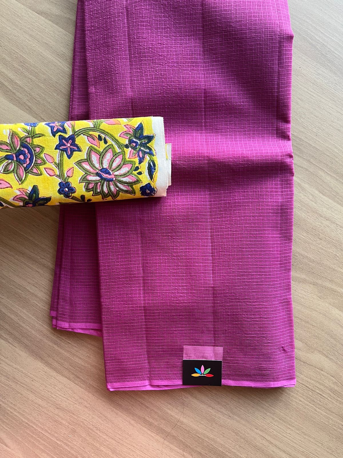 Plain Kota Cotton Saree Paired with Contrast Blouse