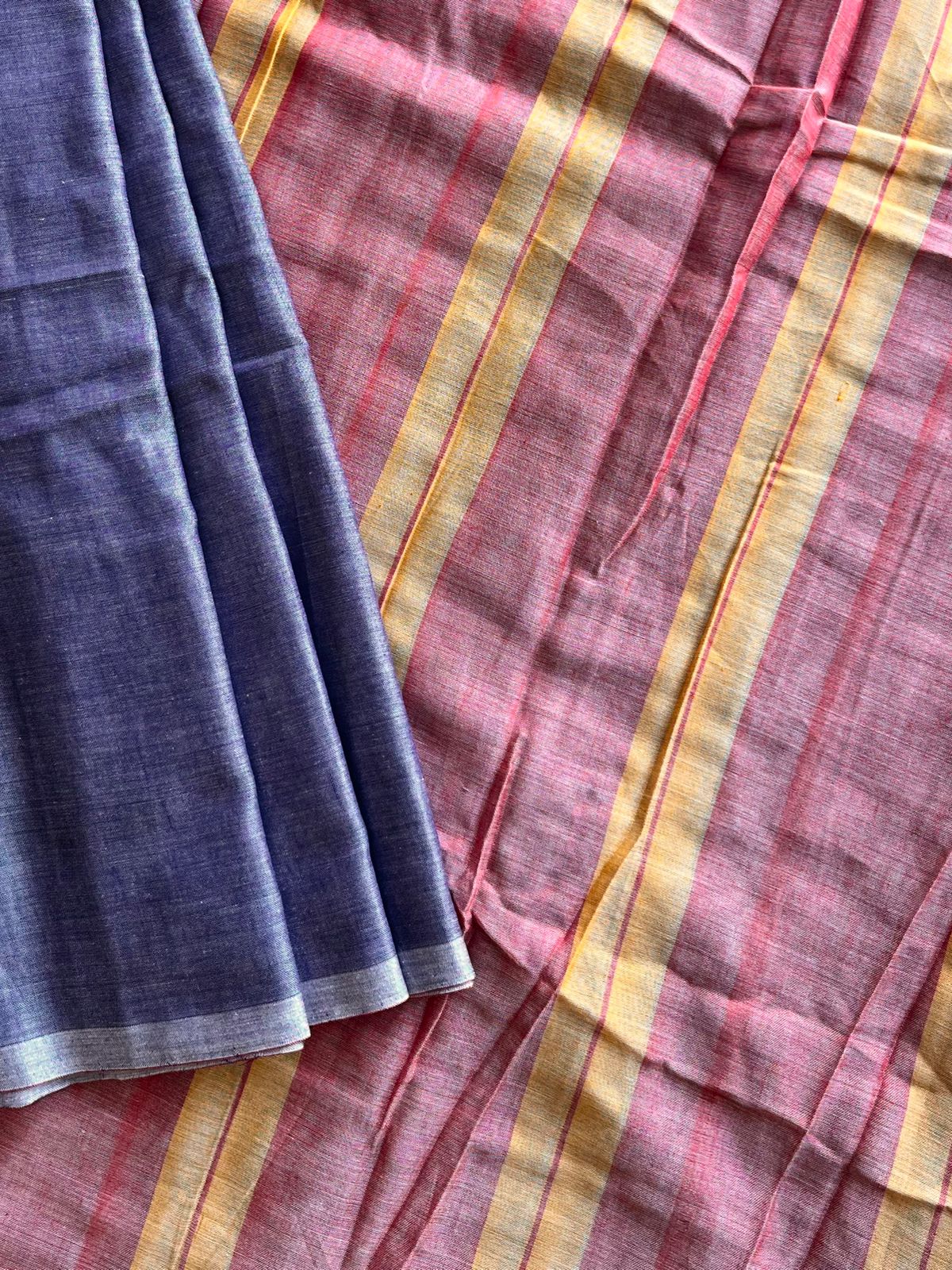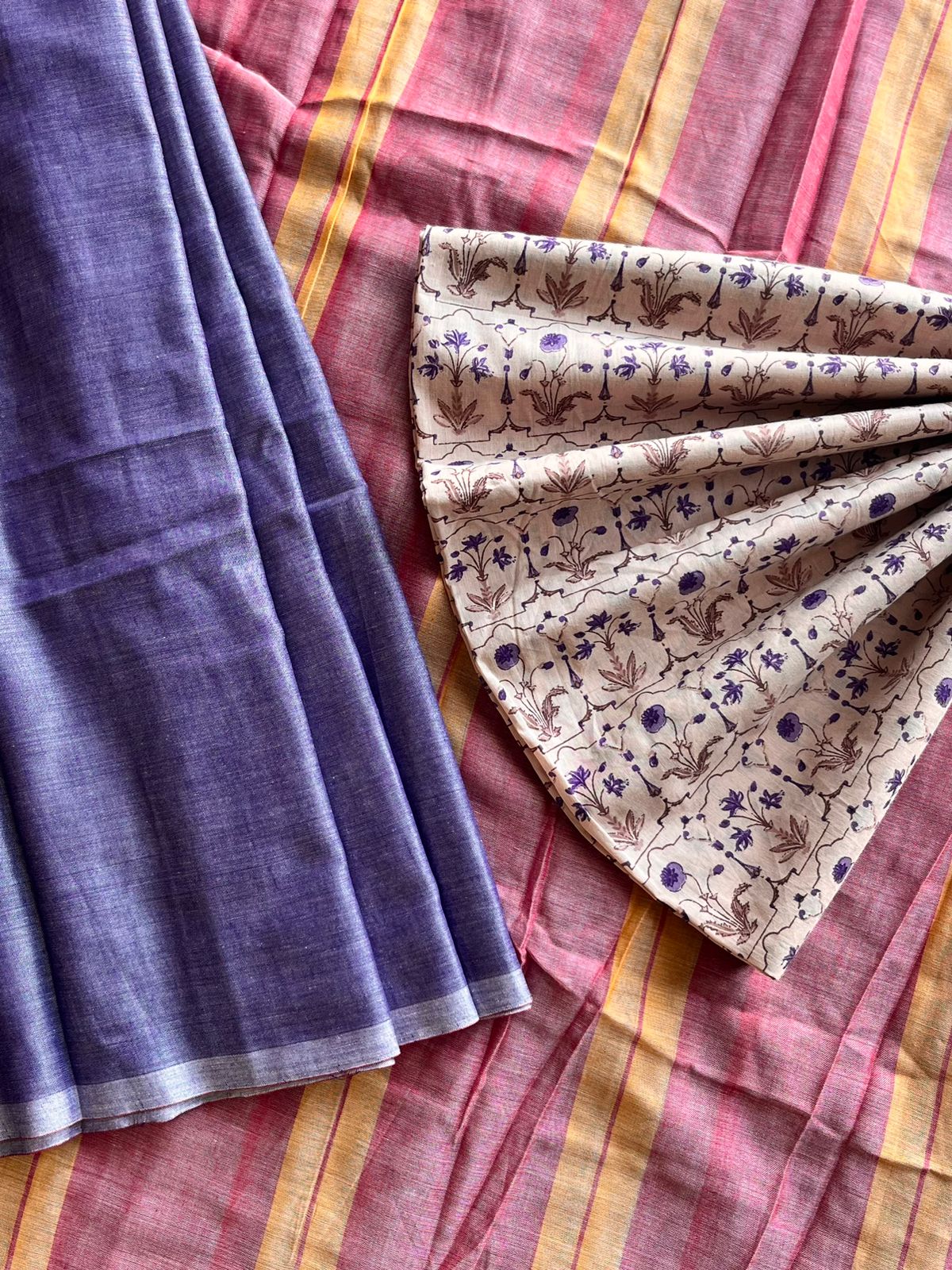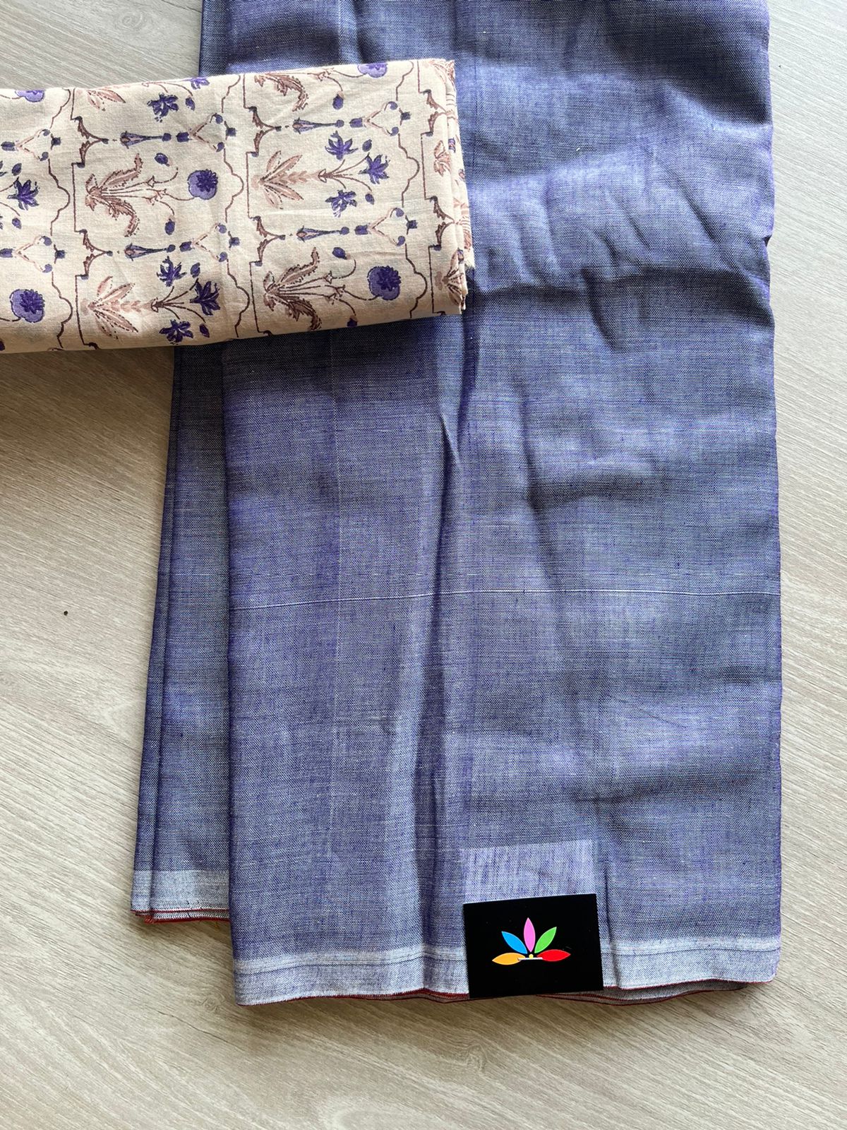 Plain Mercerized Cotton Saree with Contrast Blouse Fabric
