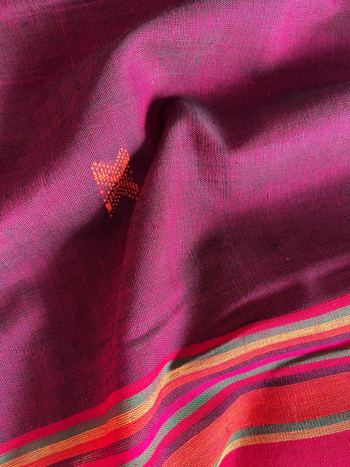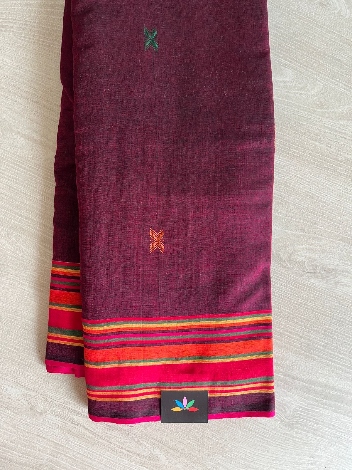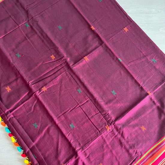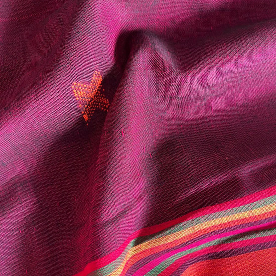 Plum Violet Handloom Bujodi Design Soft Cotton Saree