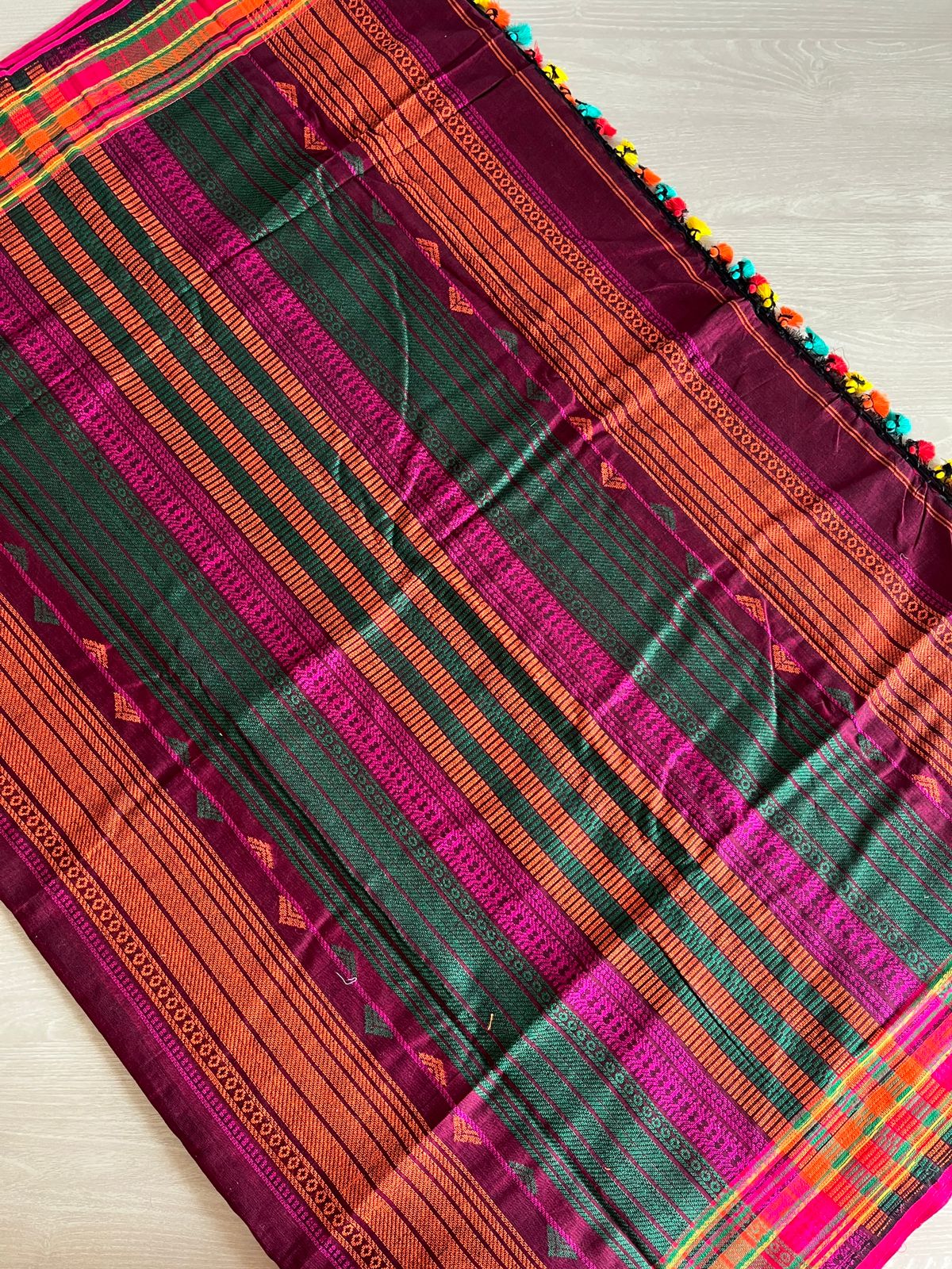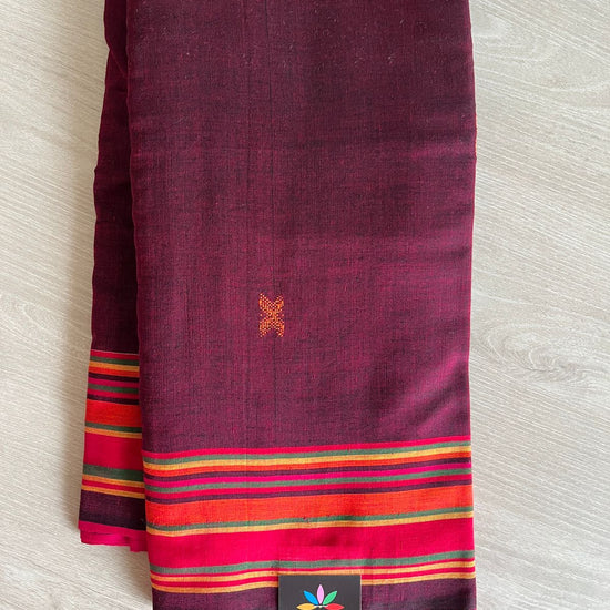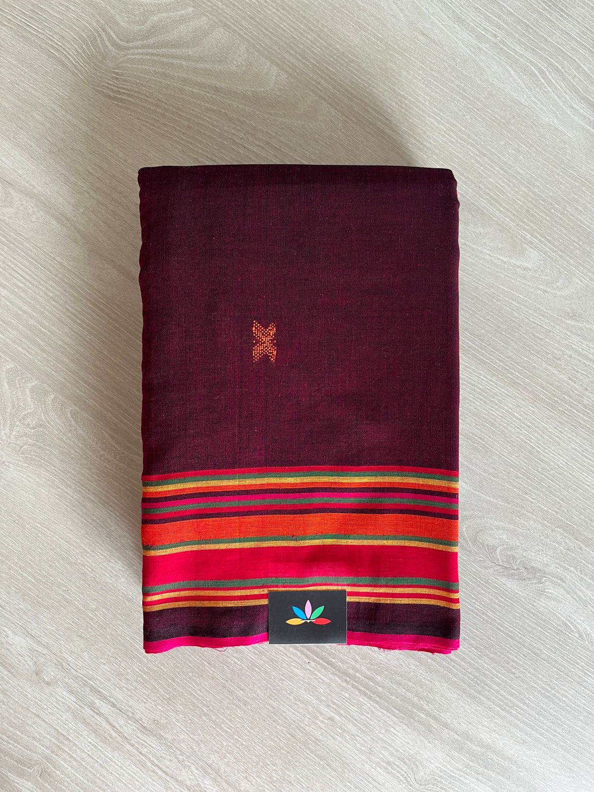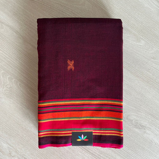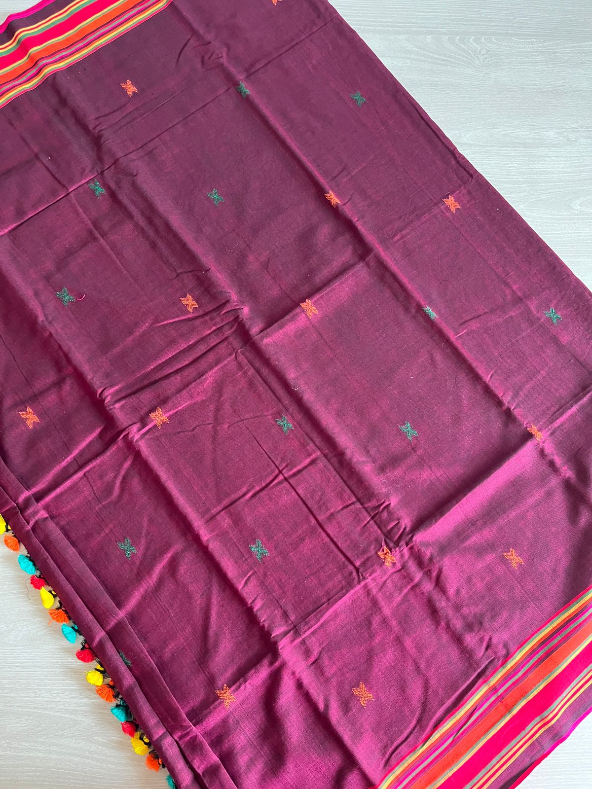 Plum Violet Handloom Bujodi Design Soft Cotton Saree