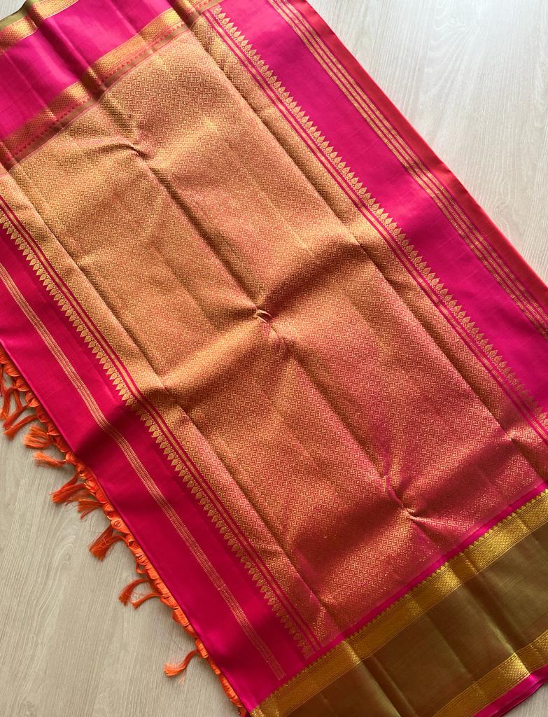 Rich Pallu Contrast Korvai Border Handloom Pure Kancheevaram Silk Saree