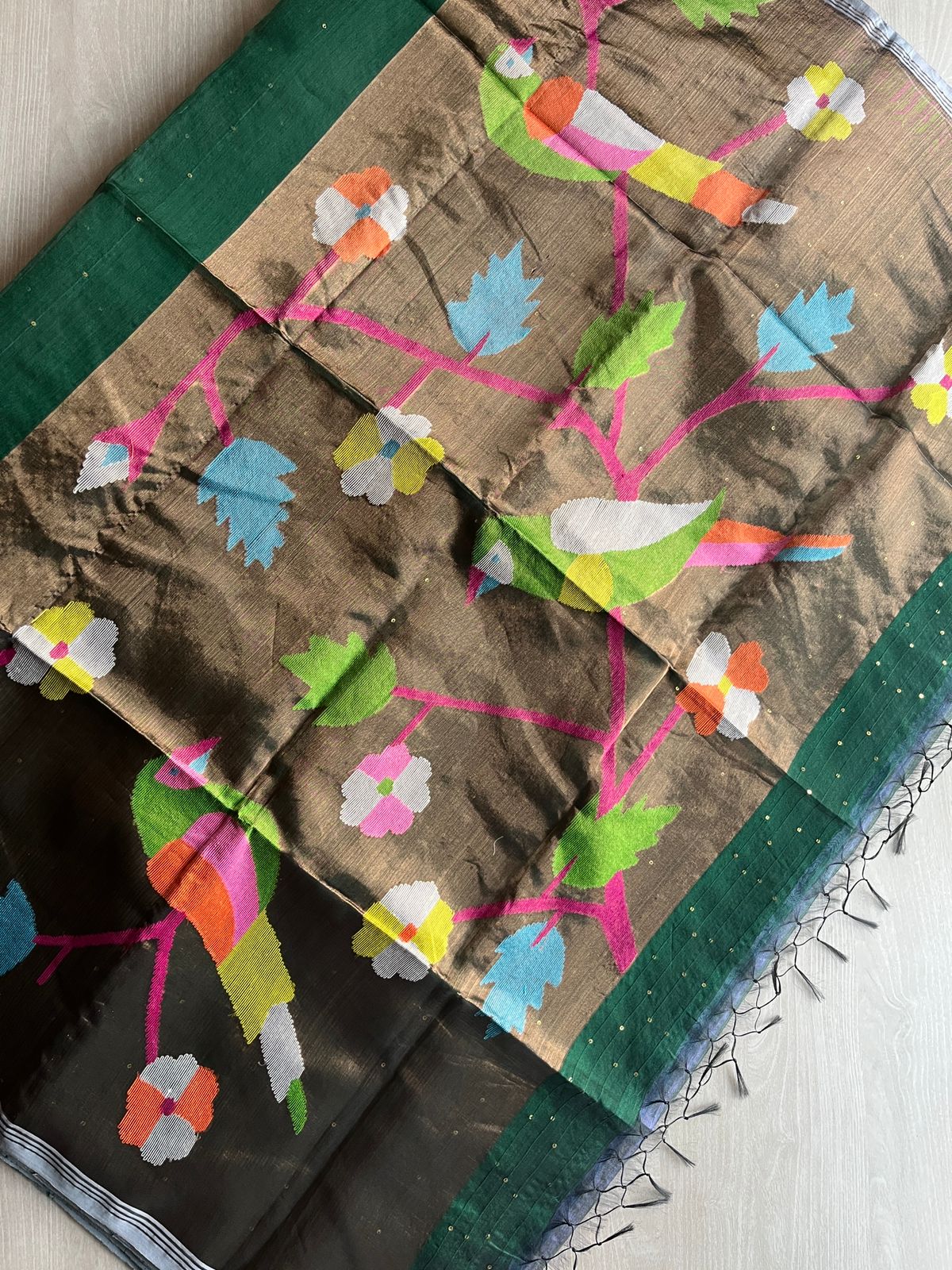 Note-All the pictures are taken in daylight. Although we try to replicate the original color slight color variation is possible in digital photography and various screen resolutions. This is a handwoven saree and minor human flaws such as extra thread will not be considered a defect. These add to the beauty of the product and will not be considered a defect.