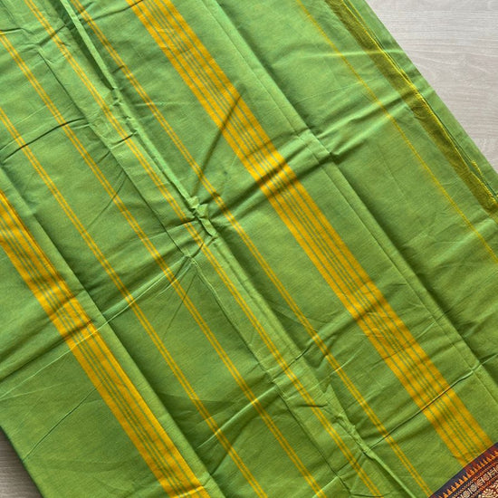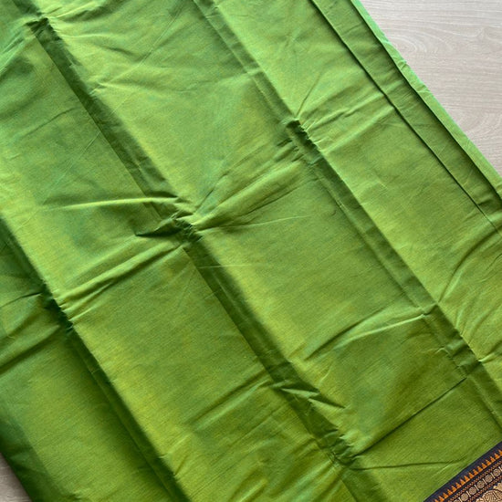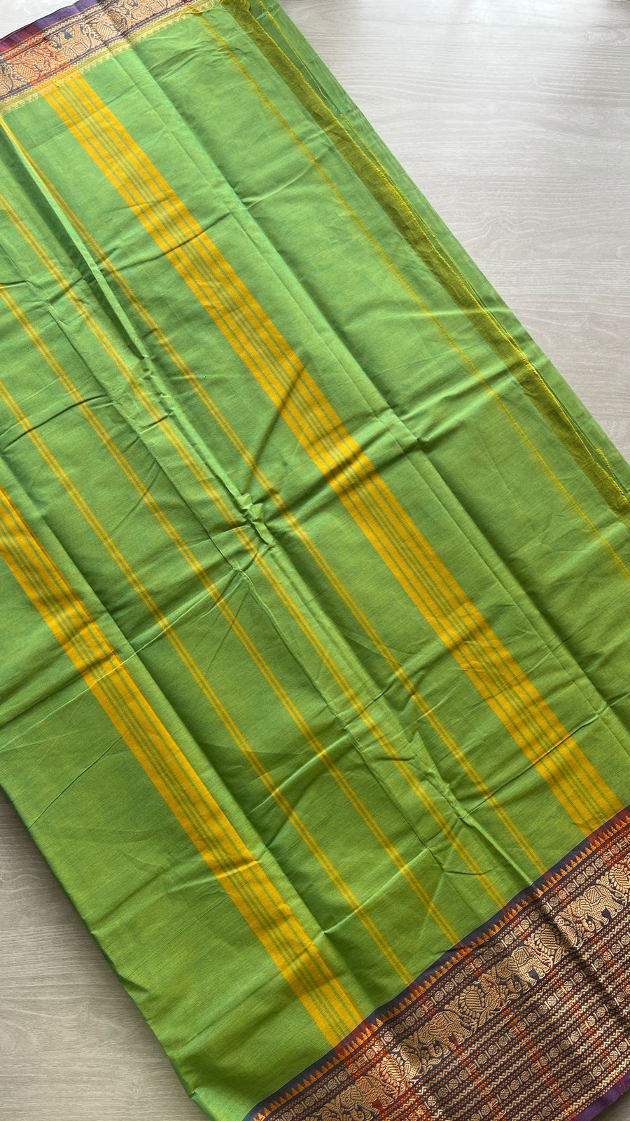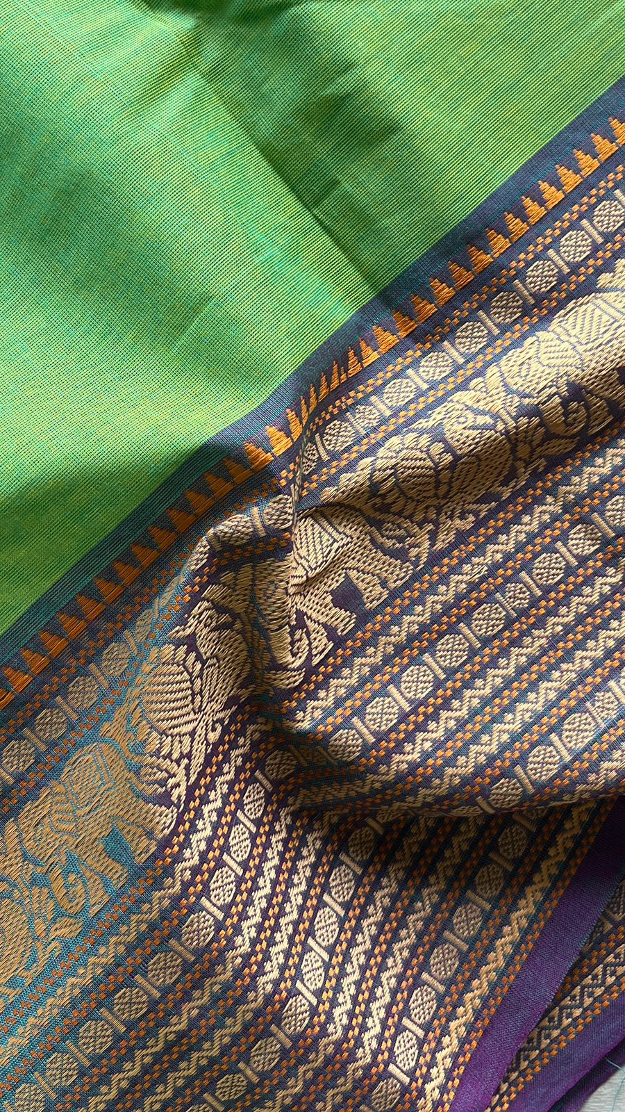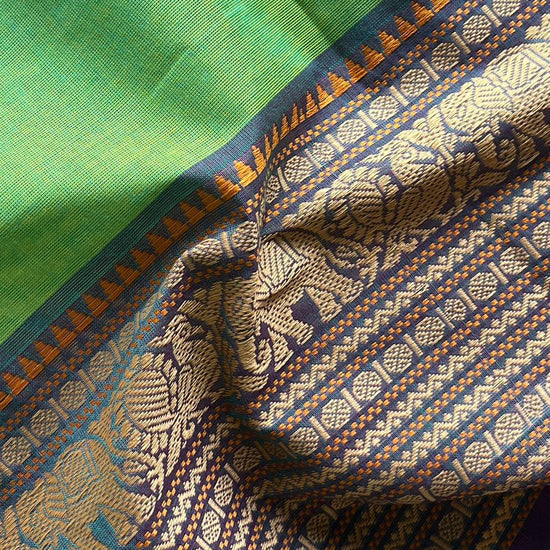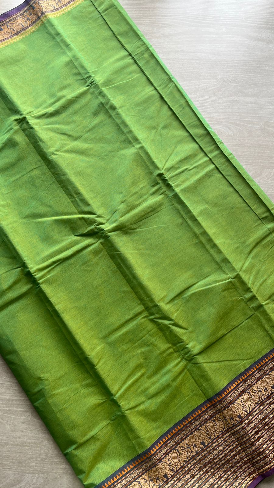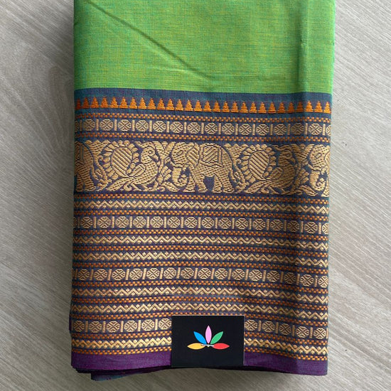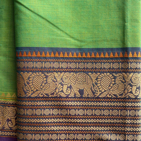 Parrot Green Chettinad Cotton Saree with Elephant Border -24408