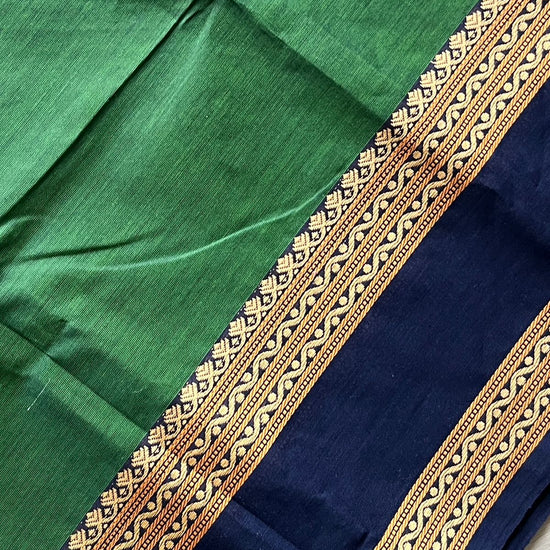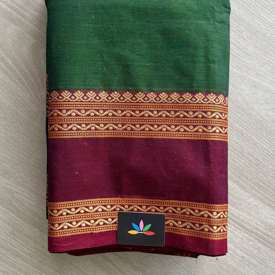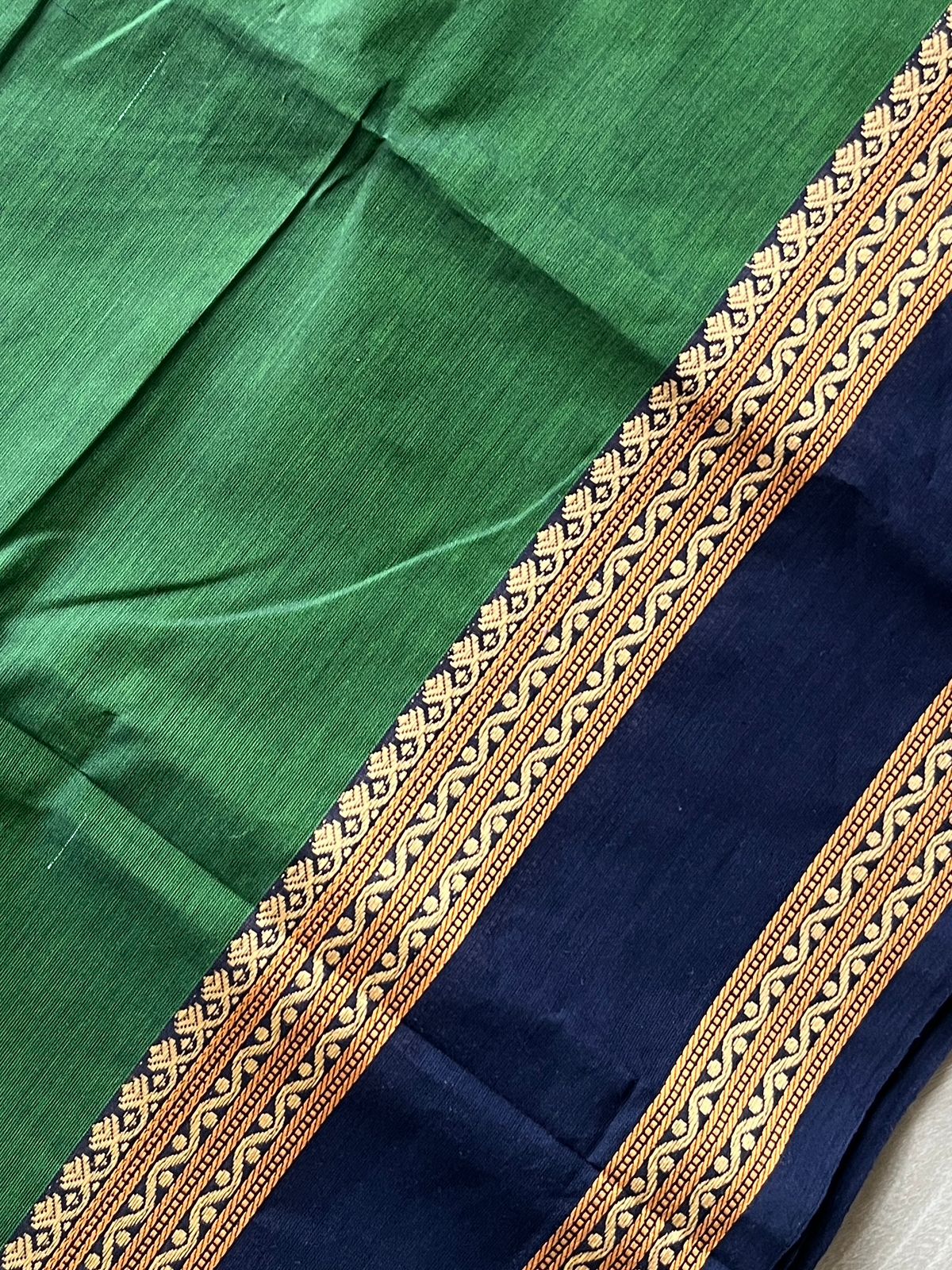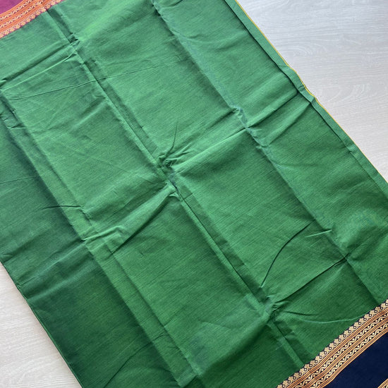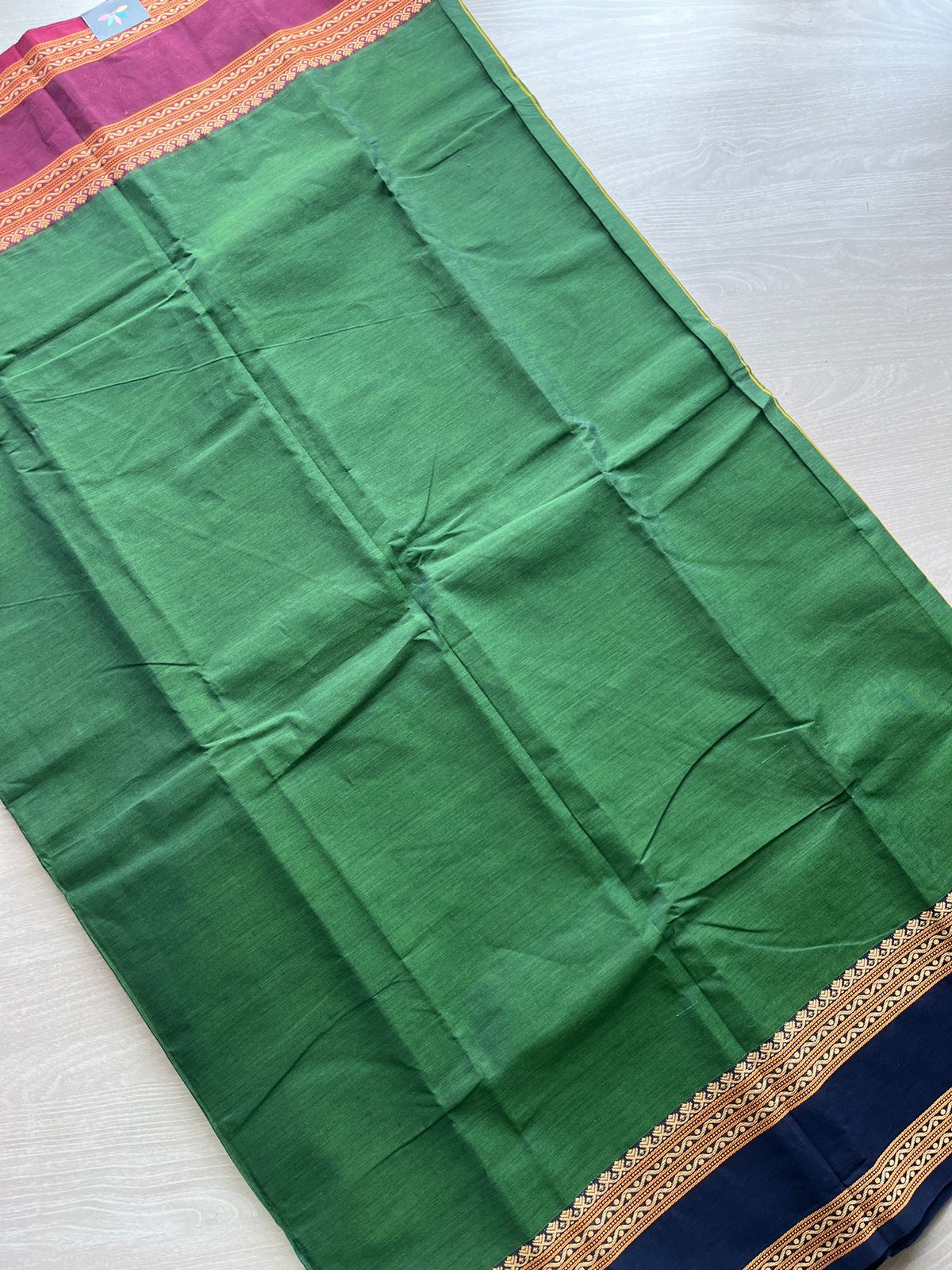 Emerald Green Chettinad Cotton Saree with Maroon and Blue Border -24416