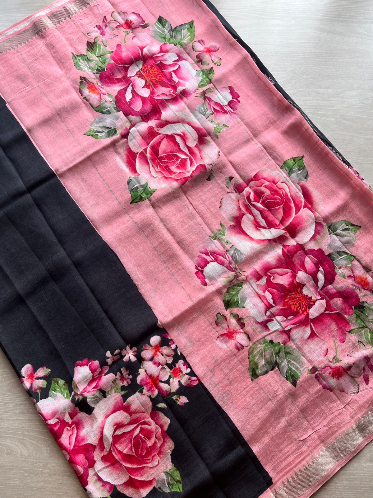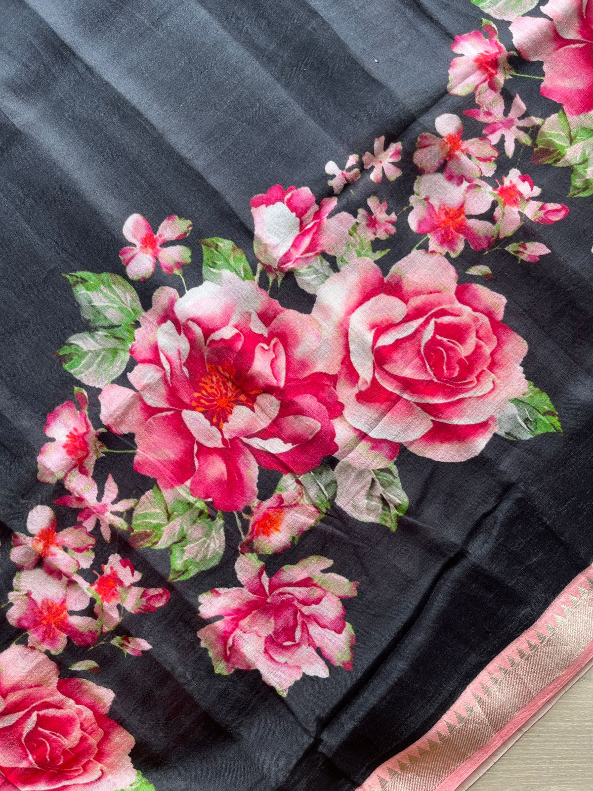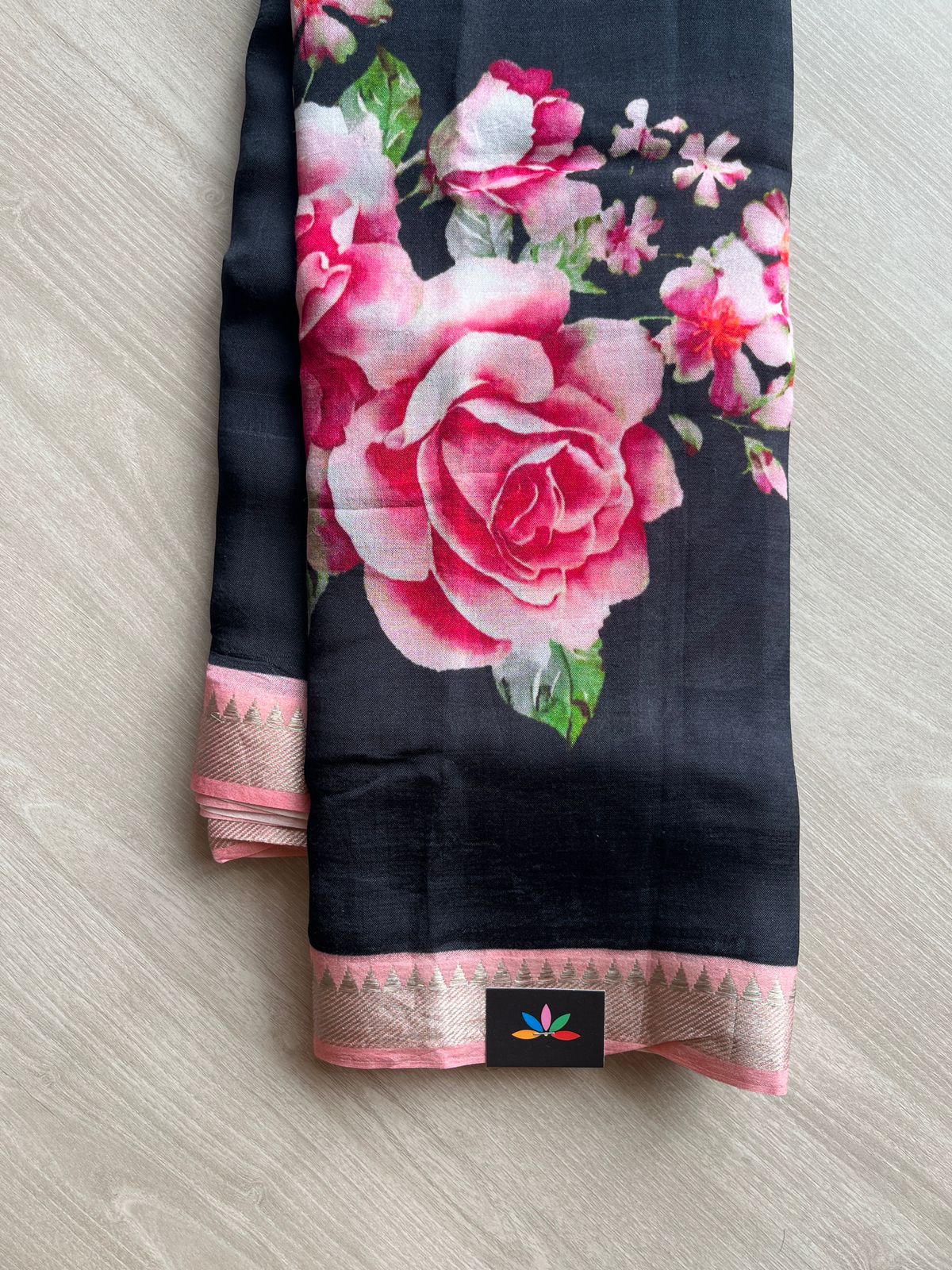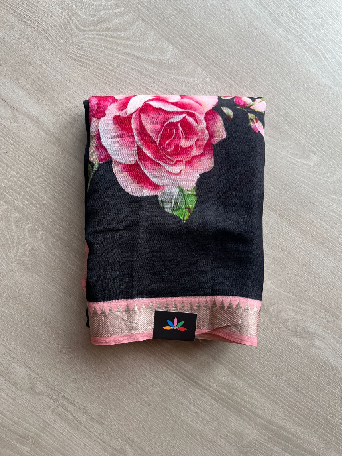 Small Border Digital Printed Mangalagiri Silk Cotton Saree
