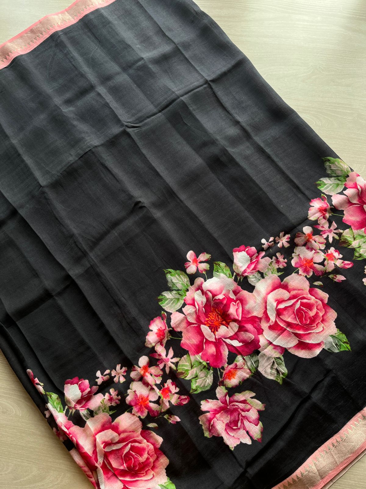 Small Border Digital Printed Mangalagiri Silk Cotton Saree -23515
