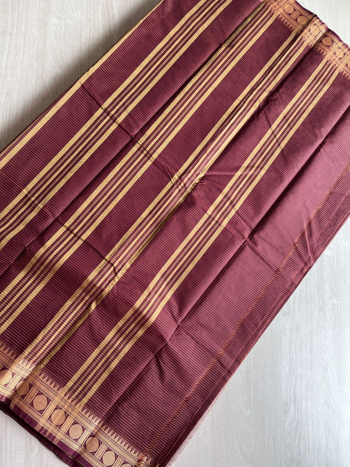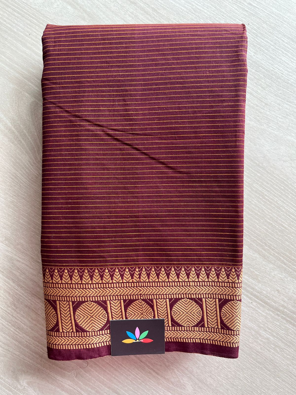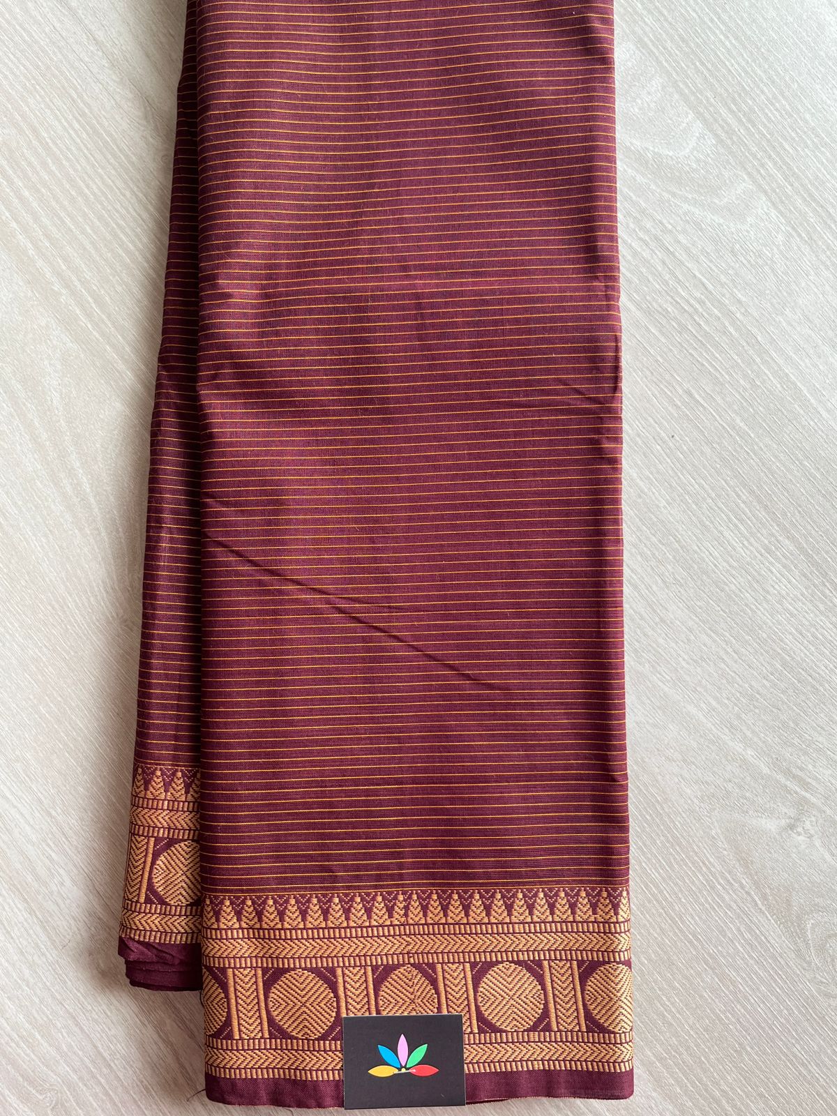 Striped Chettinad Cotton Saree with Thread Border (Without blouse)- 26889