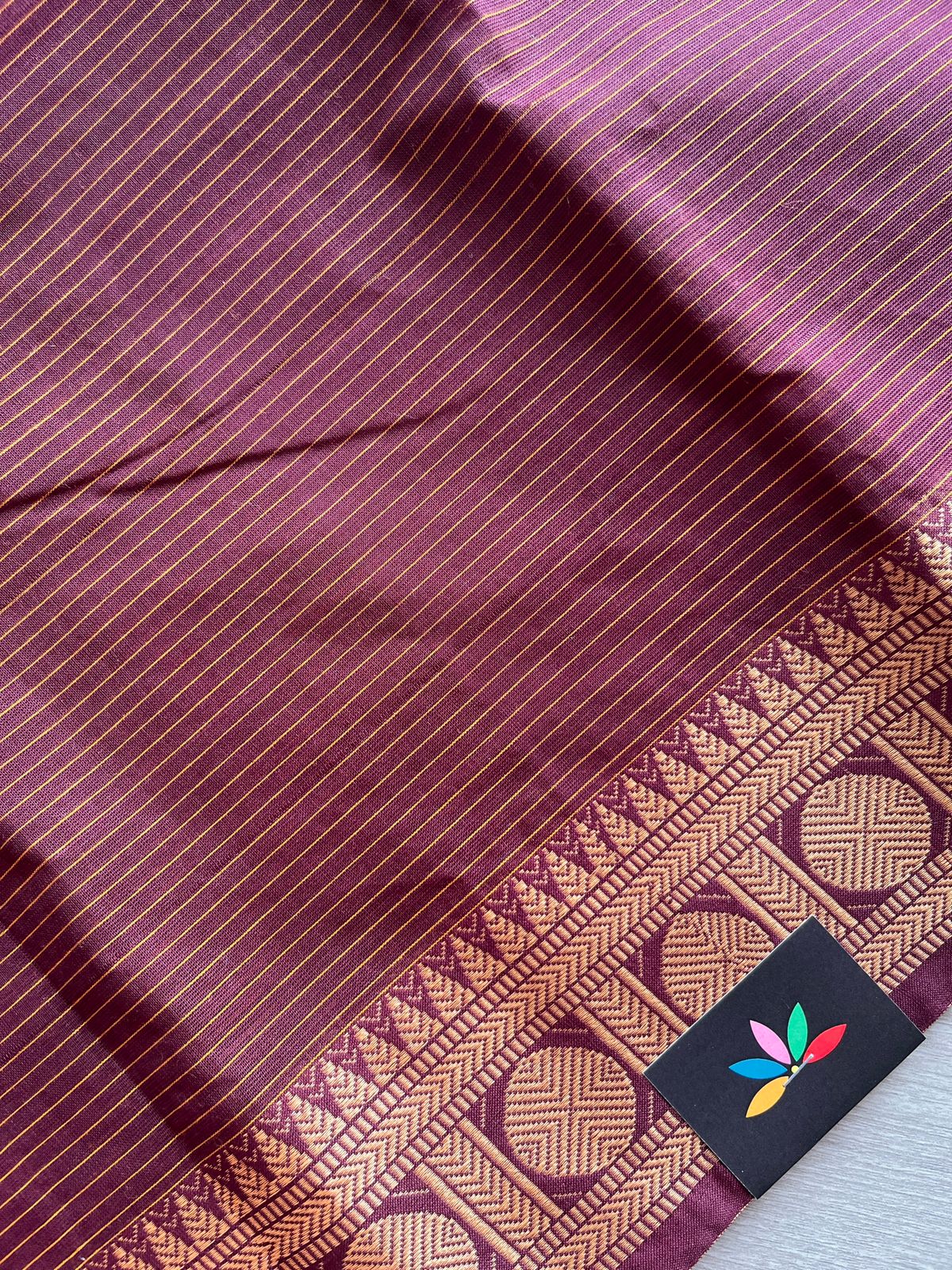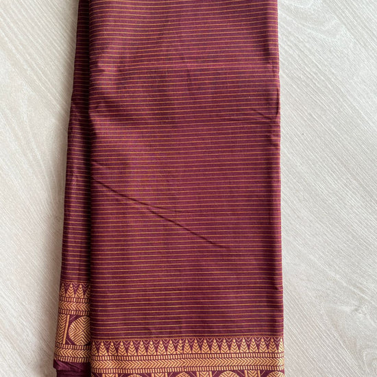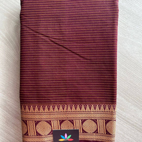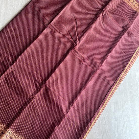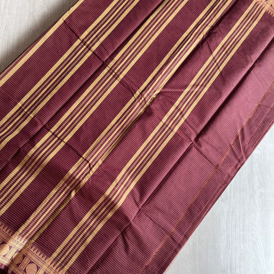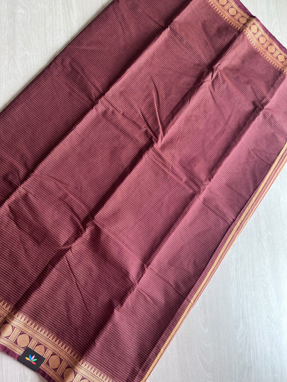 Striped Chettinad Cotton Saree with Thread Border (Without blouse)- 26889