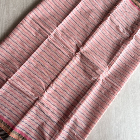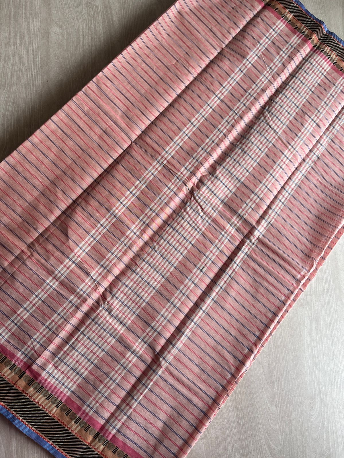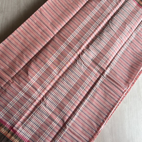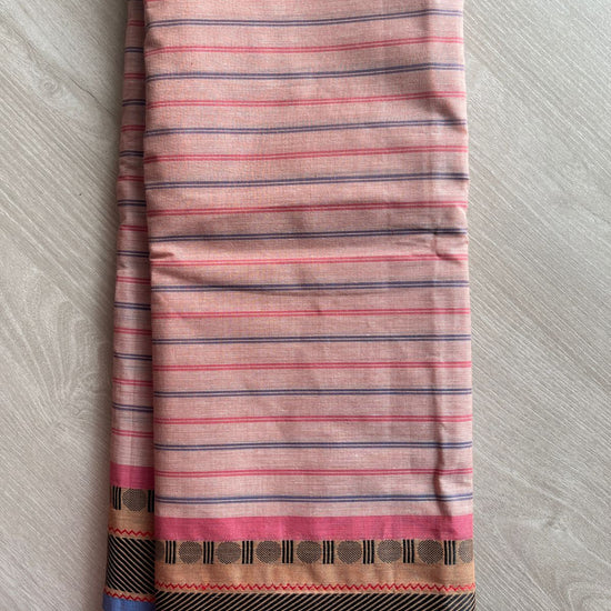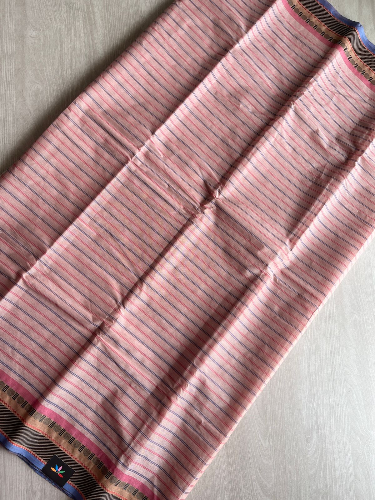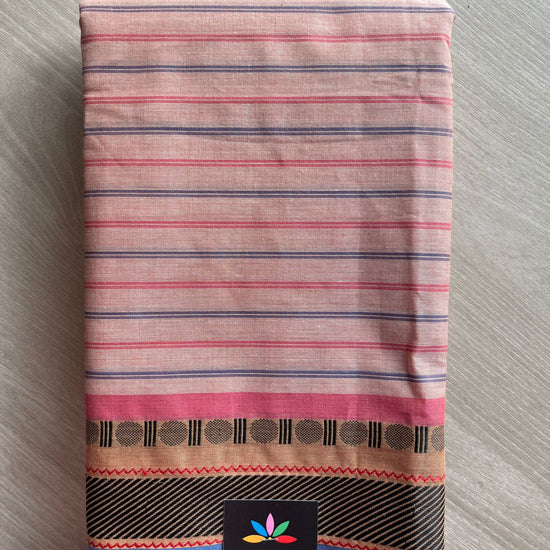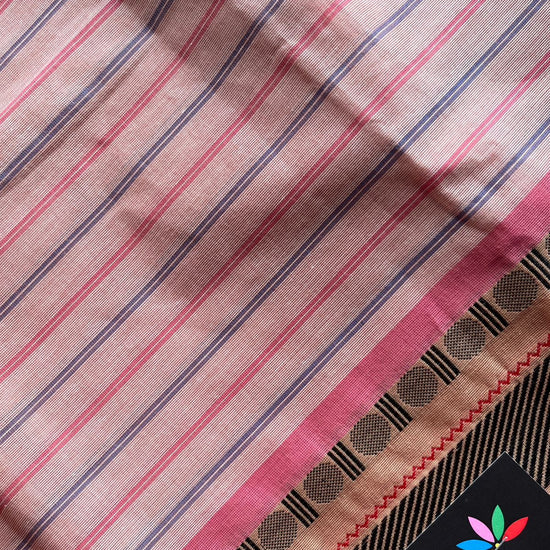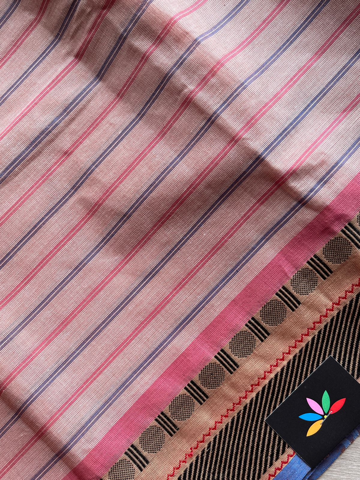 Striped Chettinad Cotton Saree with Thread Border (Without blouse) - 26890