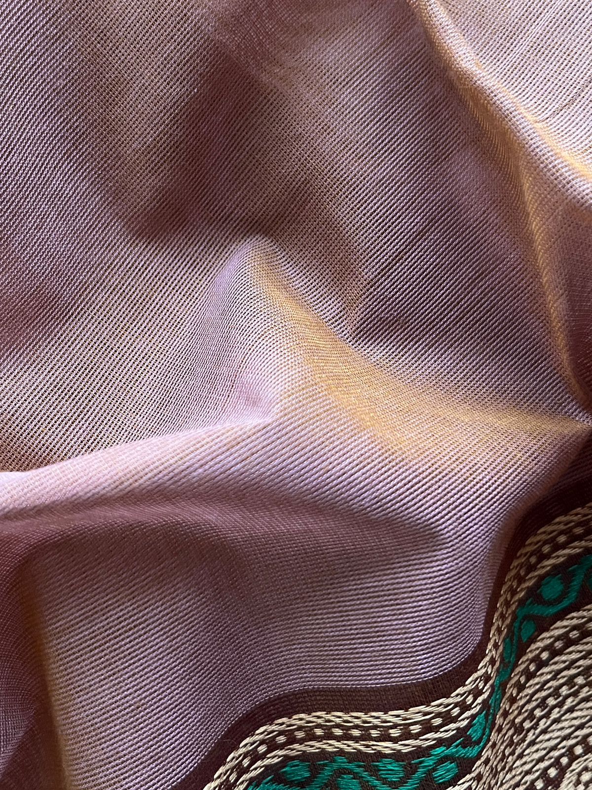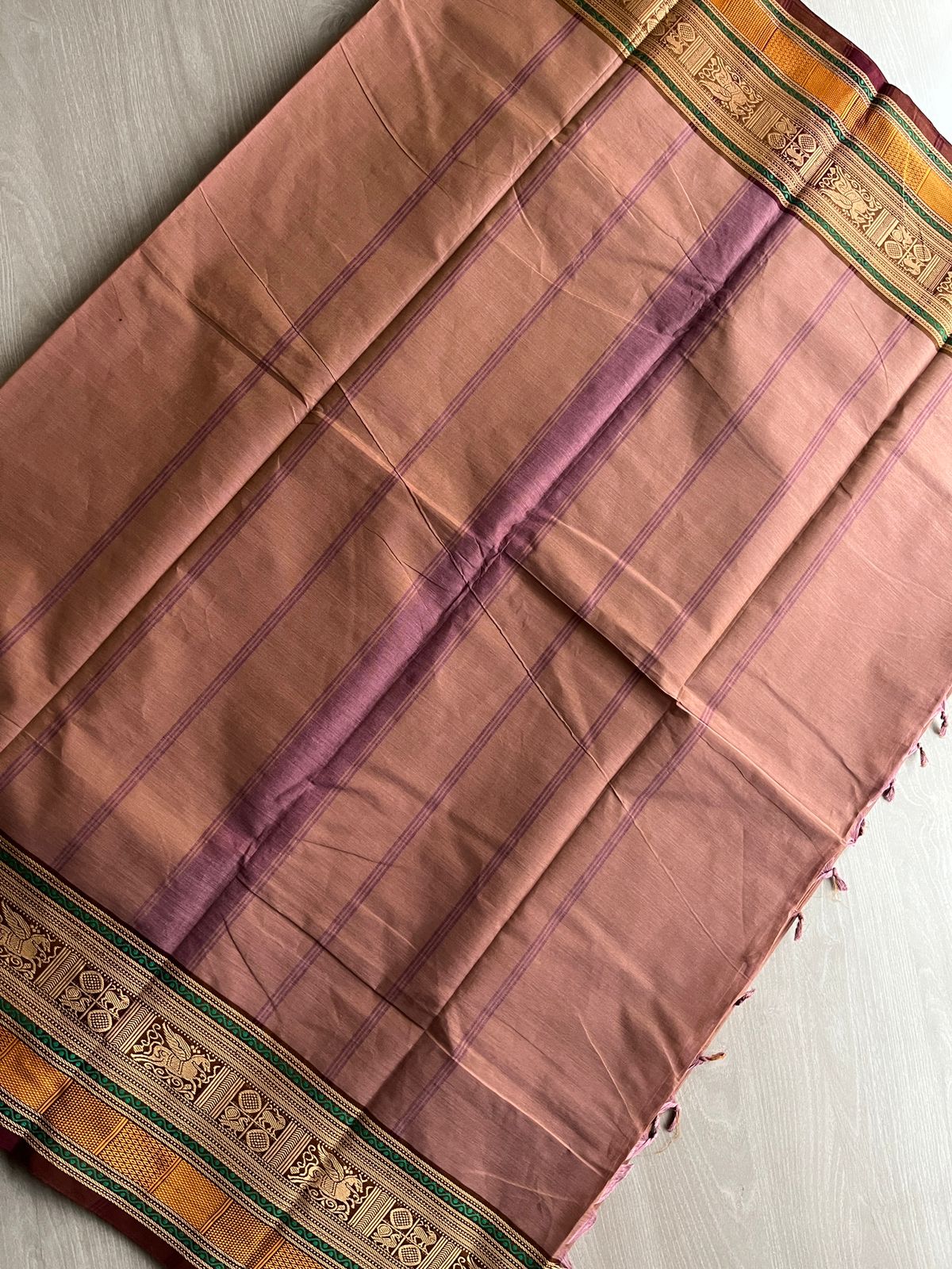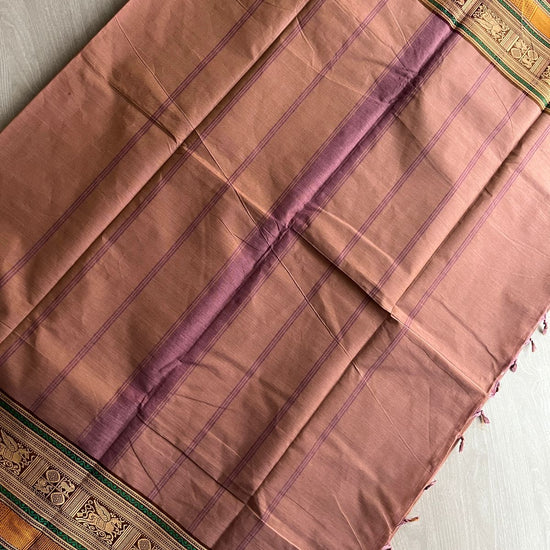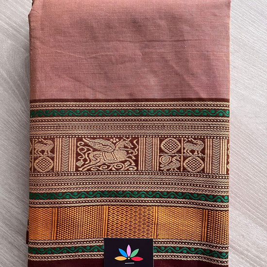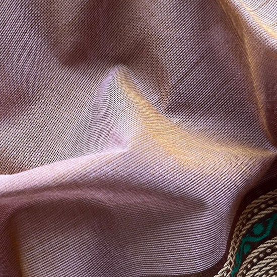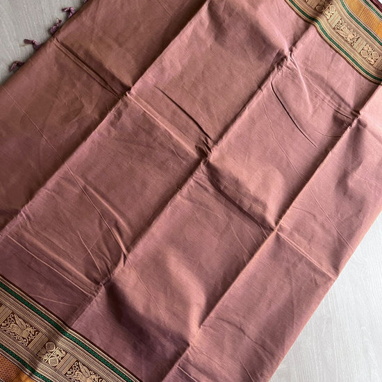 Dusty Rose Pink with Emerald Green and Deep Maroon Thread Border Chettinad Cotton Saree