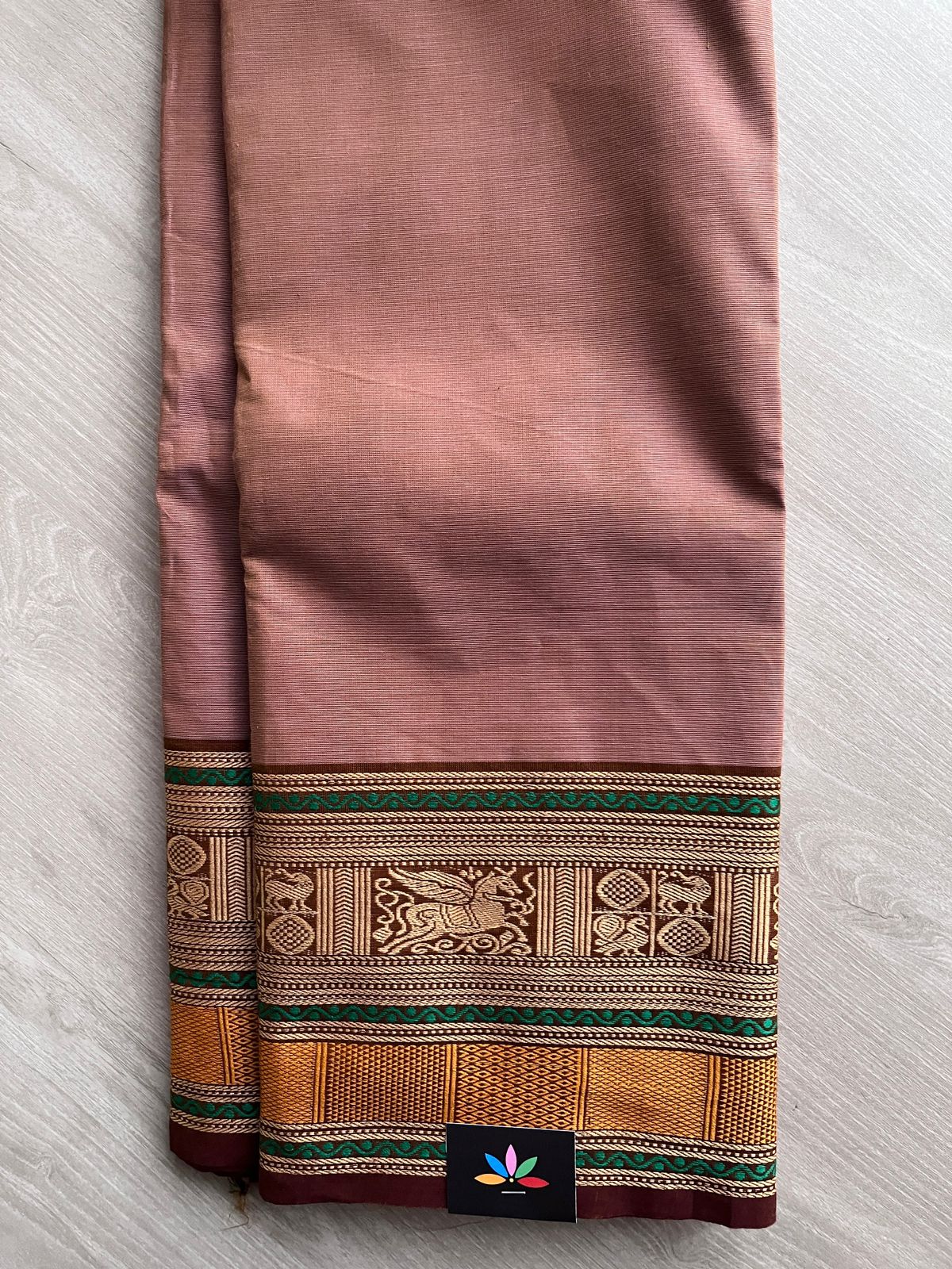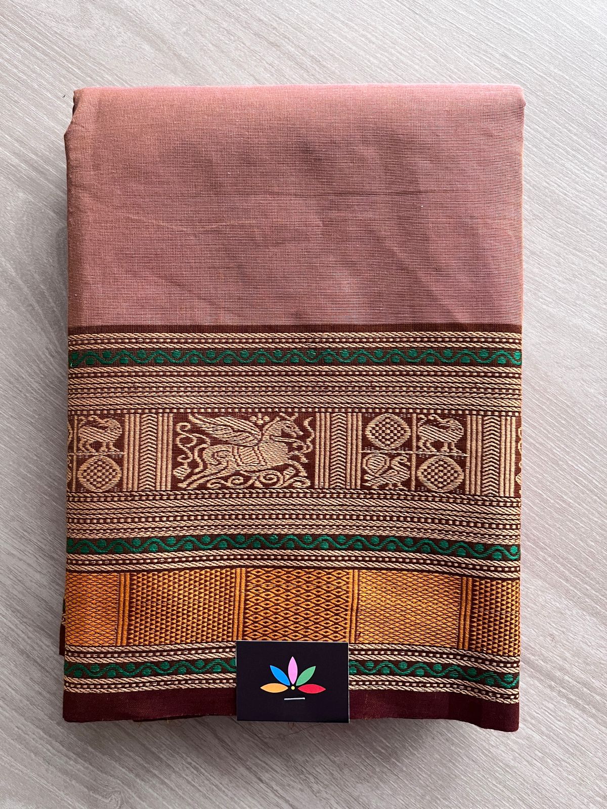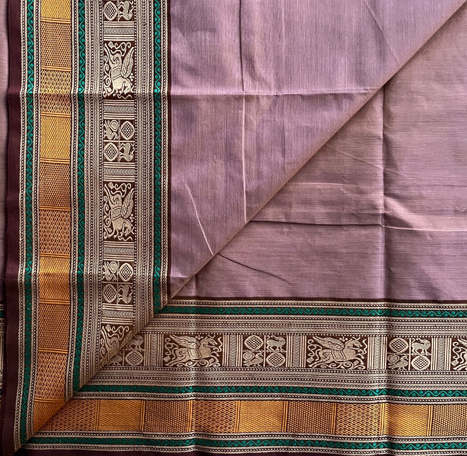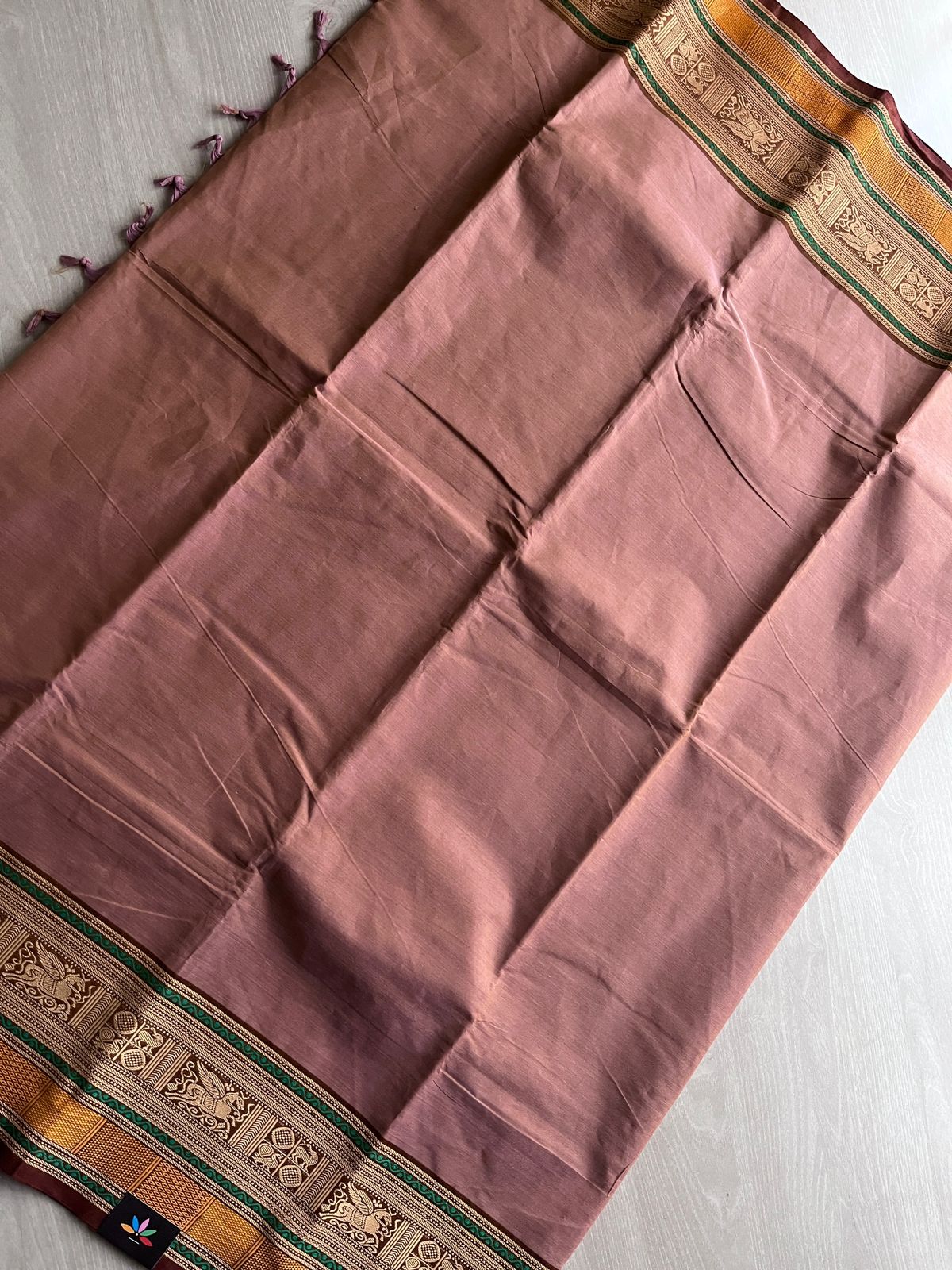 Dusty Rose Pink with Emerald Green and Deep Maroon Thread Border Chettinad Cotton Saree