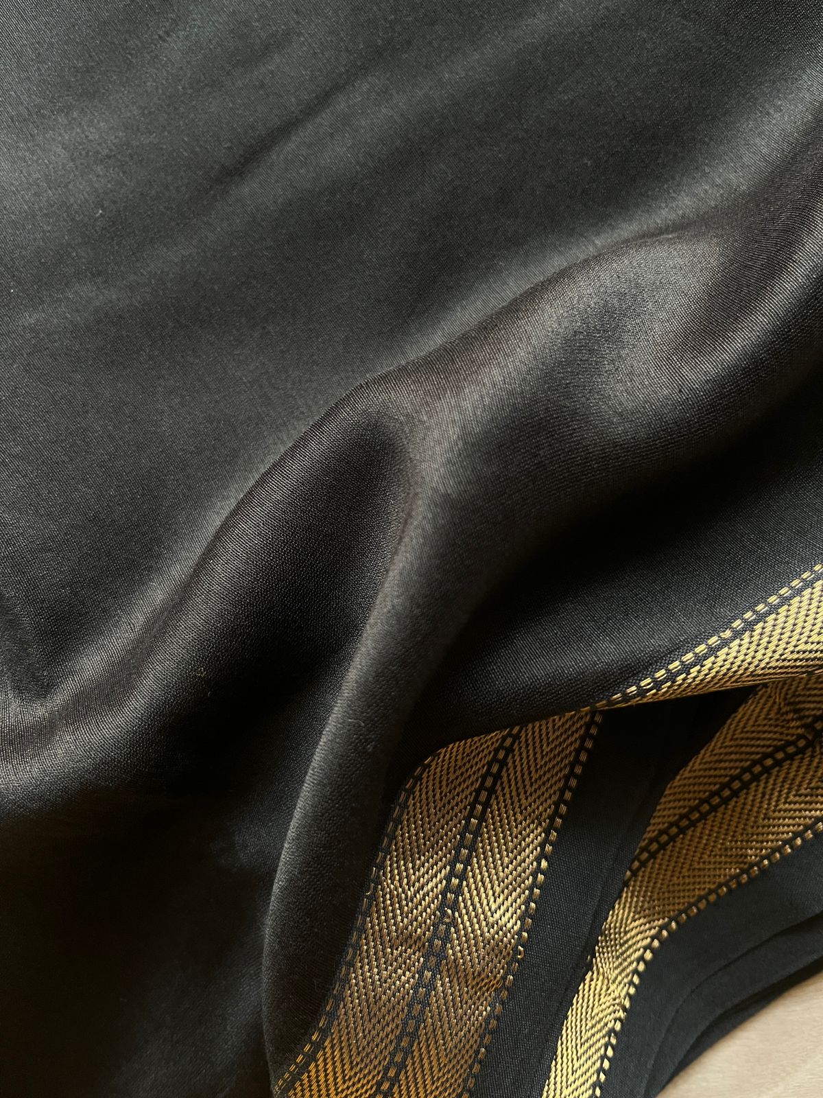 Traditional Black Chanderi Saree – Lightweight Silk Cotton for Weddings & Festivals-24369-24370