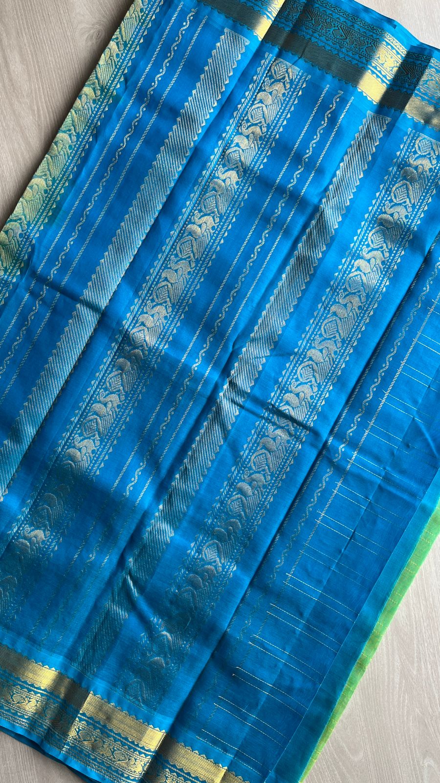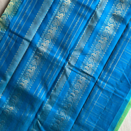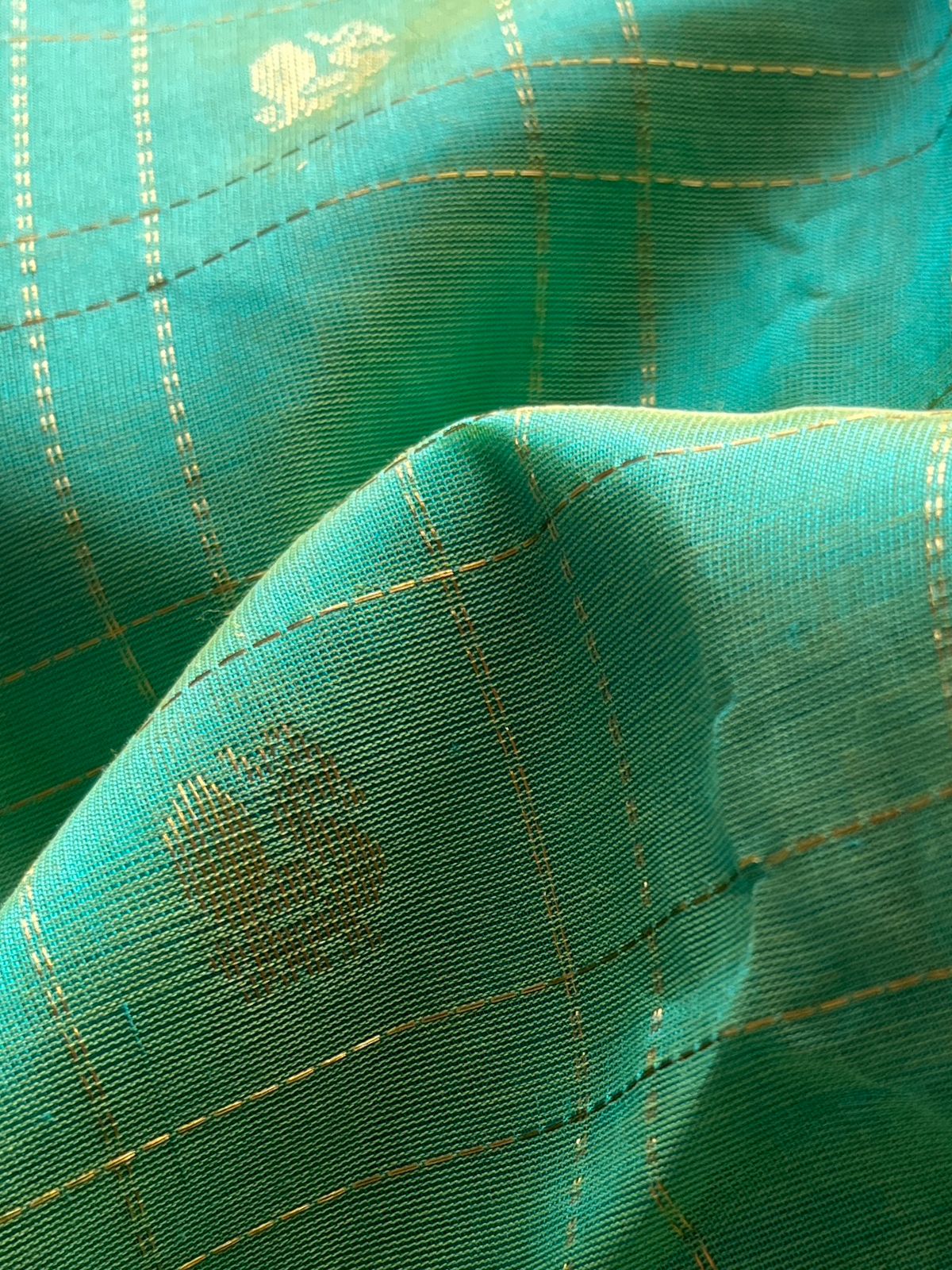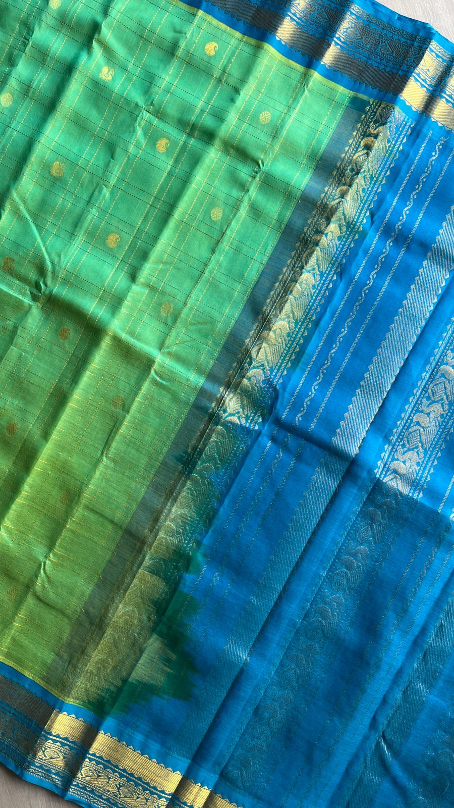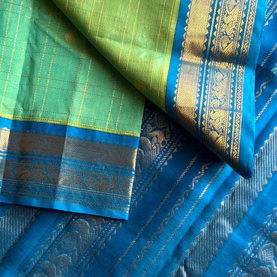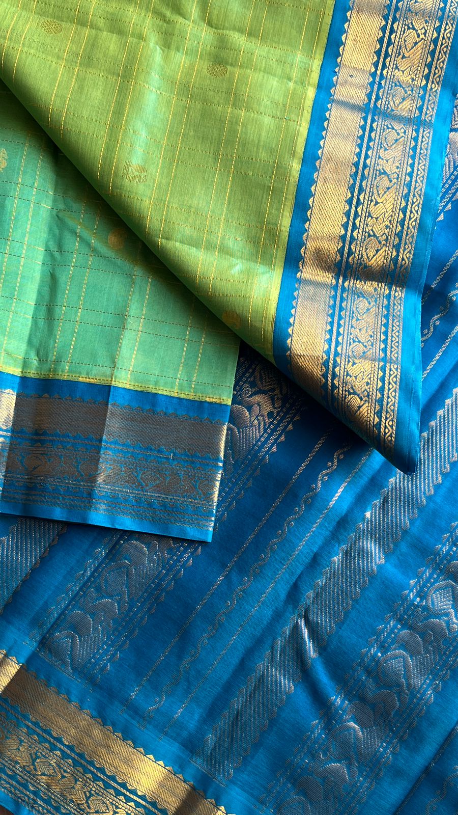 Zari Checked Silk Cotton Saree with Blue Contrast Korvai Border