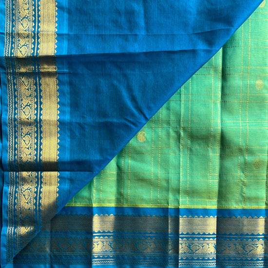 Zari Checked Silk Cotton Saree with Blue Contrast Korvai Border-25366