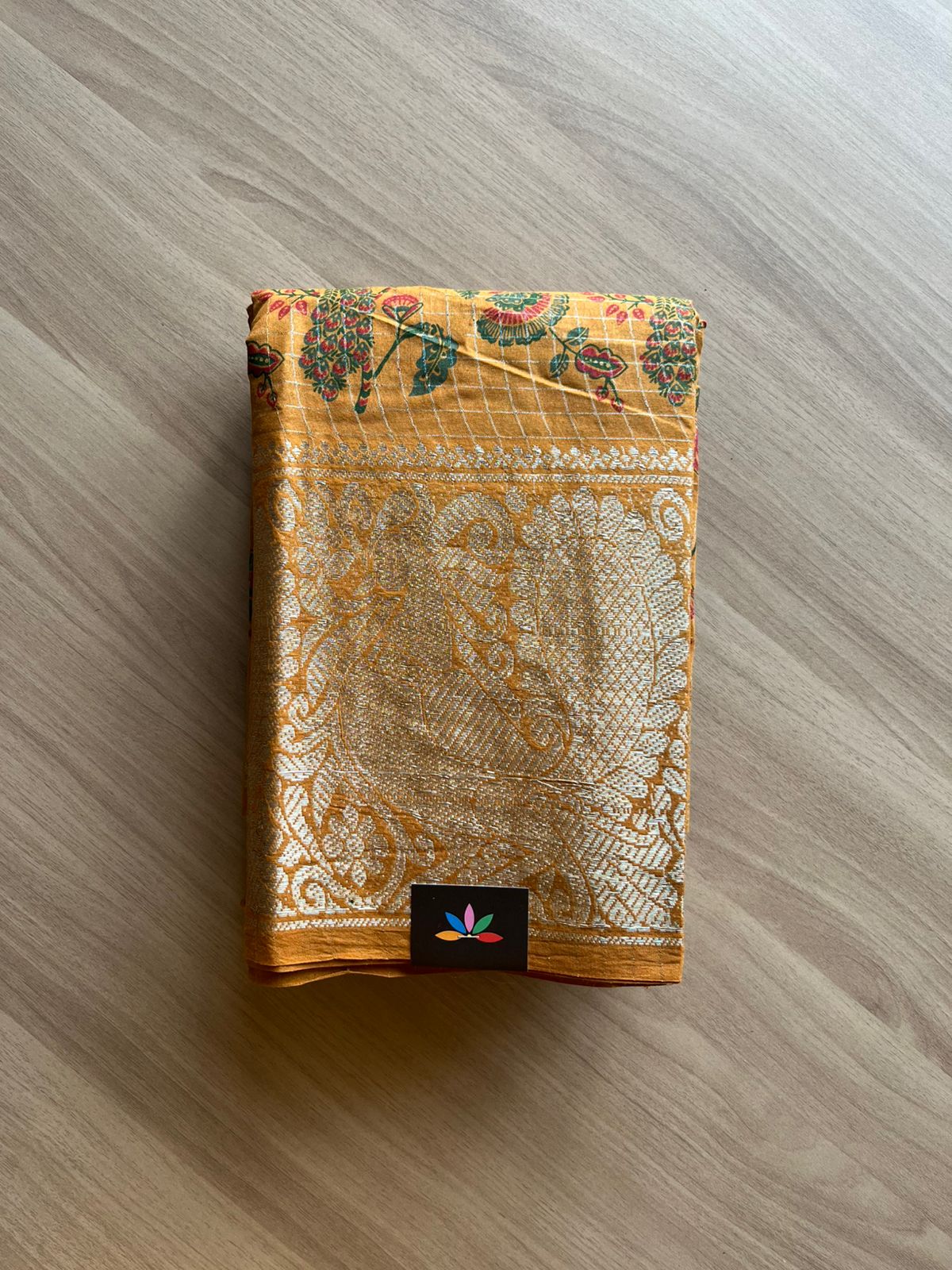Zari Checks Floral Design Cotton Saree-22330-22331