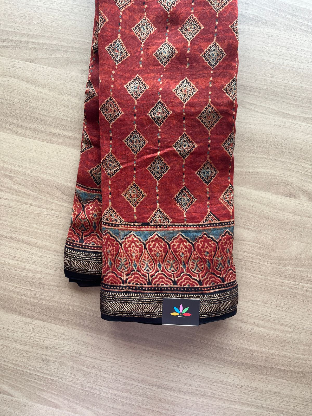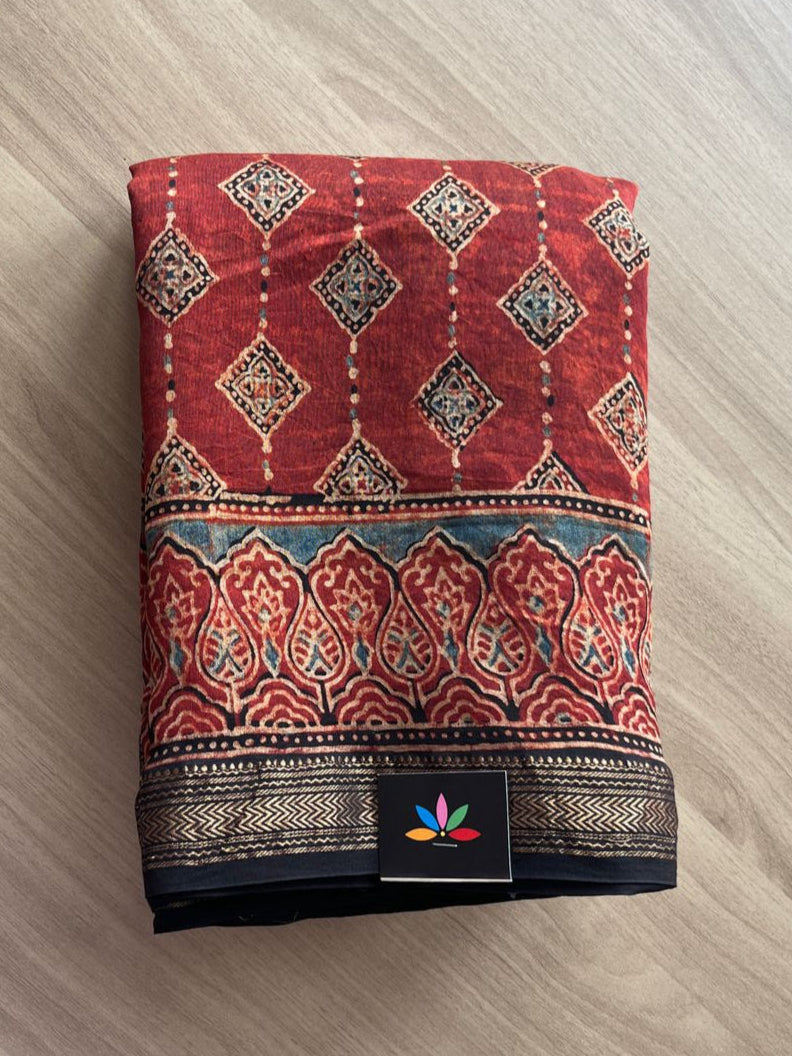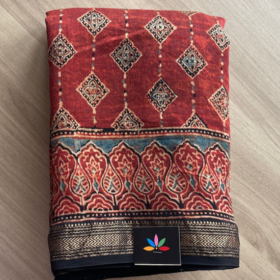 Ajrakh Maheshwari Silk Cotton Saree -16622